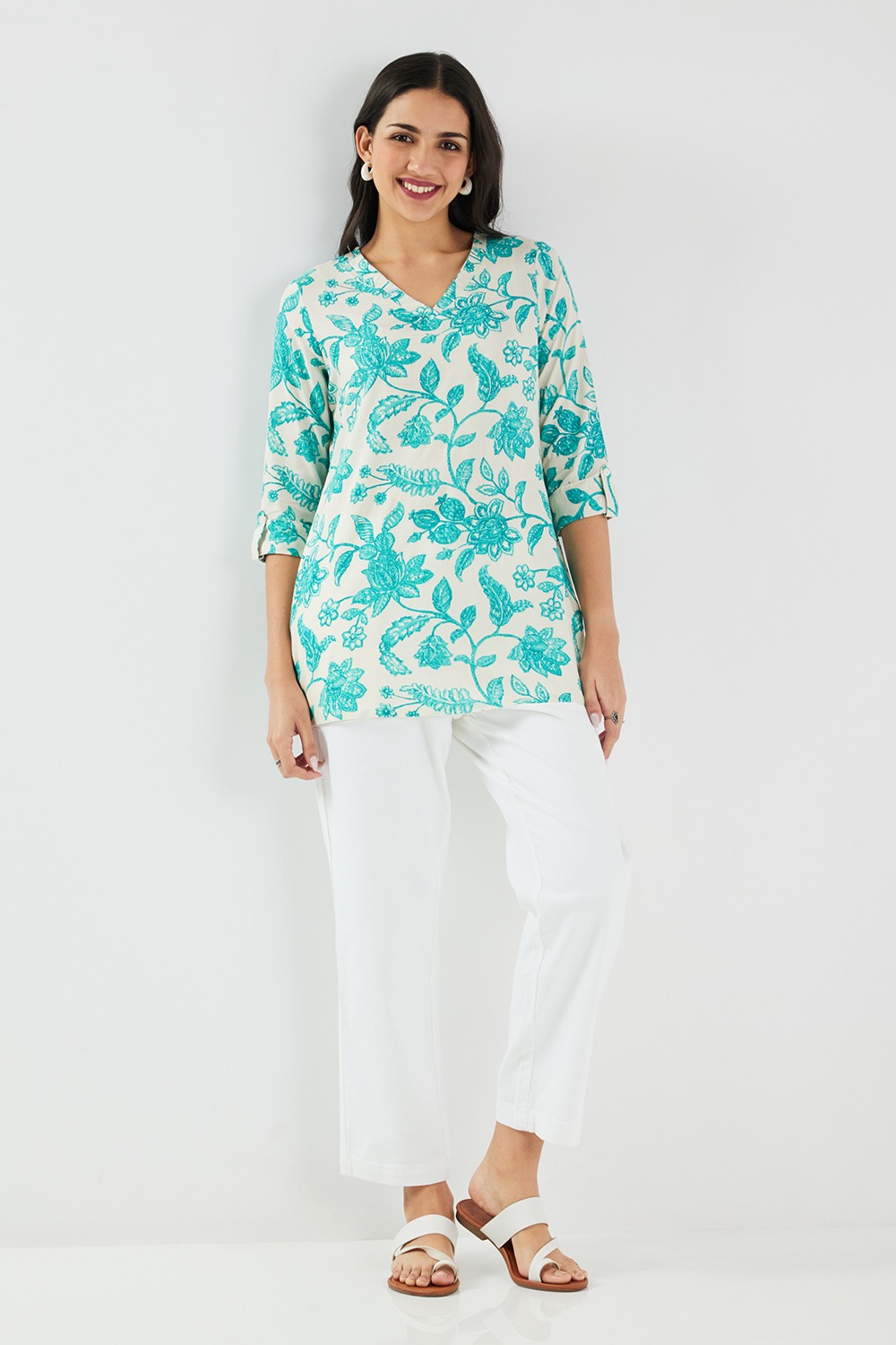 Printed Rayon V-Neck Women's Tunic