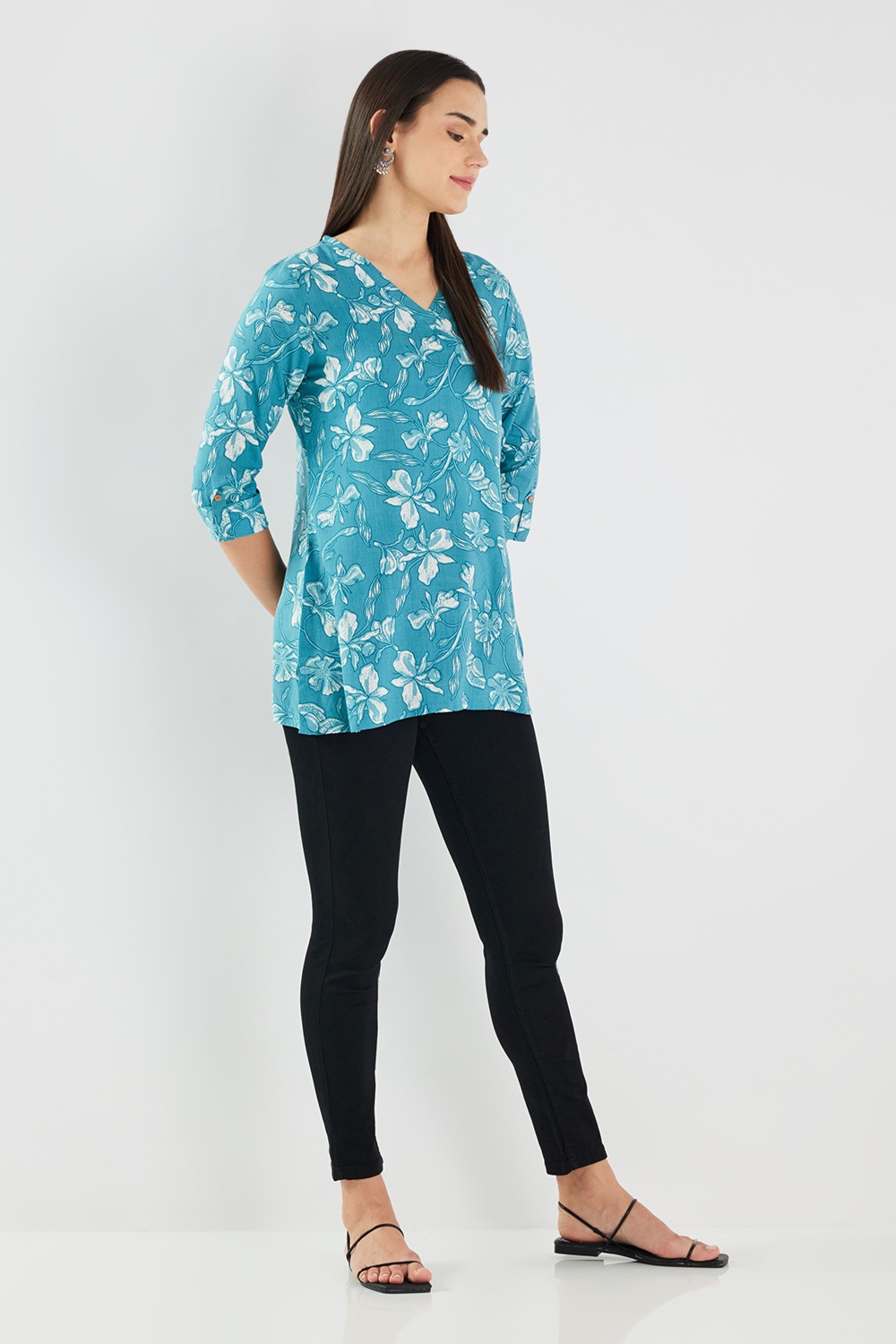Home/Tunics/Haute Curry/printed rayon v-neck women's tunic