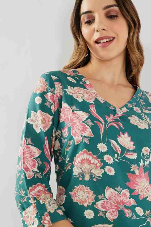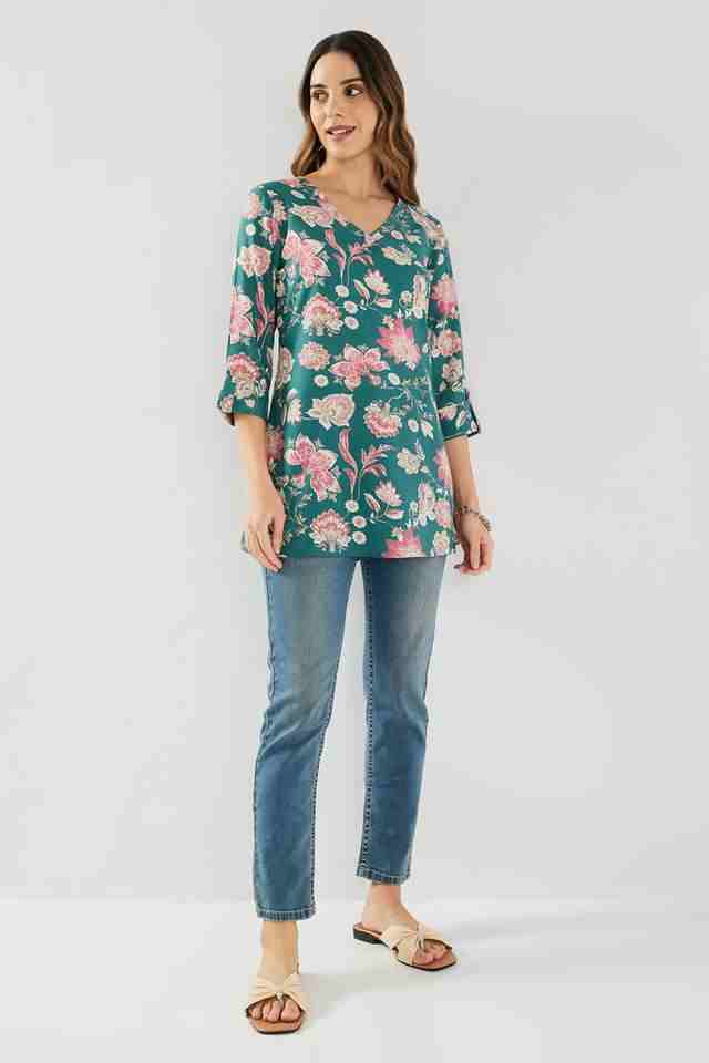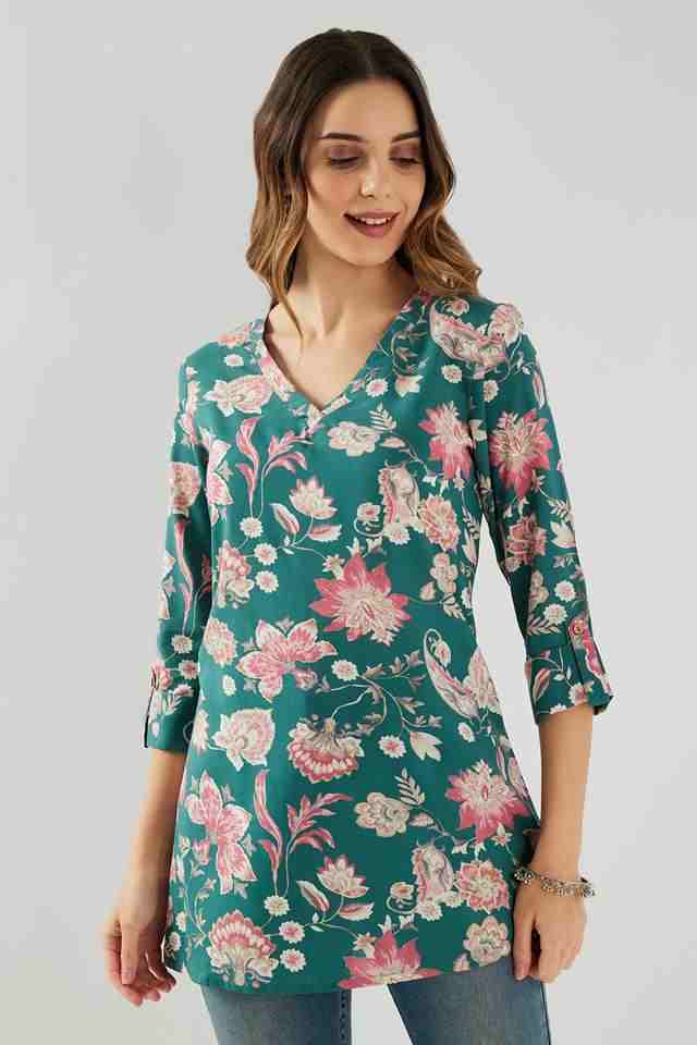 Home/Tunics/Haute Curry/printed rayon v-neck women's tunic