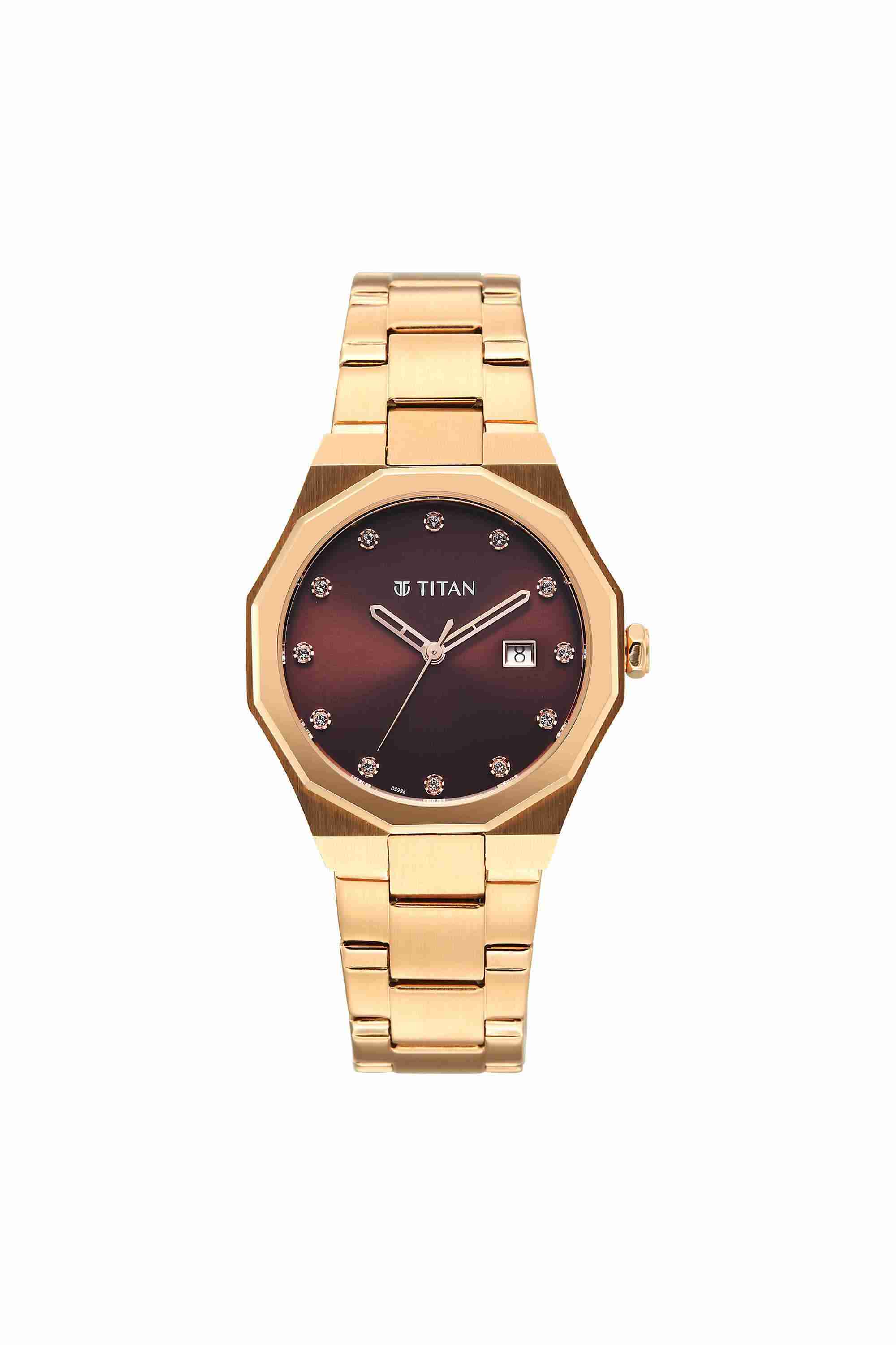 Home/Analog Watches/Titan/purple radiance 38.5x7.6x32 mm brown dial stainless steel analogue watch for women - 95376wm01