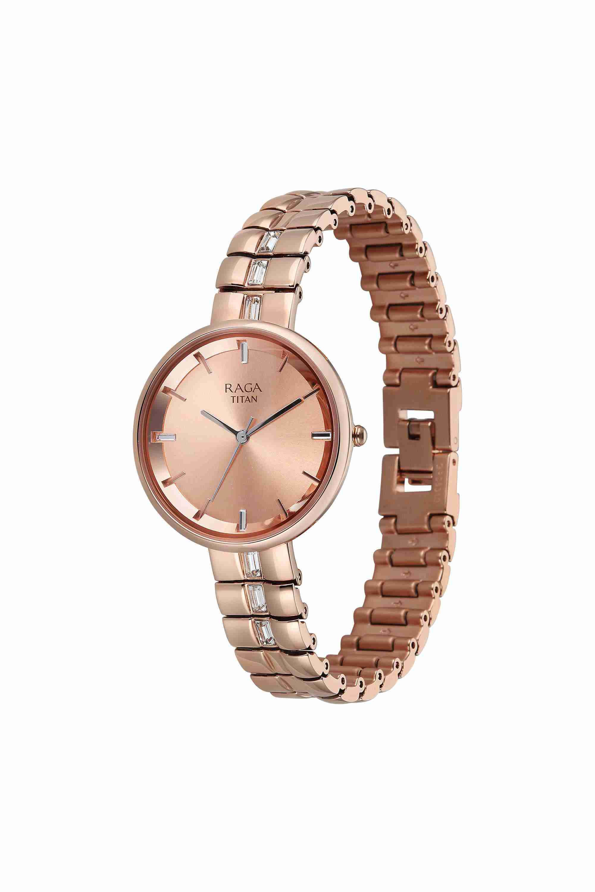 Home/Analog Watches/Titan/raga contempore phase ii 32 x 6.85 x 32 mm rose gold dial metal analogue watch for women - 95310wm01f