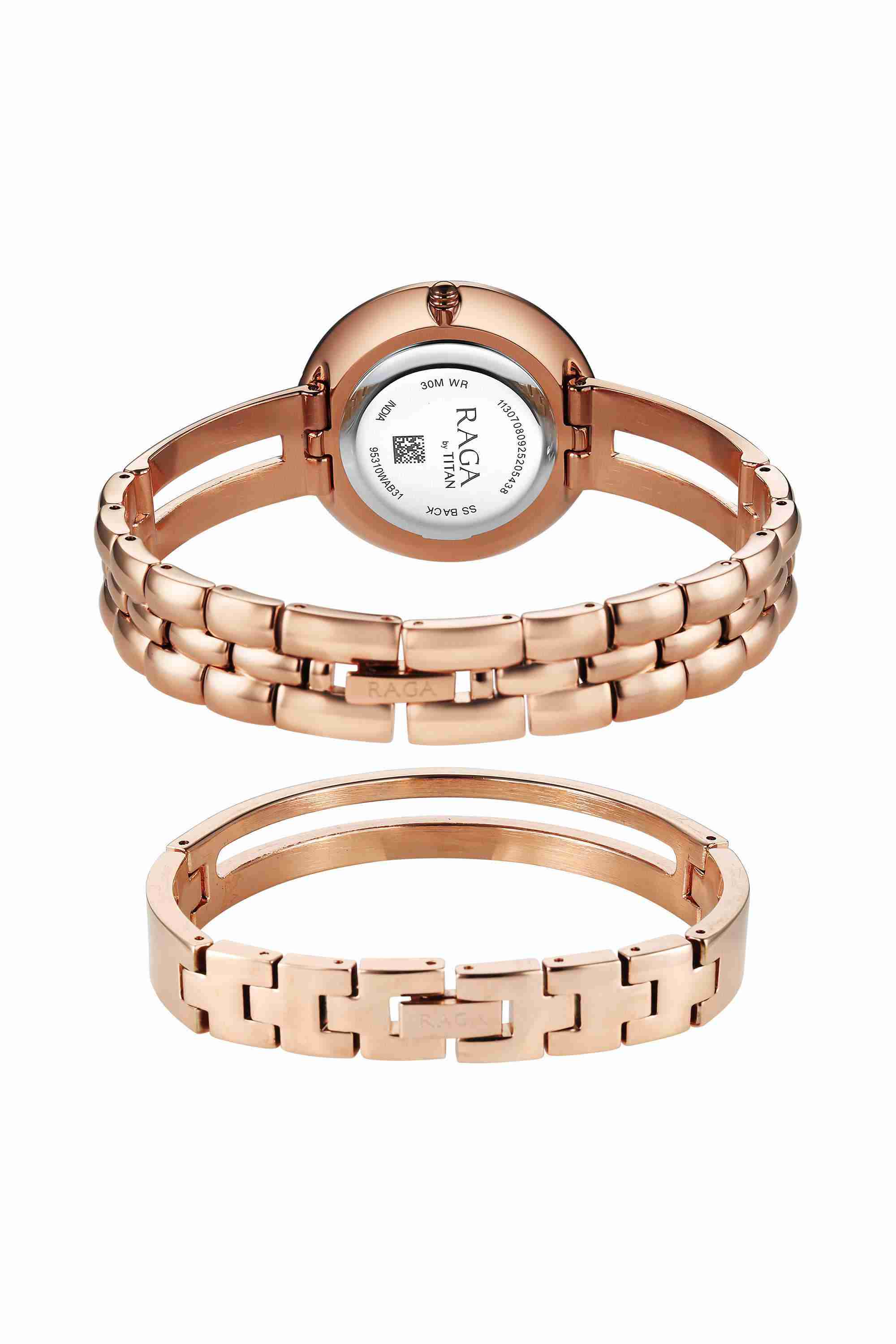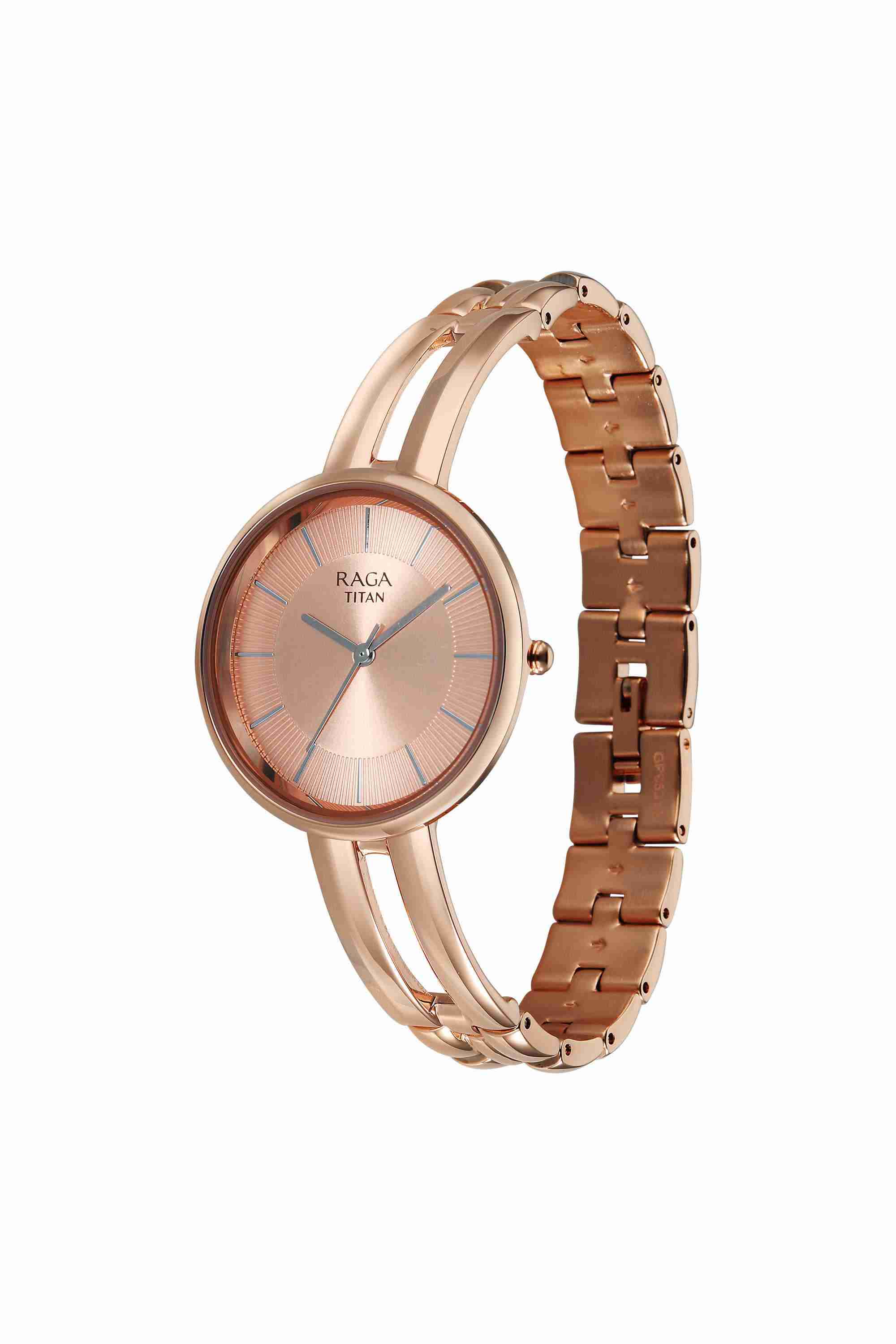 Home/Analog Watches/Titan/raga contempore phase ii 32 x 6.85 x 32 mm rose gold dial metal analogue watch for women - 95310wm02f