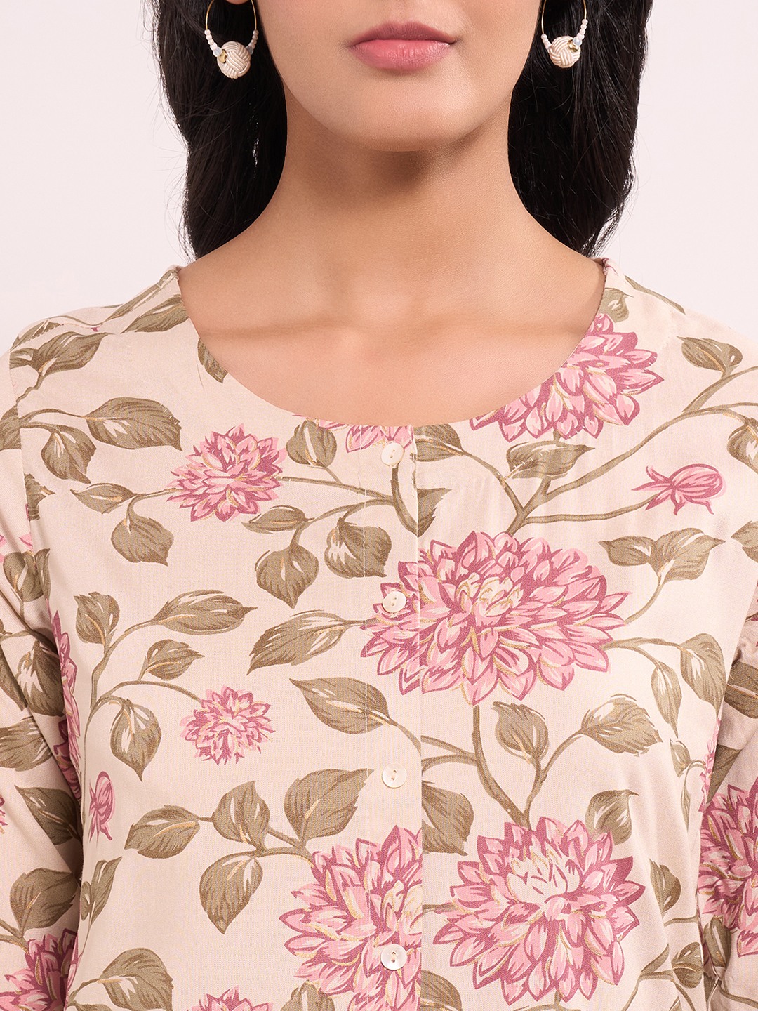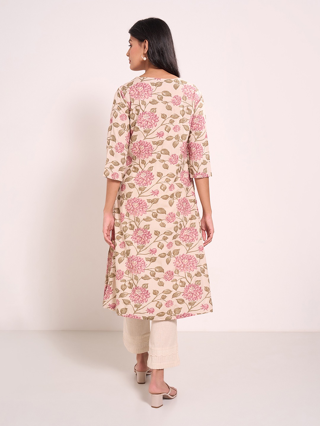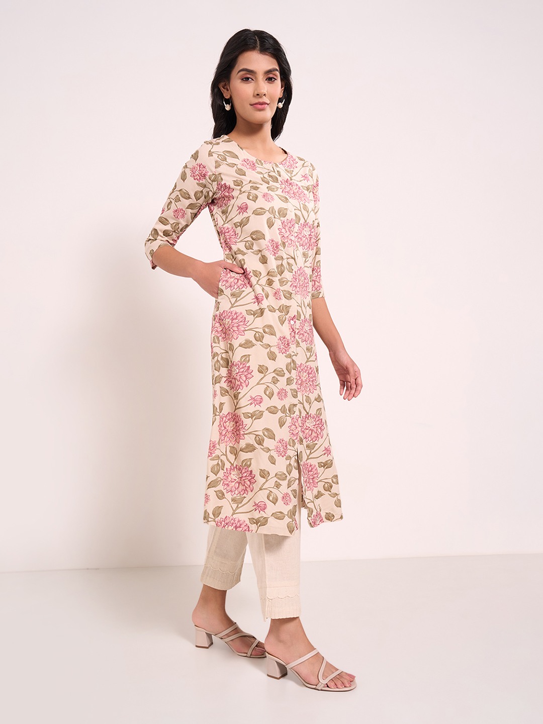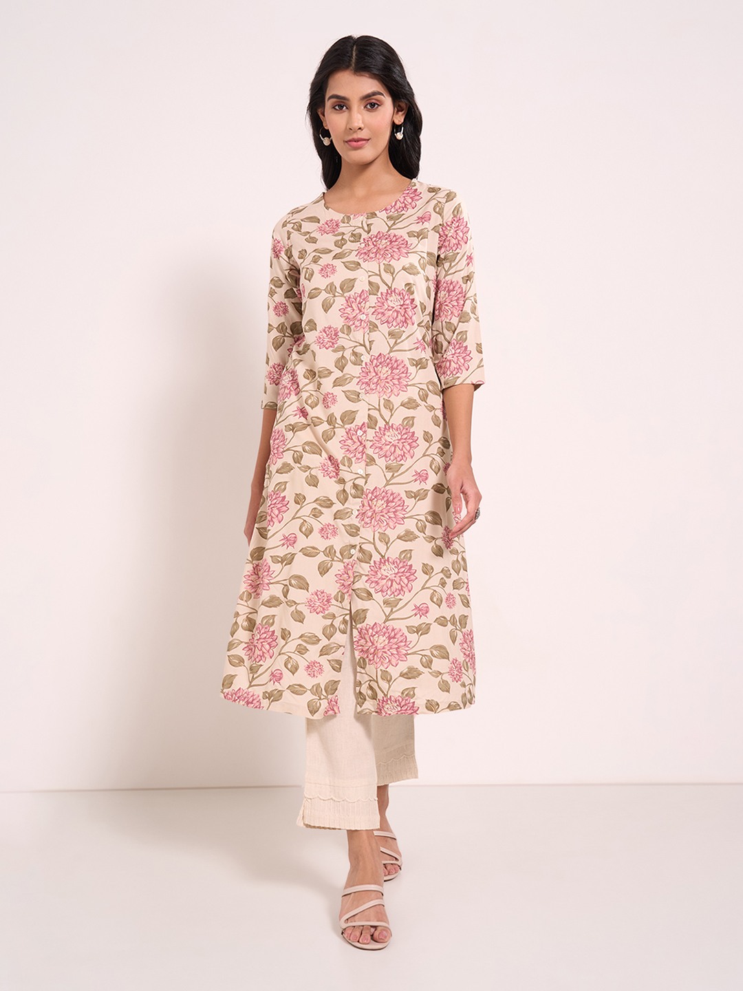 Wholesome ethnic fashion for your traditional wardrobe. The kurta has a round neckline with a button placket, 3/4 sleeves, pockets and a fresh floral print. Crafted from a fantastic fabric that will provide you with maximum breathability and a trendy look.