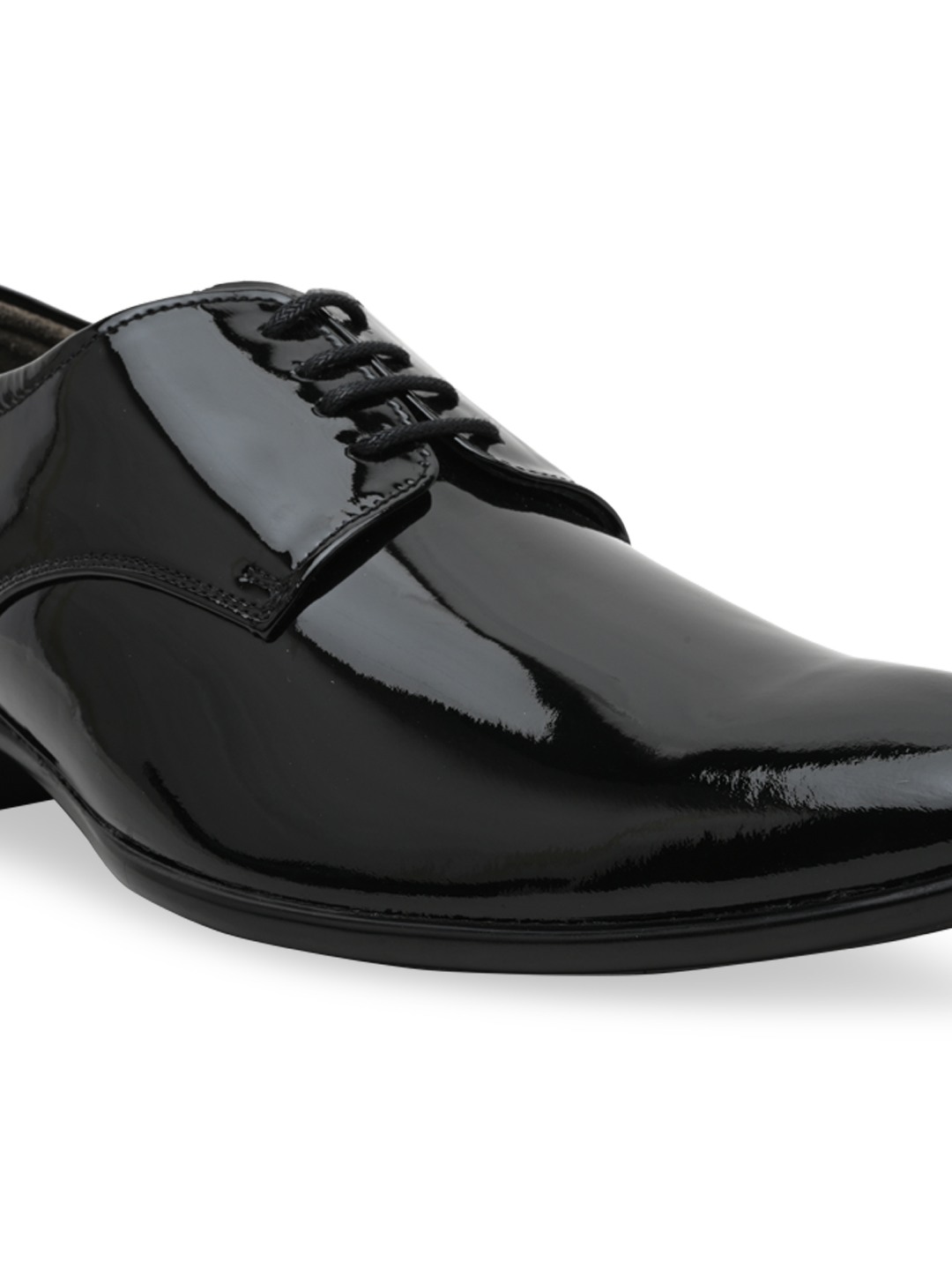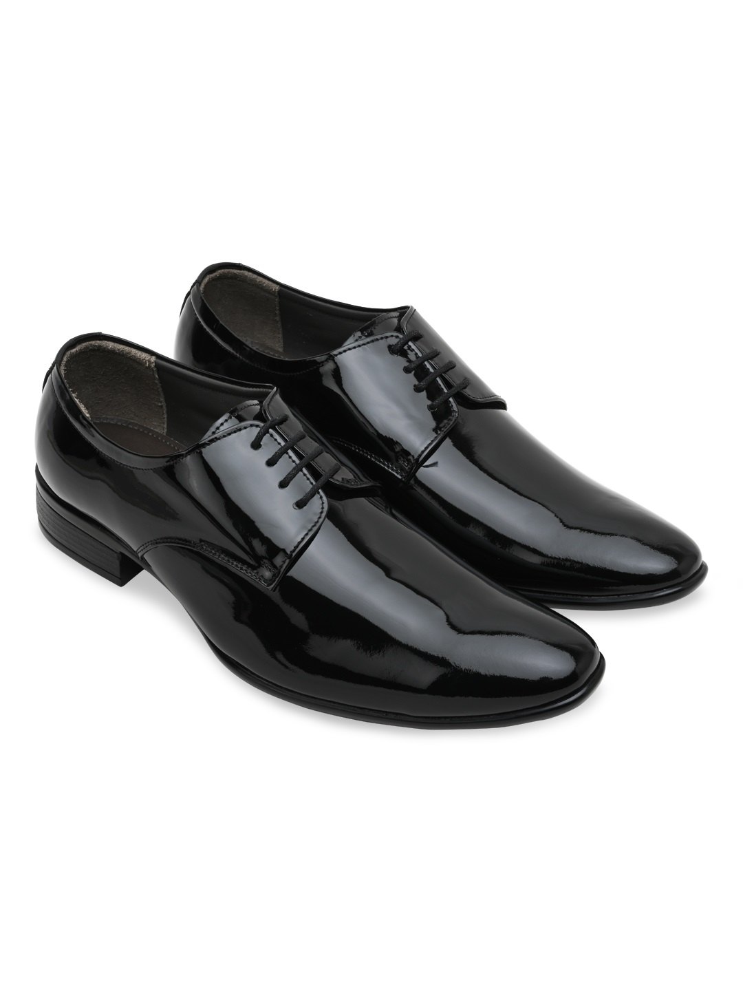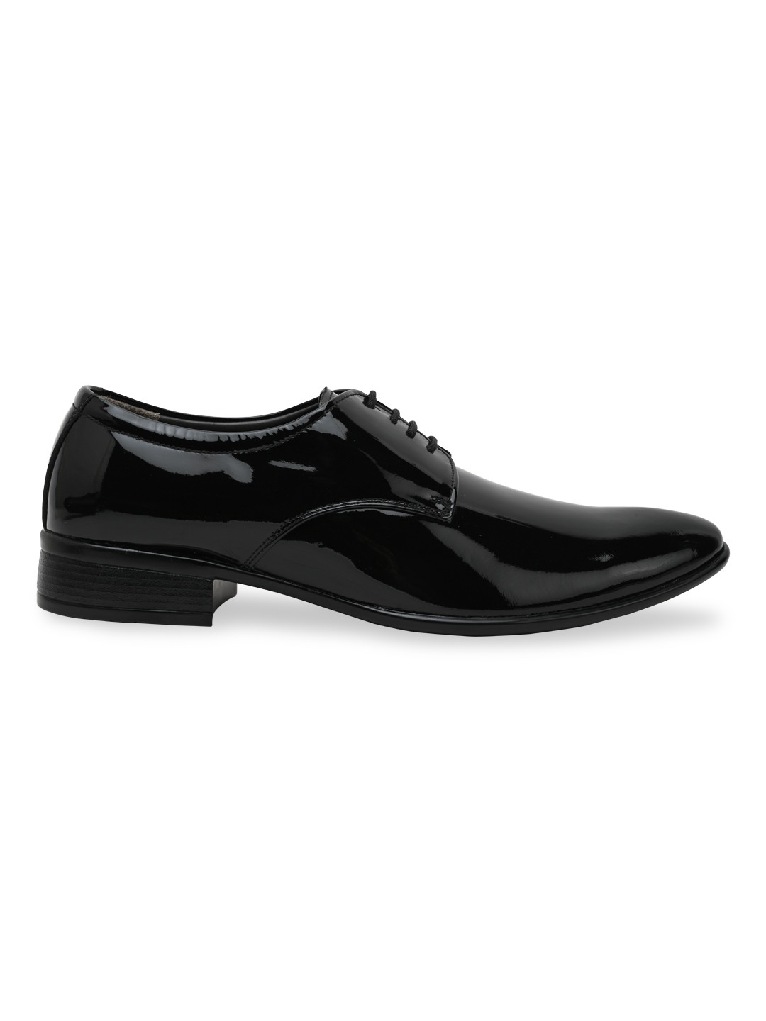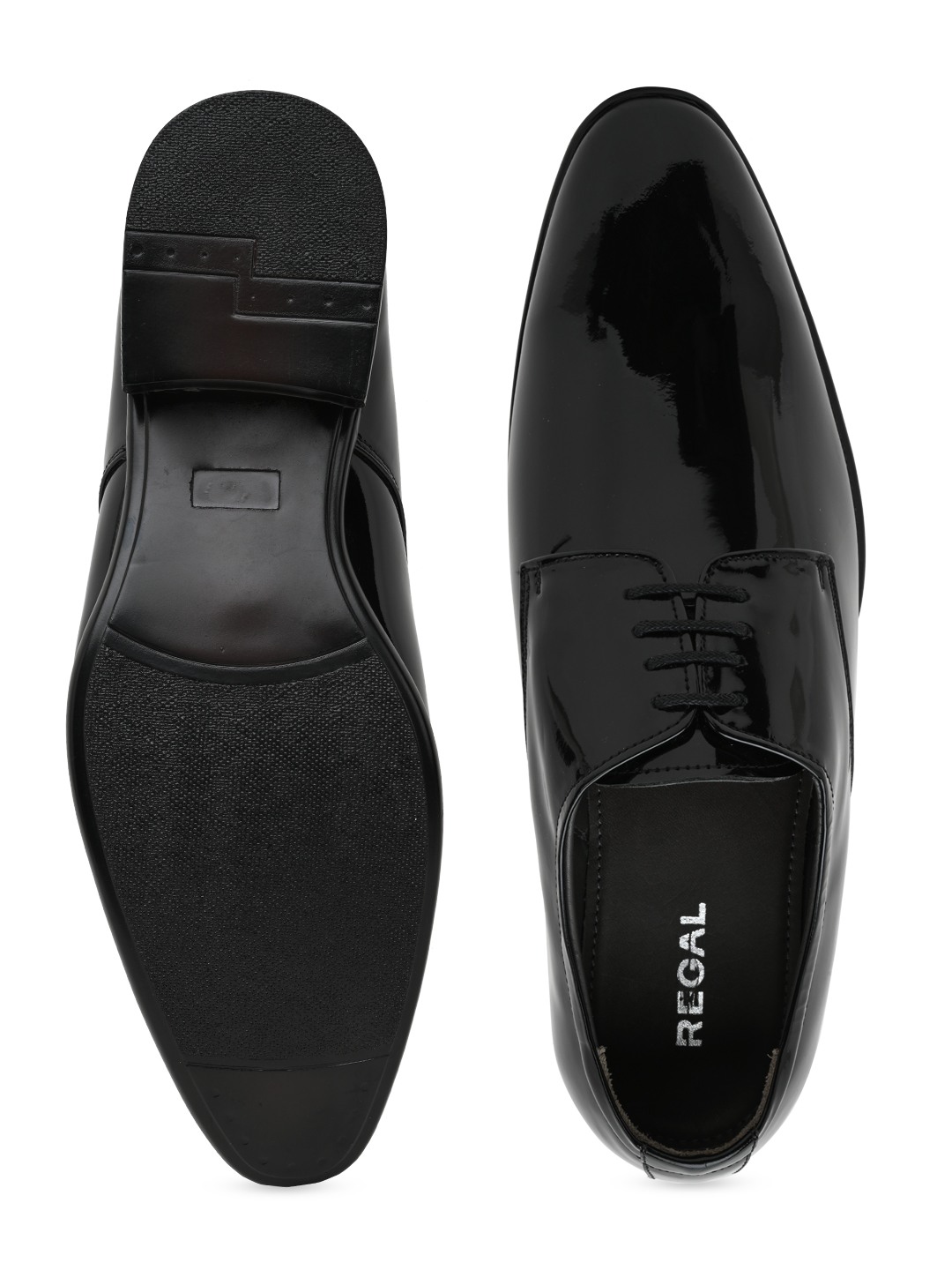 Make a statement at your next event with Regal Men's Patent Leather Formal Lace-Ups. These sleek black shoes, crafted from patent leather with a PU sole, are perfect for parties and weddings. Lightweight and featuring a comfort insole, they offer a sophisticated touch with all-day comfort.