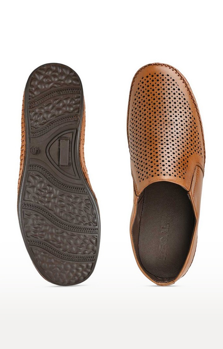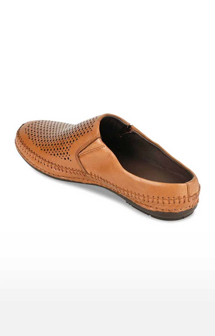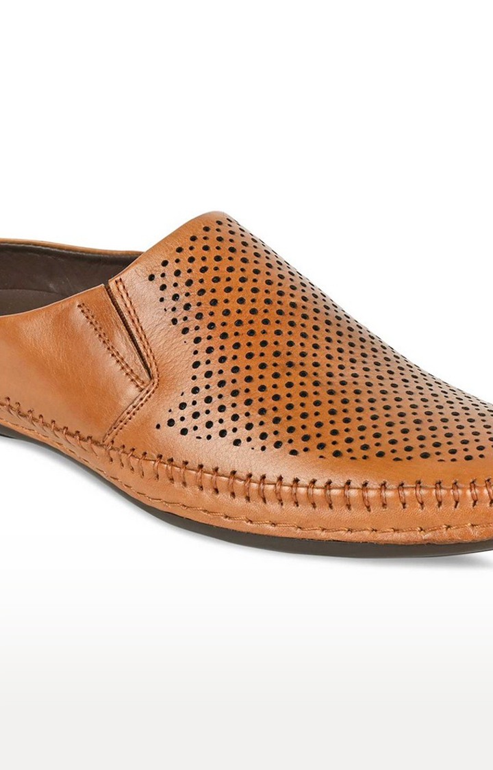 Regal Tan Men Laser Cut Leather Mules