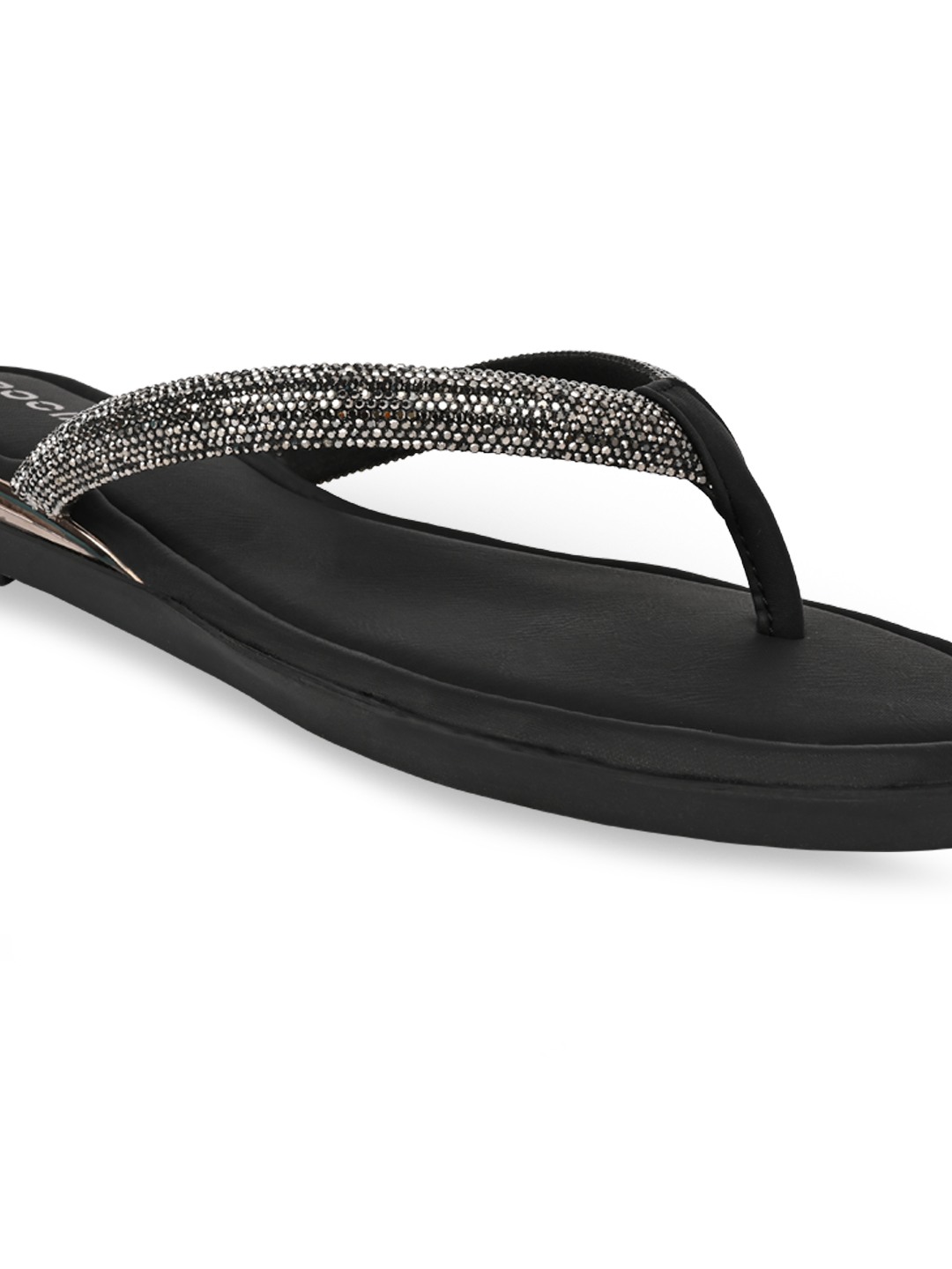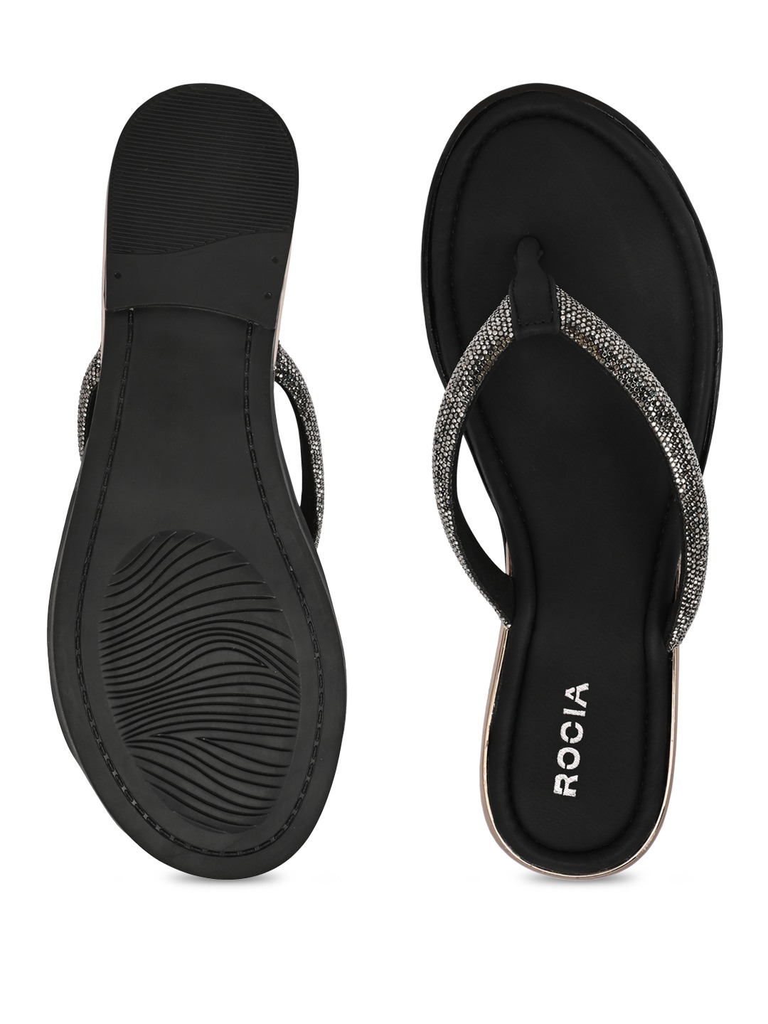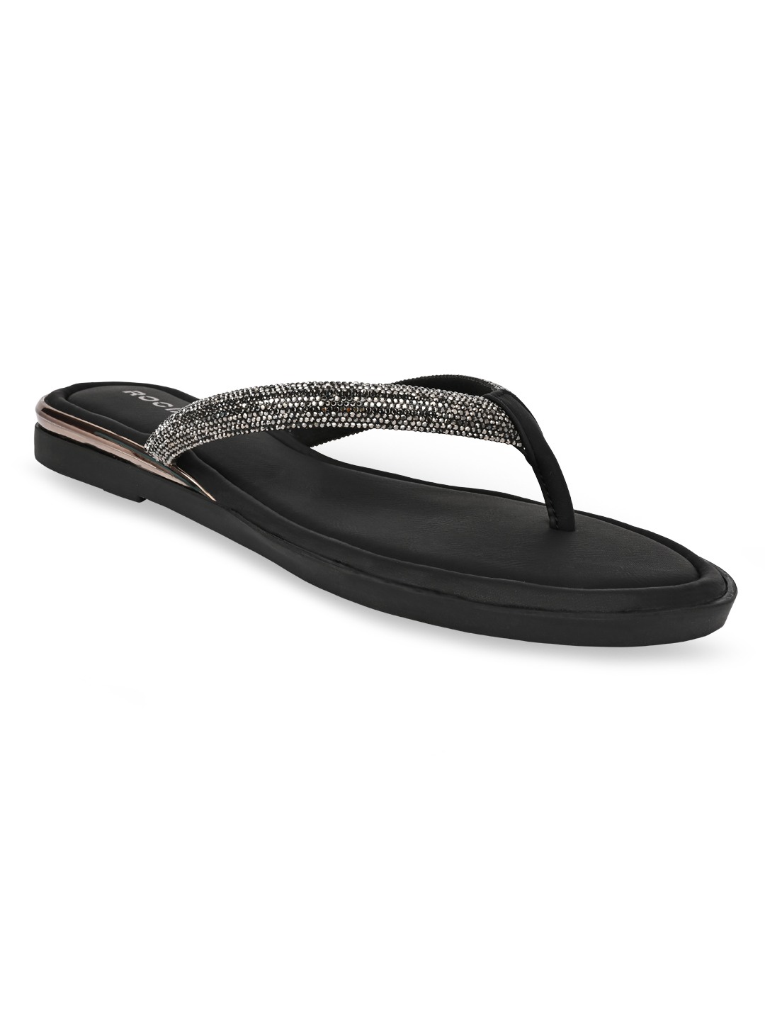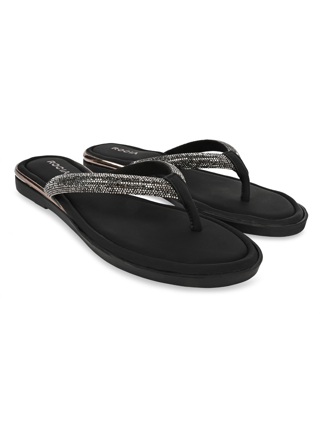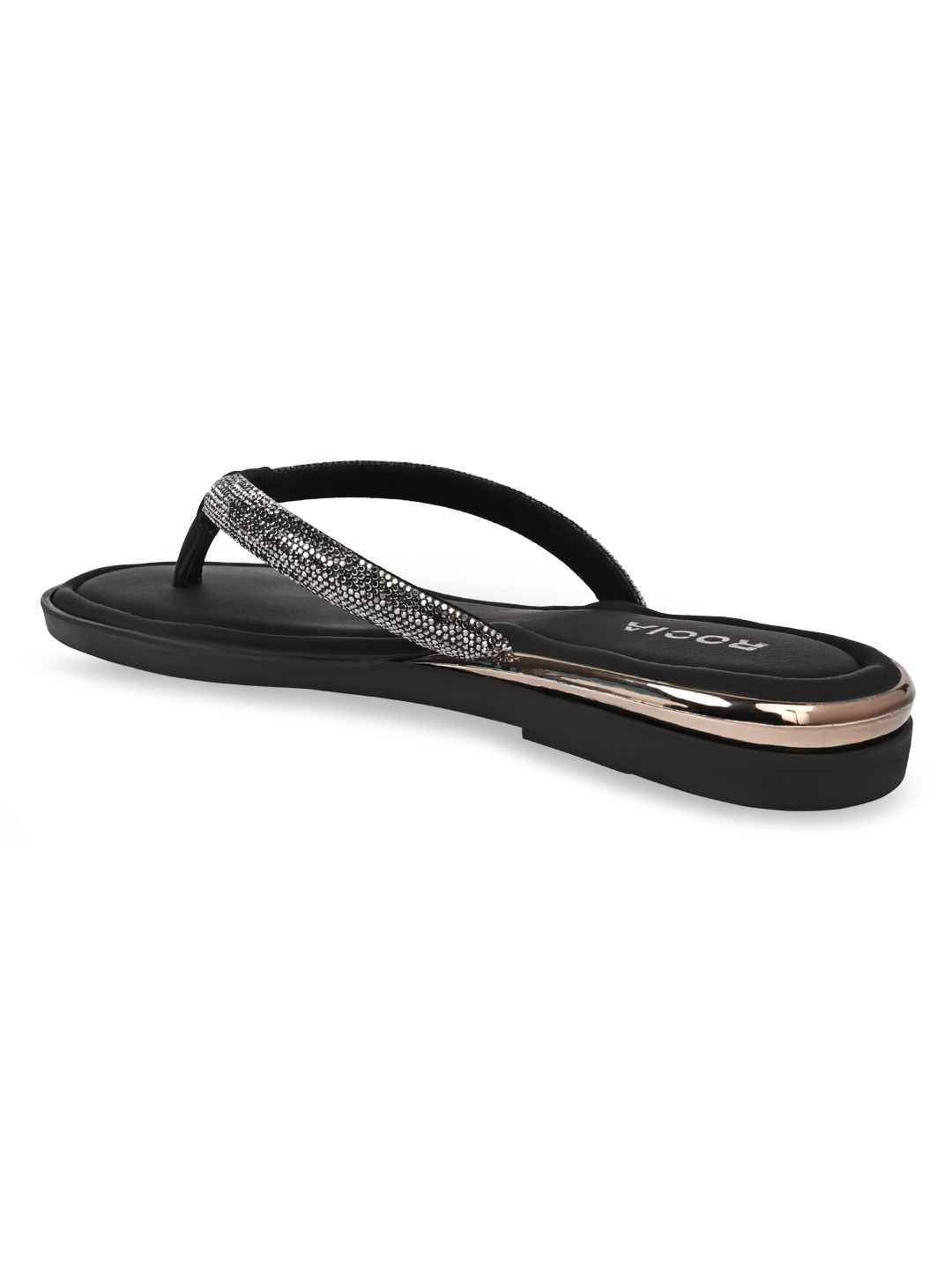 Bringing subtle sparkle to ethnic looks, Rocia by Regal Shoes Diamond Thong Flats feature elegant embellishments that enhance their festive appeal. The open-toe slip-on design keeps them light, breathable, and easy to wear throughout the day. Built on a comfortable 1-inch flat heel, they offer effortless movement without strain. Perfect for festive gatherings, casual celebrations, and pairing with traditional outfits.