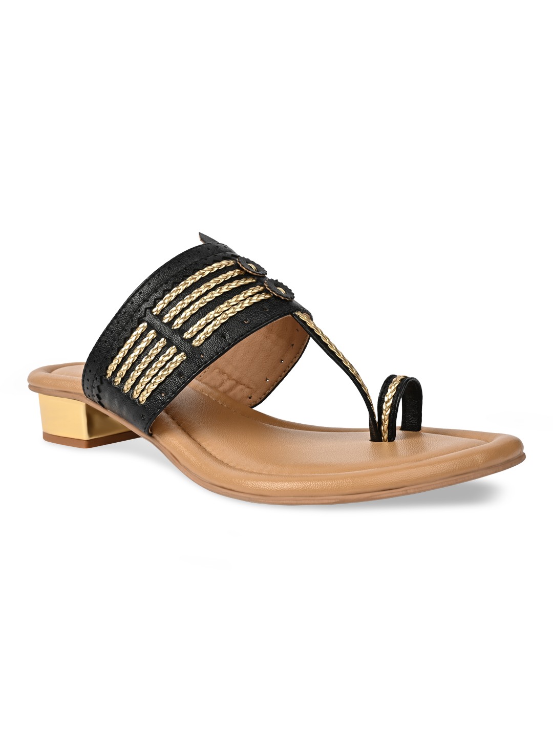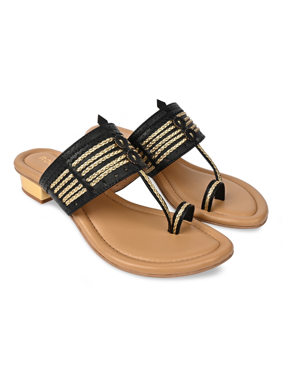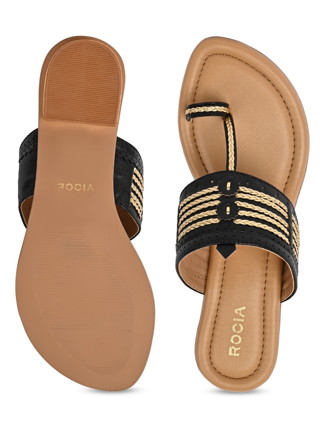 Beautifully blending heritage-inspired design with modern elevation, Rocia by Regal Shoes Kolhapuris feature a sleek open-toe slip-on style enhanced by a 1.5-inch block heel that offers both stability and a graceful lift. Designed for long hours of wear, they transition effortlessly from day events to evening gatherings. A perfect choice for women who appreciate ethnic charm paired with contemporary comfort.