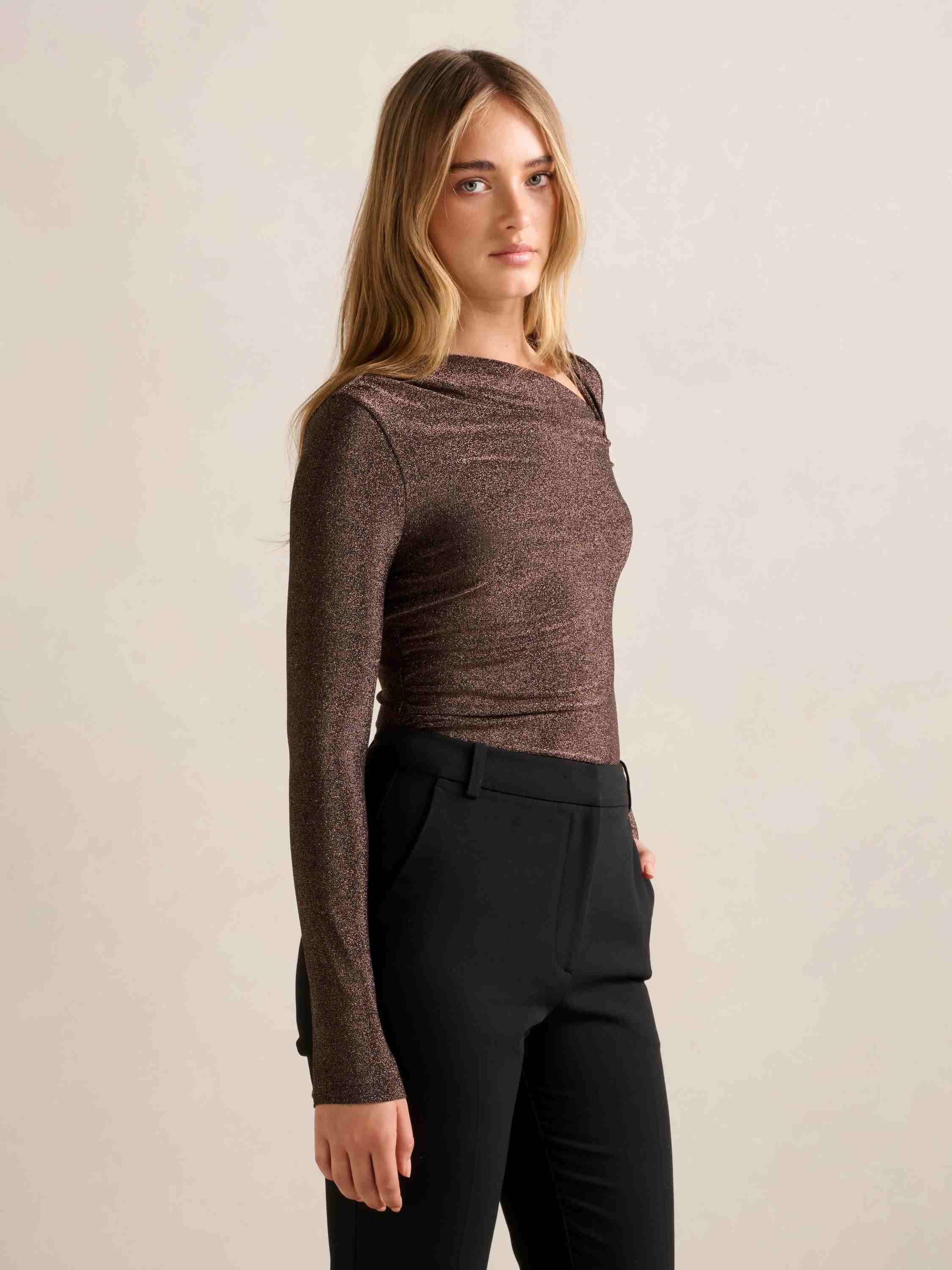Roma Glitter Asym Neck Top