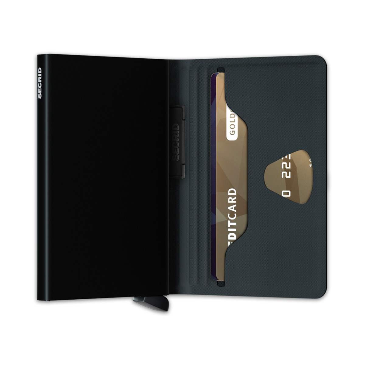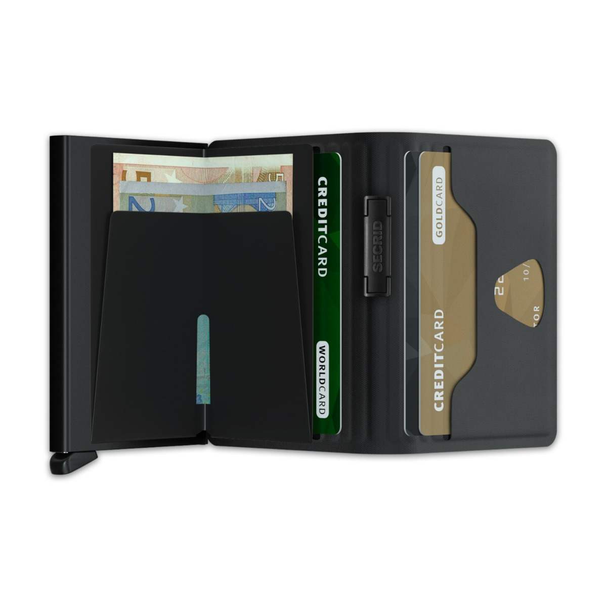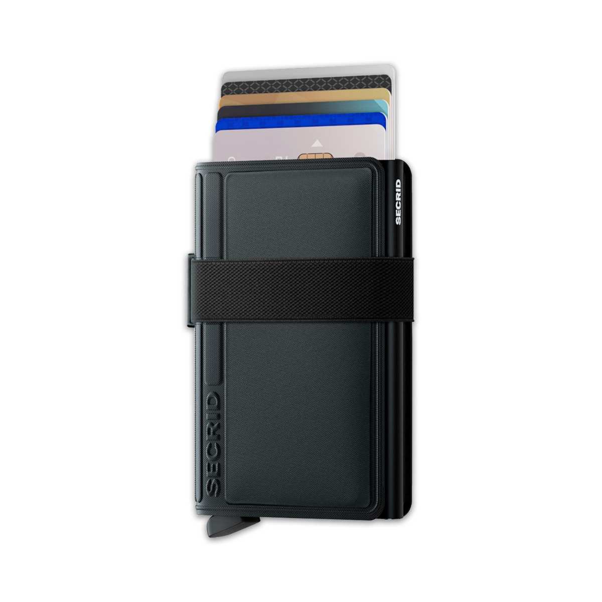 With a band keeping everything tightly in place, the Bandwallet is a slim and secure wallet. A drop-shaped cut-out makes it easy to see and take out cards from the inside pocket. The Cardprotectors patented mechanism allows you to slide your cards out with one simple motion, while the aluminium protects your cards from bending, breaking and unwanted wireless communication. The wallet has a high-frequency welded TPU (Thermoplastic Polyurethane) cover that continues to retain its form, feel and colour. TPU is a strong material, yet flexible and soft to the touch. The scratch-resistant, water-repellent wallet closes with a specially engineered elastic band.