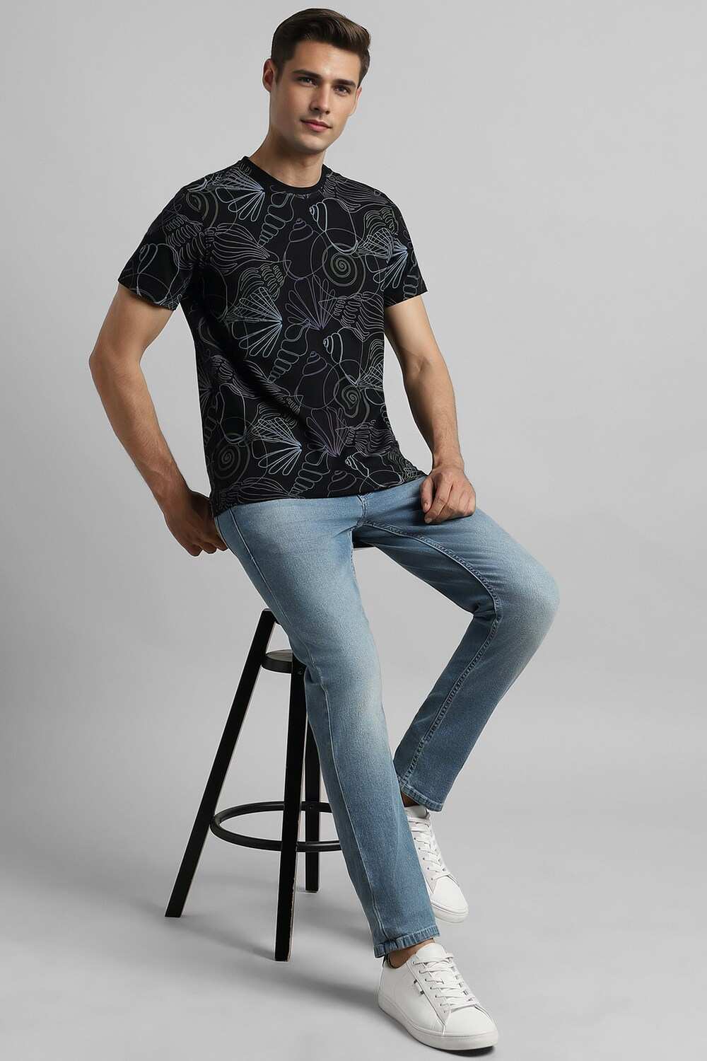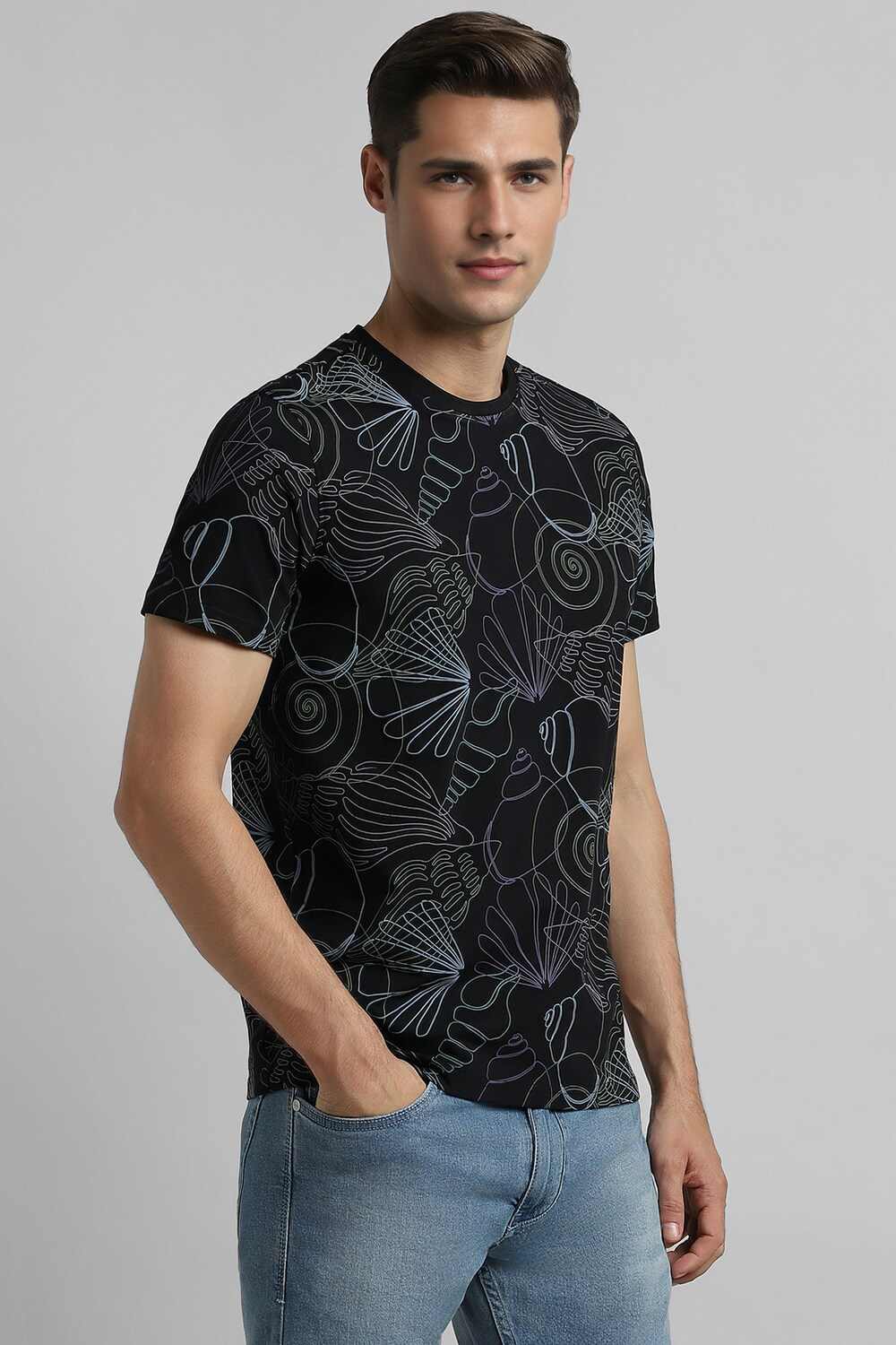 Elevate your casual style with the Simon Carter black t-shirt. Crafted from a premium cotton and spandex blend, it boasts a slim fit that flatters your physique, while the crew neckline and half sleeves provide a comfortable, stylish look. The trendy print adds a modern touch, making it a versatile addition to any wardrobe. Perfect for relaxed outings, this t-shirt effortlessly combines comfort and sophistication.
