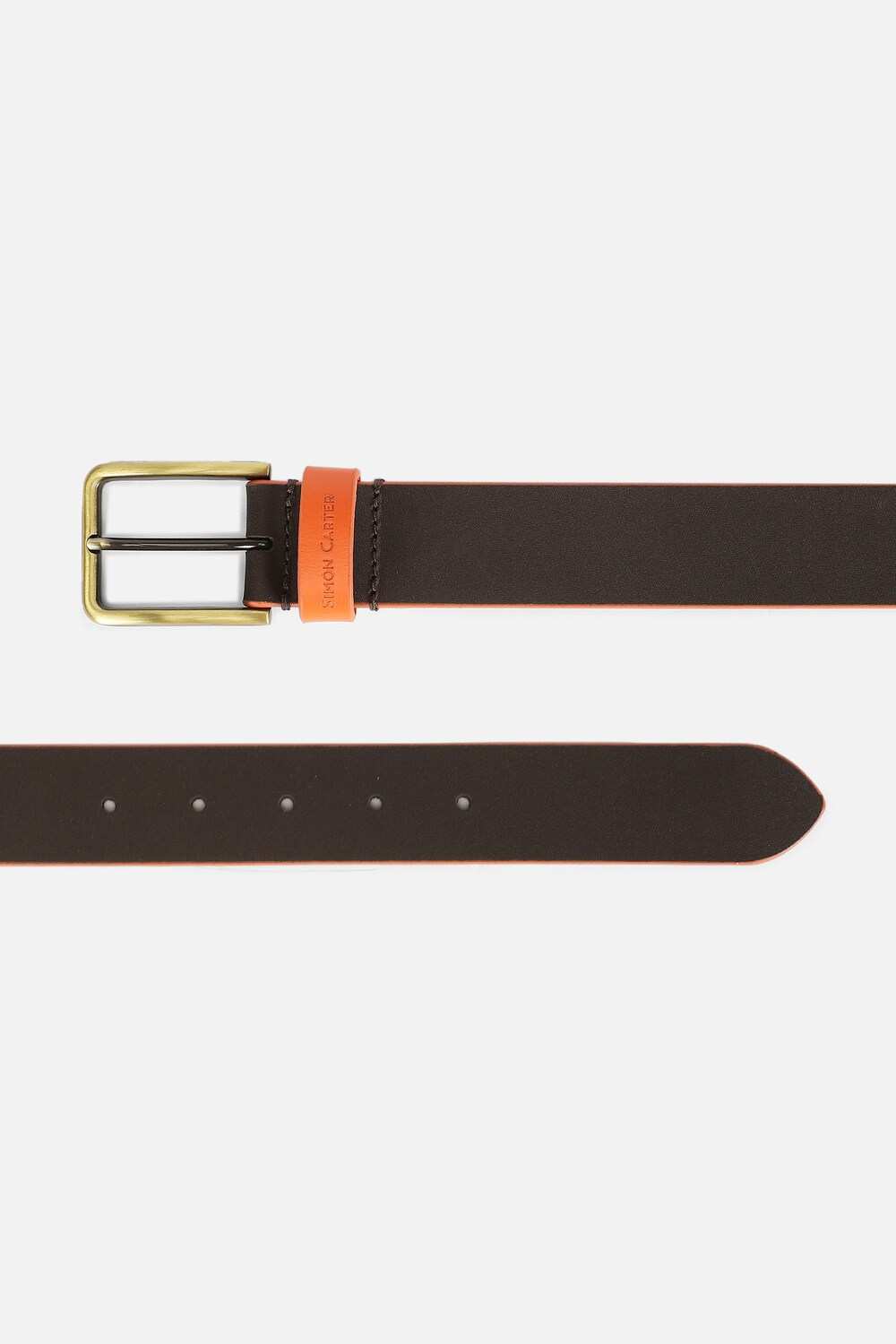 Elevate your formal attire with the Simon Carter solid brown leather belt. Crafted from high-quality leather, it offers durability and a refined finish, making it suitable for any sophisticated occasion. The classic design perfectly complements both tailored suits and casual ensembles, providing a polished look. A versatile accessory that`s essential for every modern man`s wardrobe; this belt not only enhances your style but also ensures a comfortable fit throughout the day.