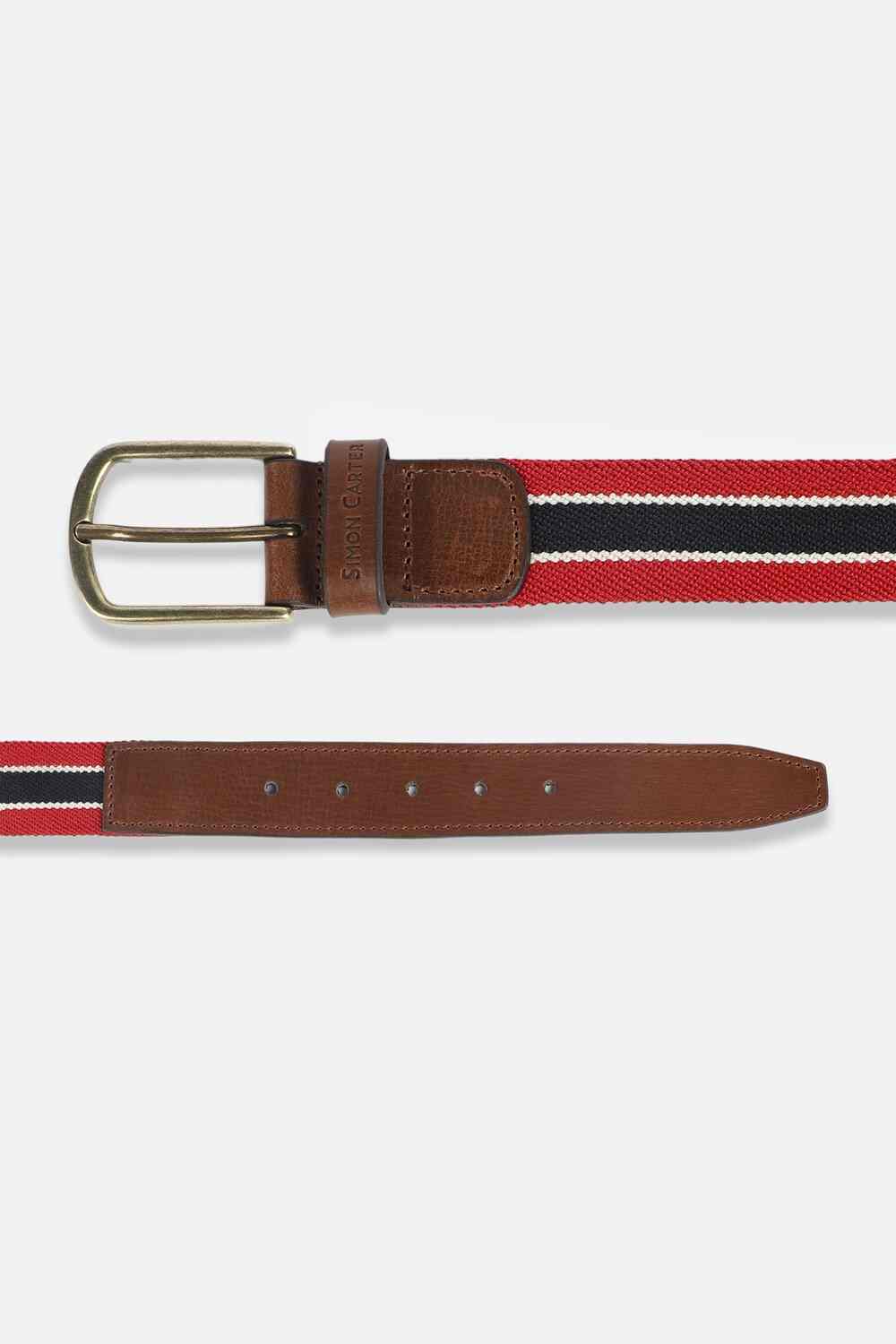 Elevate your casual ensemble with the Simon Carter leather belt in striking red. This accessory seamlessly combines functionality with style, featuring a chic printed design that adds a pop of color to any outfit. Crafted from high-quality leather, it ensures durability while offering a comfortable fit. Ideal for adding a touch of sophistication to your everyday look, this belt is a must-have addition to your accessories collection.