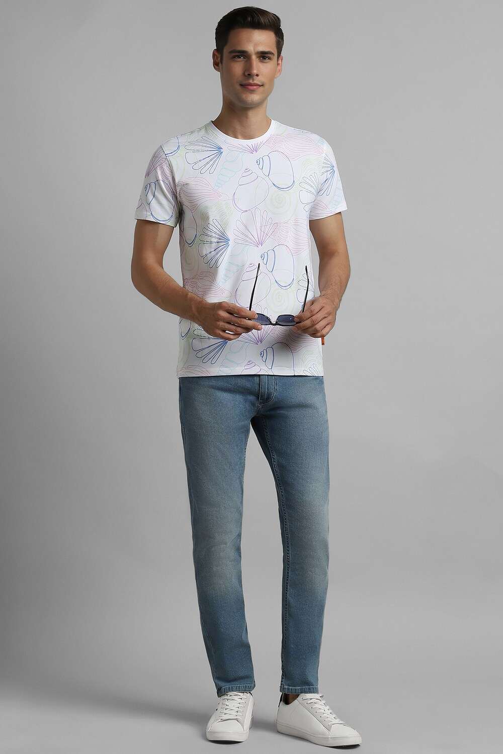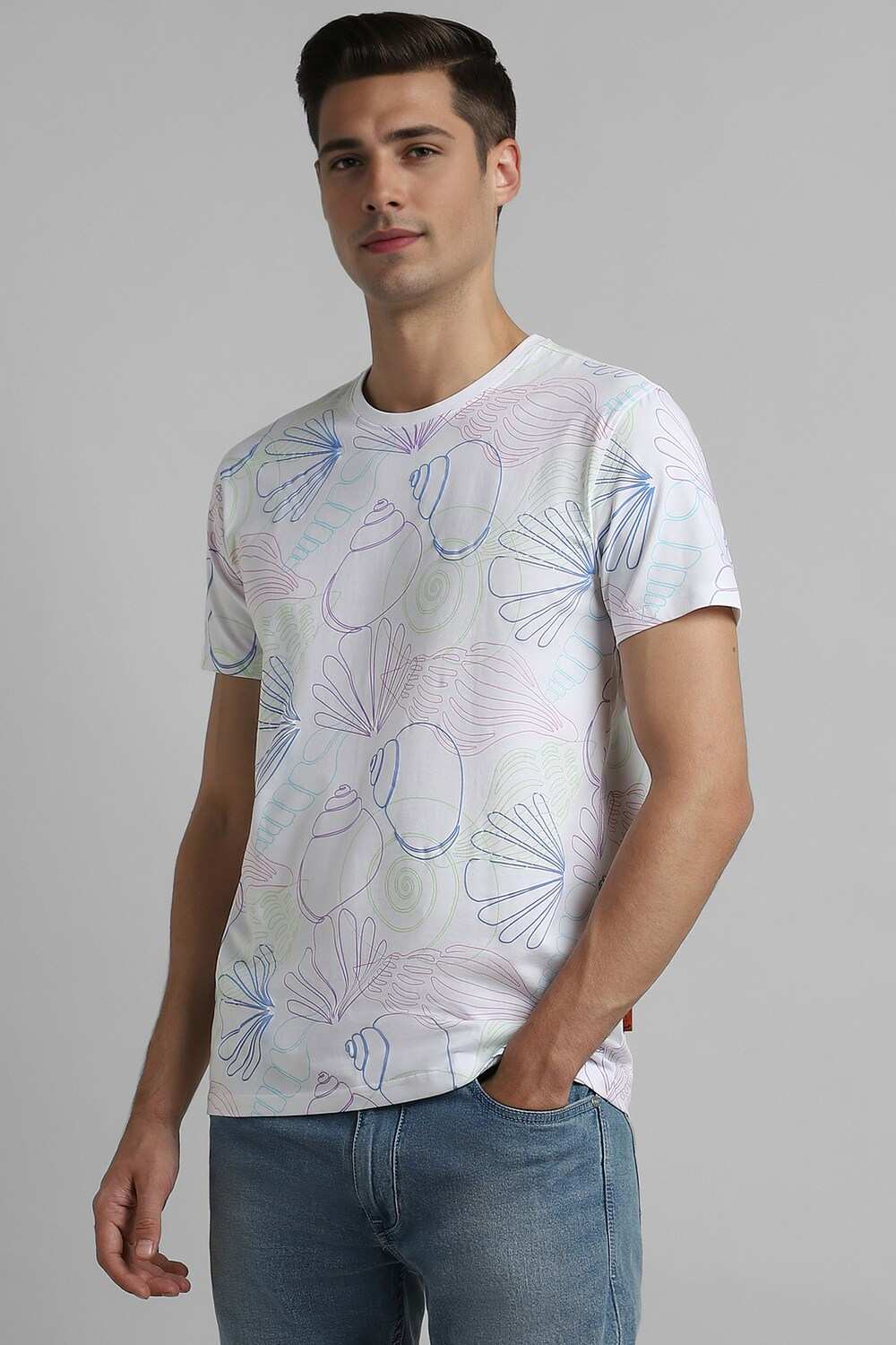 Elevate your casual wardrobe with the Simon Carter white t-shirt, crafted from a premium cotton and spandex blend for ultimate comfort and a modern fit. The half-sleeve design and stylish printed details ensure a contemporary look, perfect for relaxed outings. Embrace a sophisticated approach to casual wear with this slim-fit t-shirt, designed to keep you looking effortlessly stylish. Coordinate with your favorite jeans for a flawless ensemble.