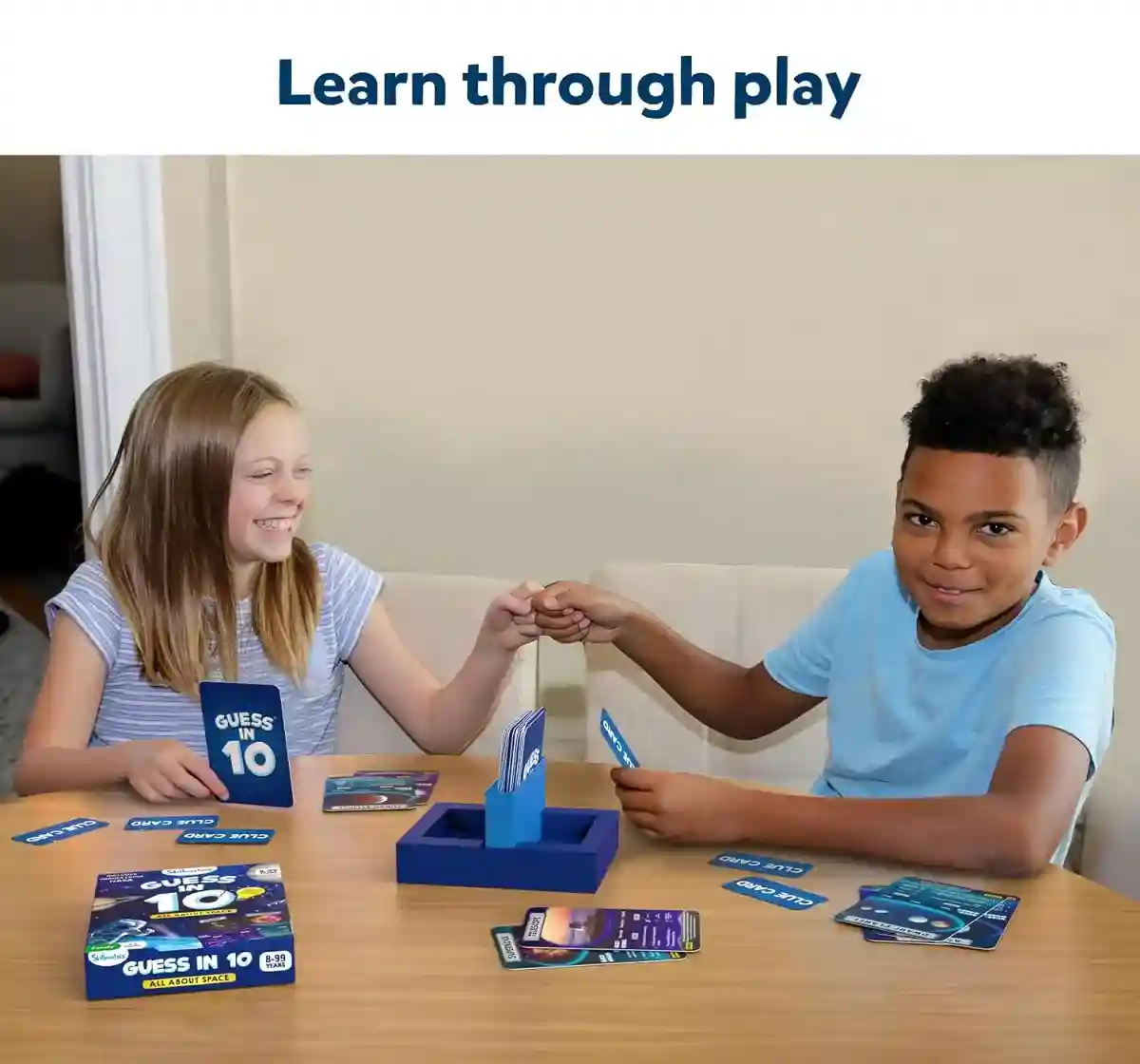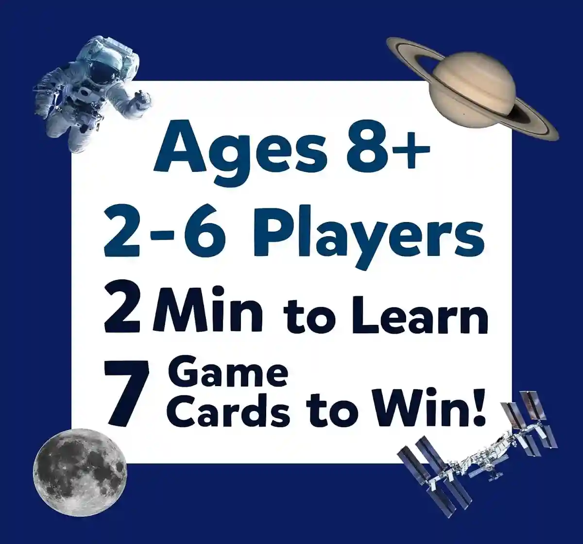 Divide yourselves into teams, or play one on one. Ask up to 10 questions to guess what's on the game card! Is it a planet? Does it emit its own light? Think hard, ask intelligent questions, use your clue cards wisely, and be the first player to collect 7 game cards to win!