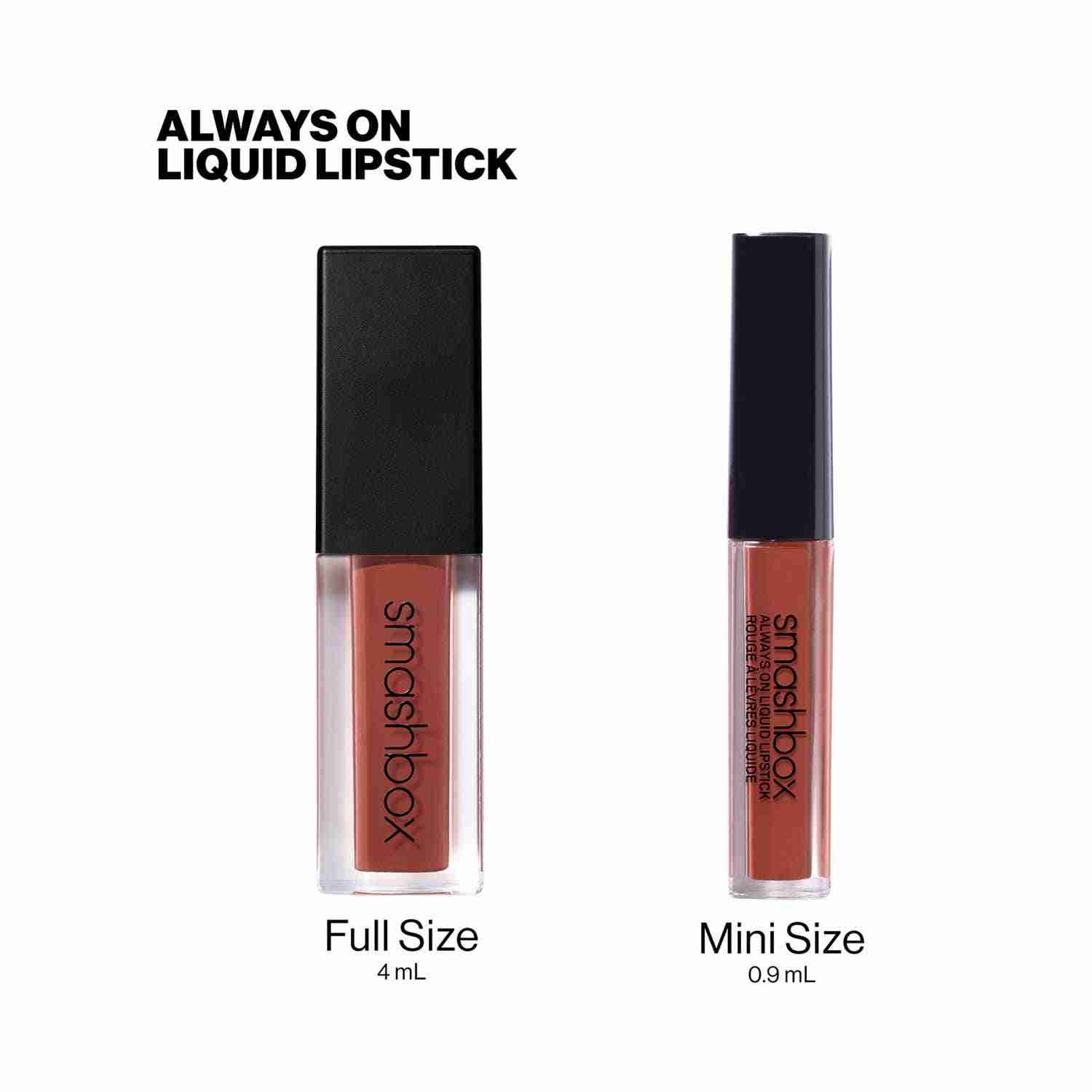 Smashbox Always On Matte Liquid Lipstick is an iconic matte liquid lipstick with the perfect pop of colour. This weightless liquid lipstick comes with a velvety matte finish that lasts all day long. Get your hands on the unquestionably smooth lip color that stays true for up to 8 hours, glides right on and gives that sophisticated matte finish that does not feel dry. Infused with a blend of jojoba, apricot and sunflower oils it feels super comfortable and weightless.