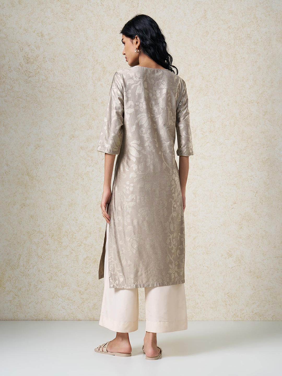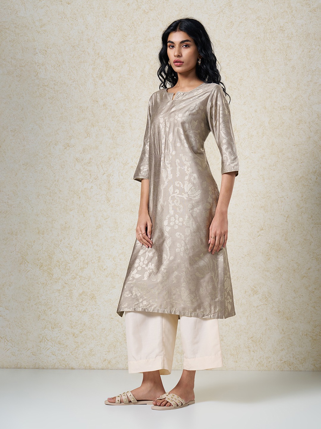 Home/Kurtas/RANGMANCH by Pantaloons/taupe floral print celebration kurta