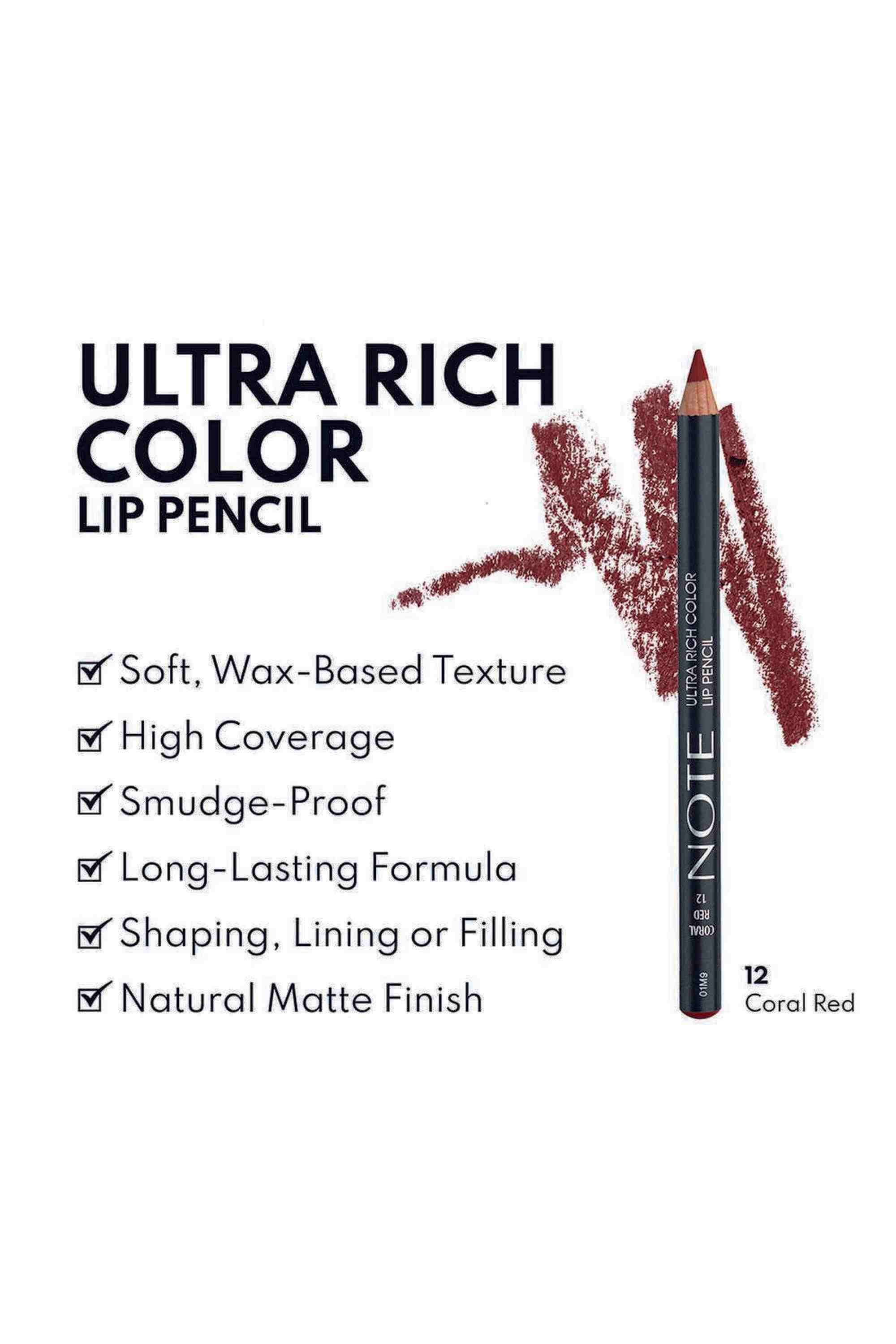 Home/Lip Liner/Note Cosmetique/ultra rich color lip pencil - 12 coral red, 1.1 gm