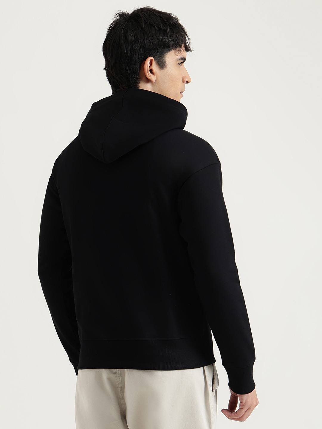 Discover ultimate comfort with our black patch fleece hoodie. Featuring a boxy fit and unique patchwork pattern, this hoodie is crafted from soft polycotton fabric. It boasts full sleeves, a hooded neck, and a convenient pull-on closure. Perfect for men seeking style and warmth in one versatile piece.