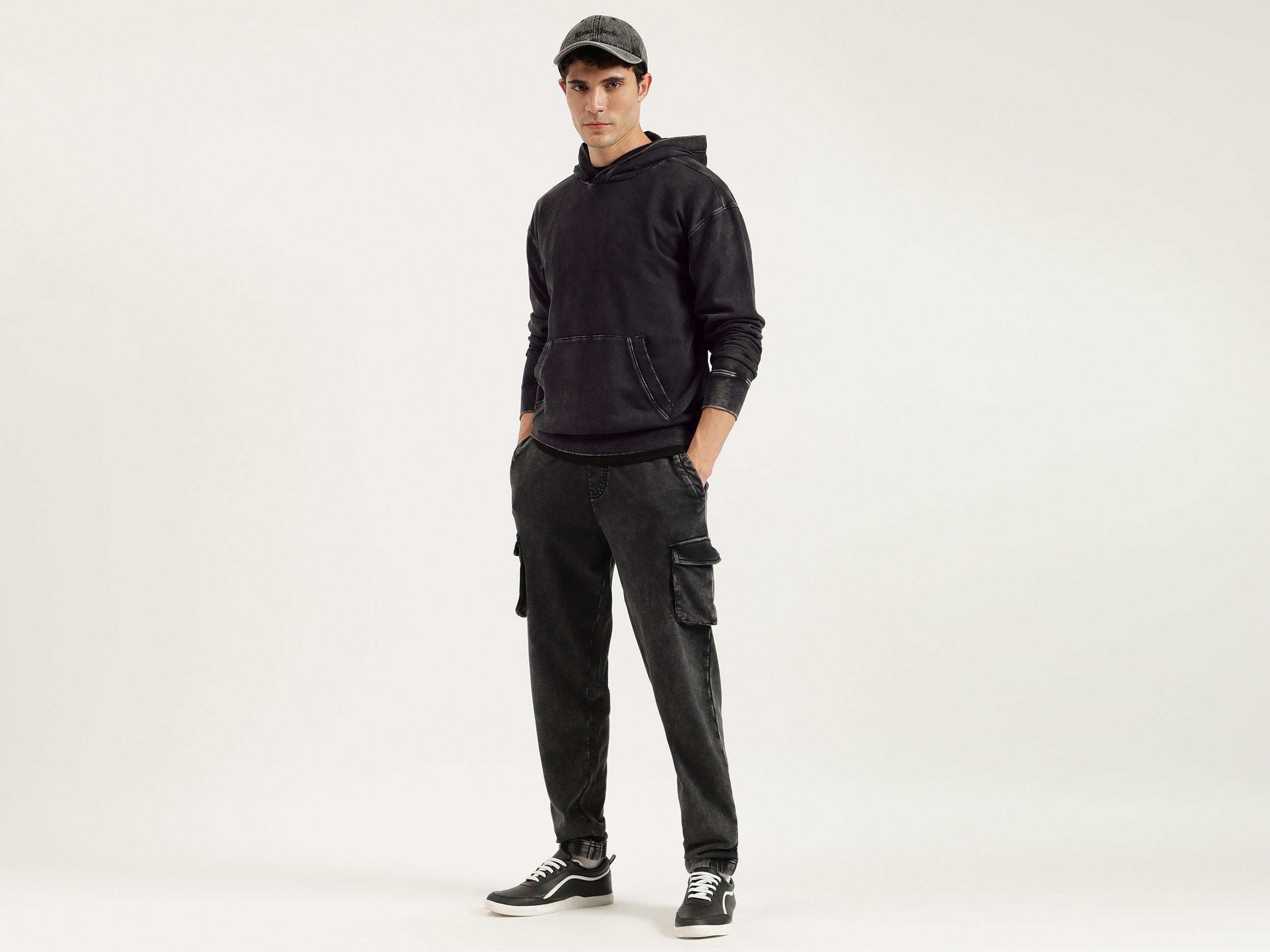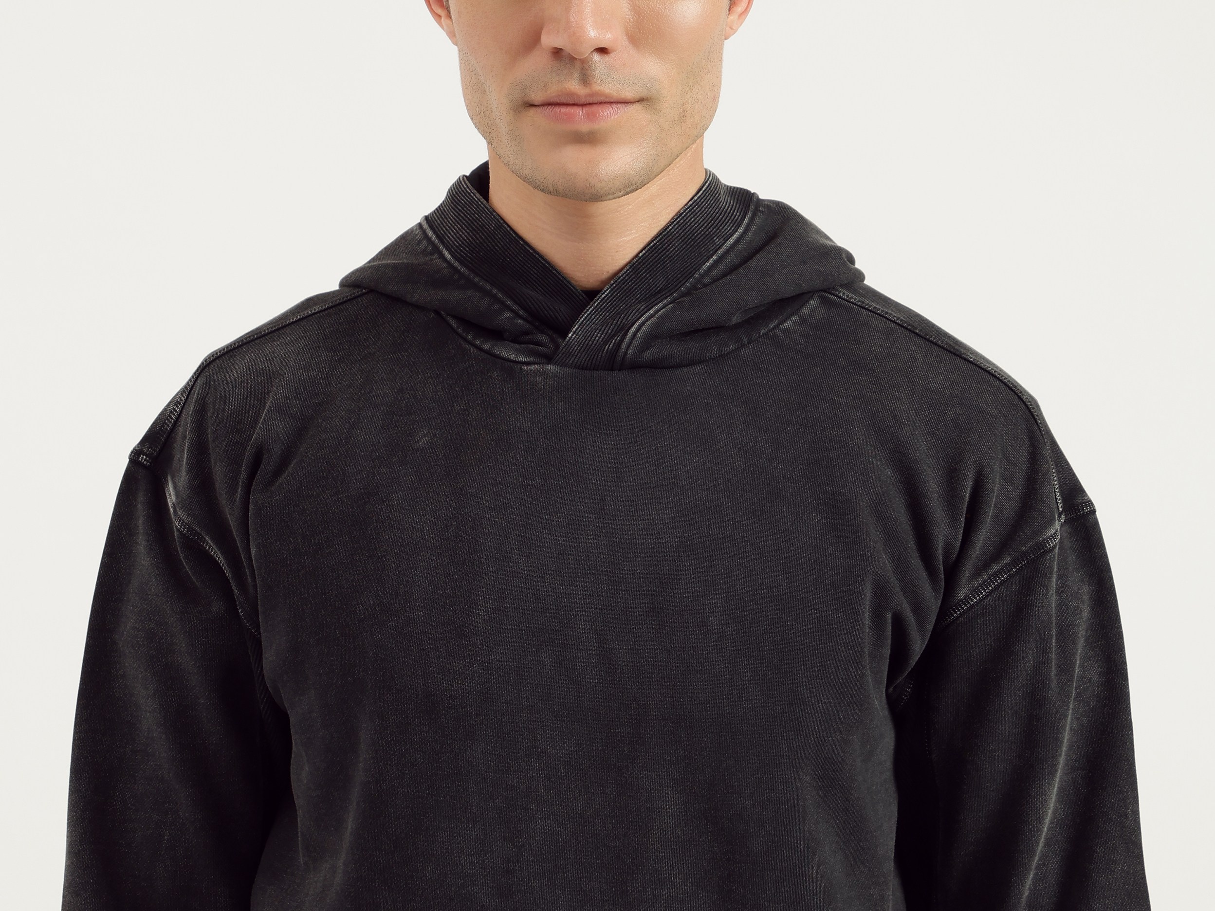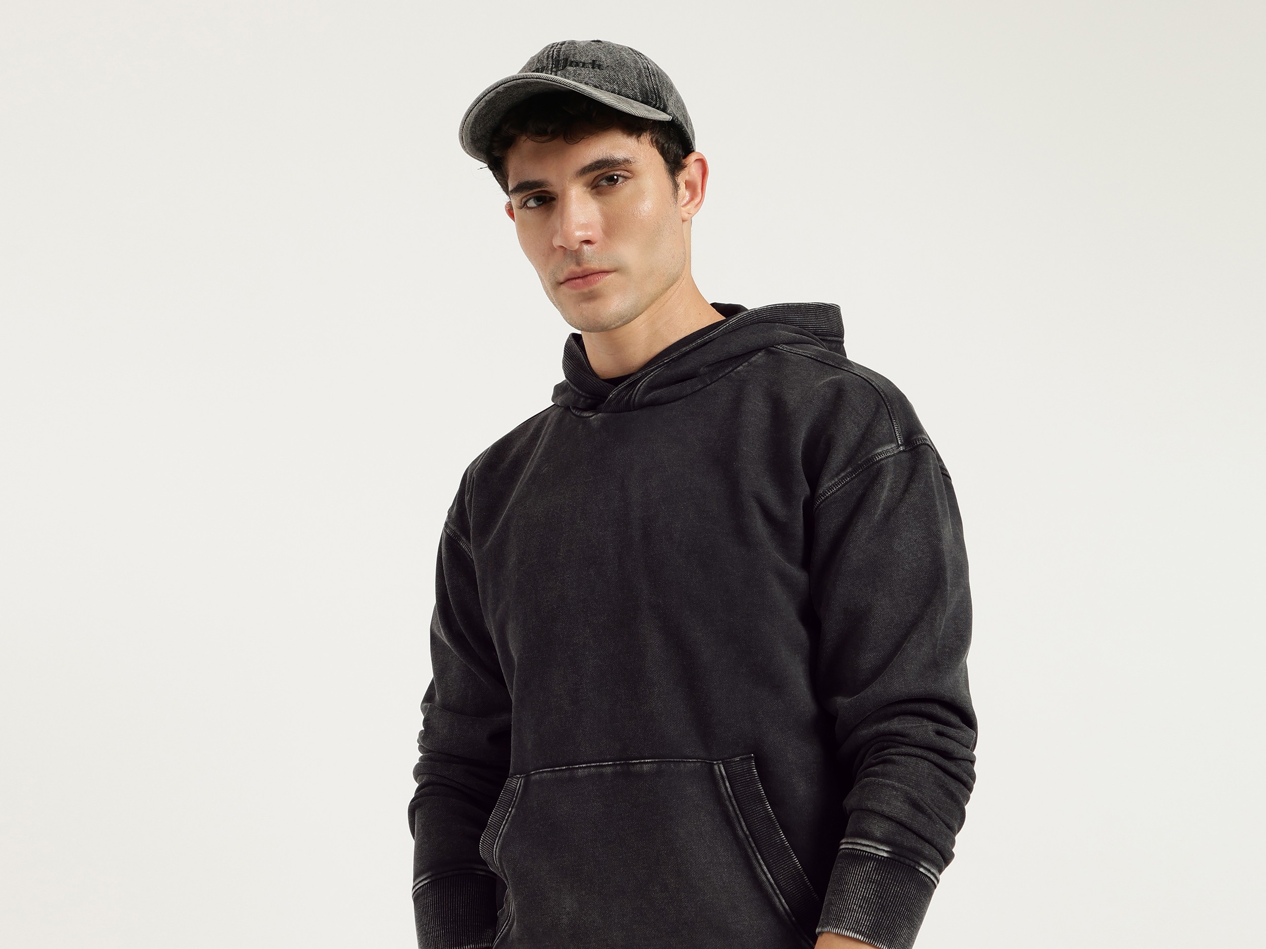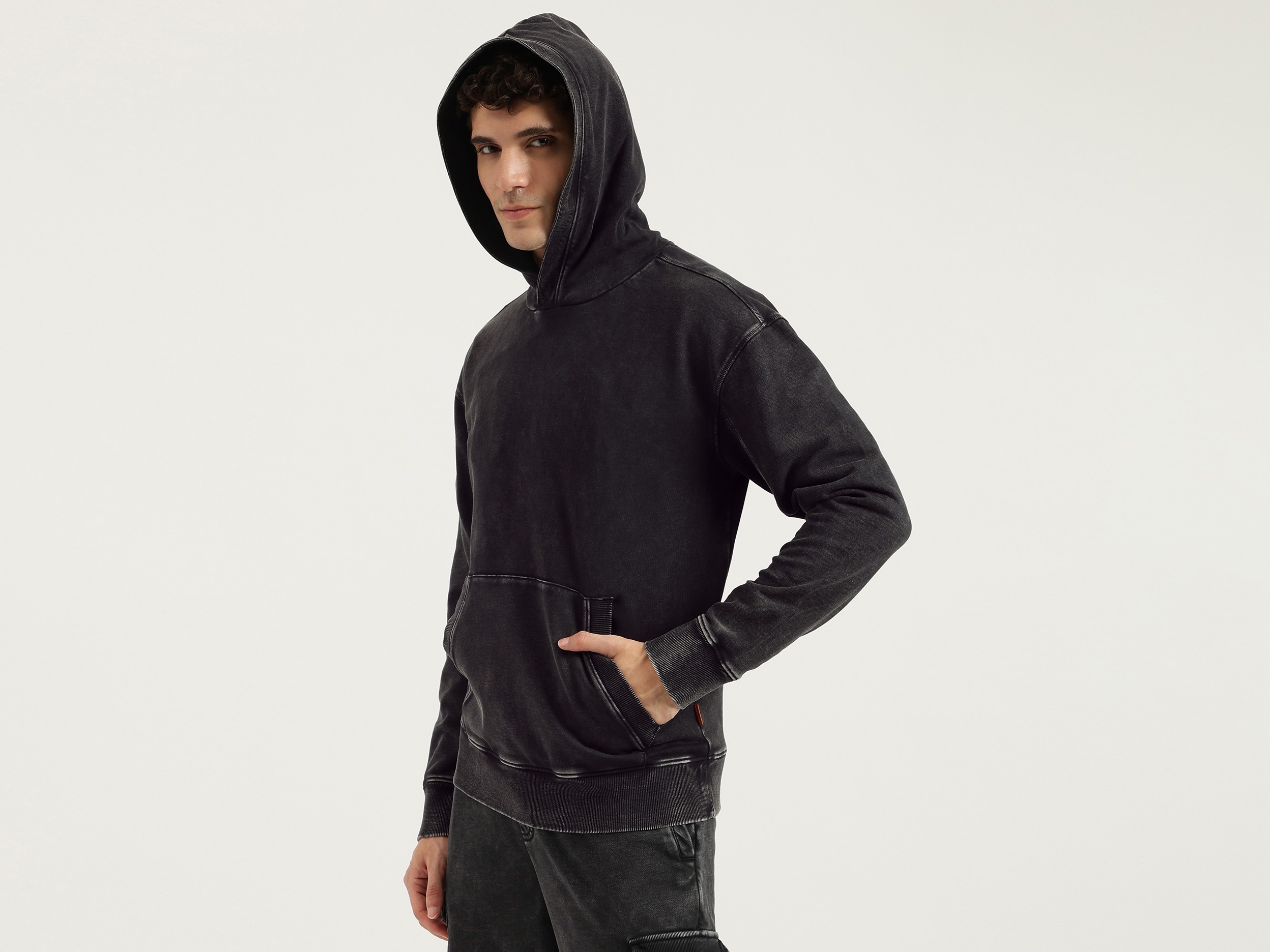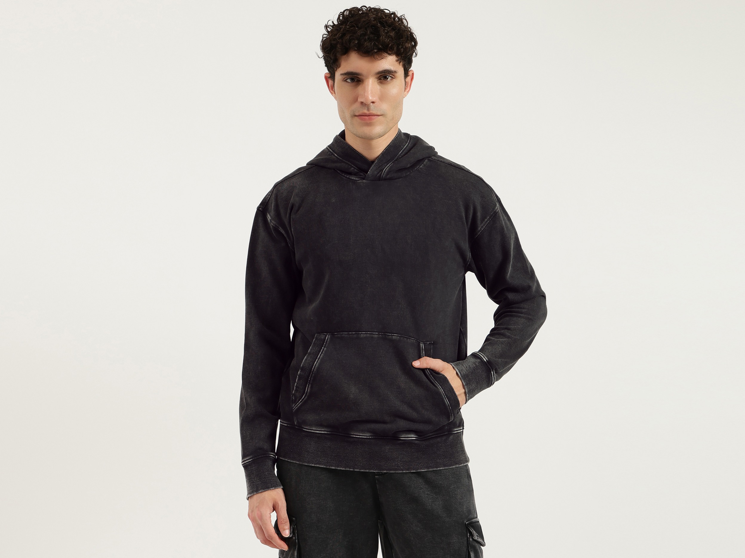 Discover ultimate comfort with our washed terry sweatshirt in classic black. Featuring a boxy fit and solid pattern, this full-sleeve hoodie is crafted from soft polycotton fabric. Designed for men, it offers a relaxed style with a convenient pull-on closure. Perfect for casual outings or cozy days at home.