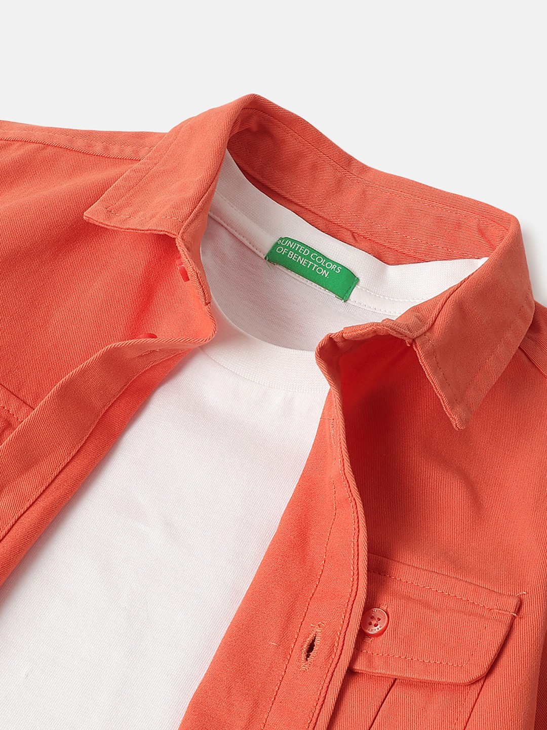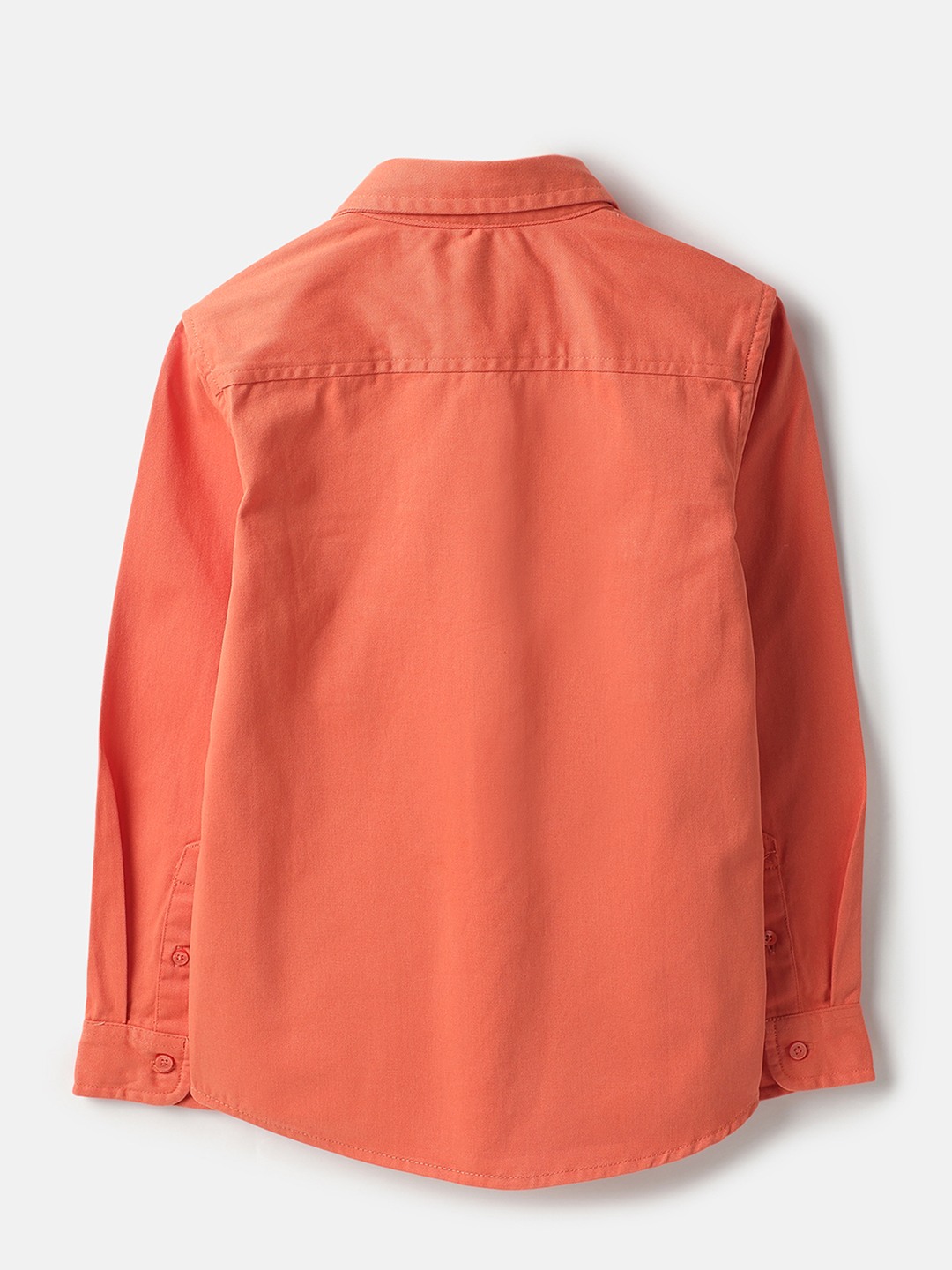 Discover the perfect blend of style and comfort with our rust-colored twill shirt for boys. Featuring a boxy fit and solid pattern, this full-sleeve shirt boasts a spread collar and button closure. Made from pure cotton fabric, it's ideal for any occasion, offering both durability and a trendy look.