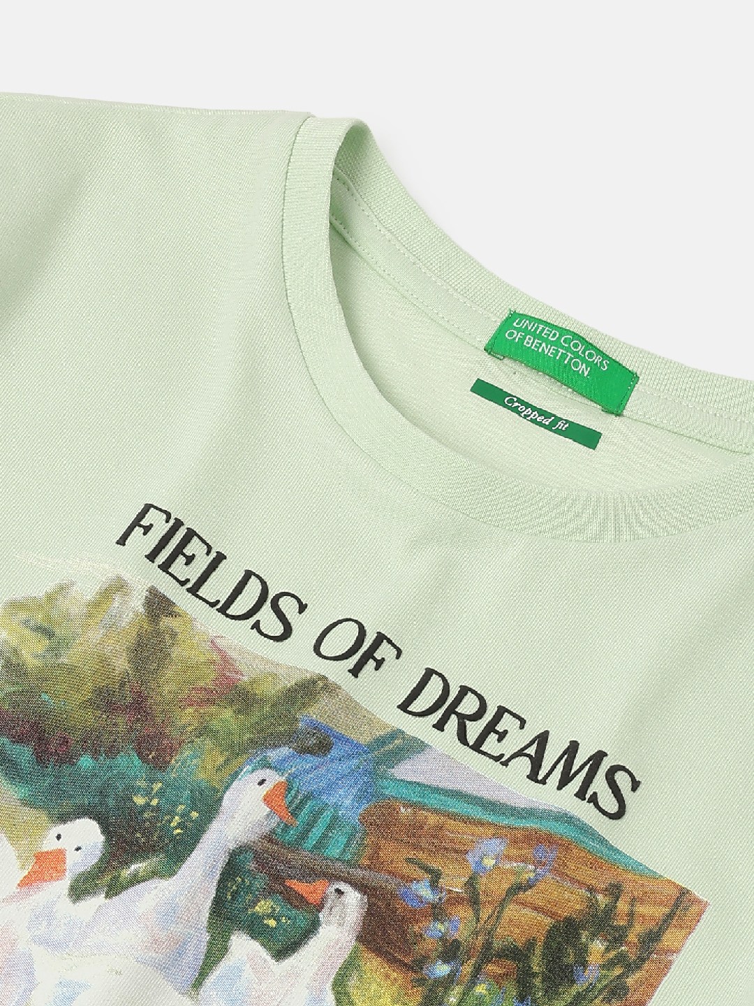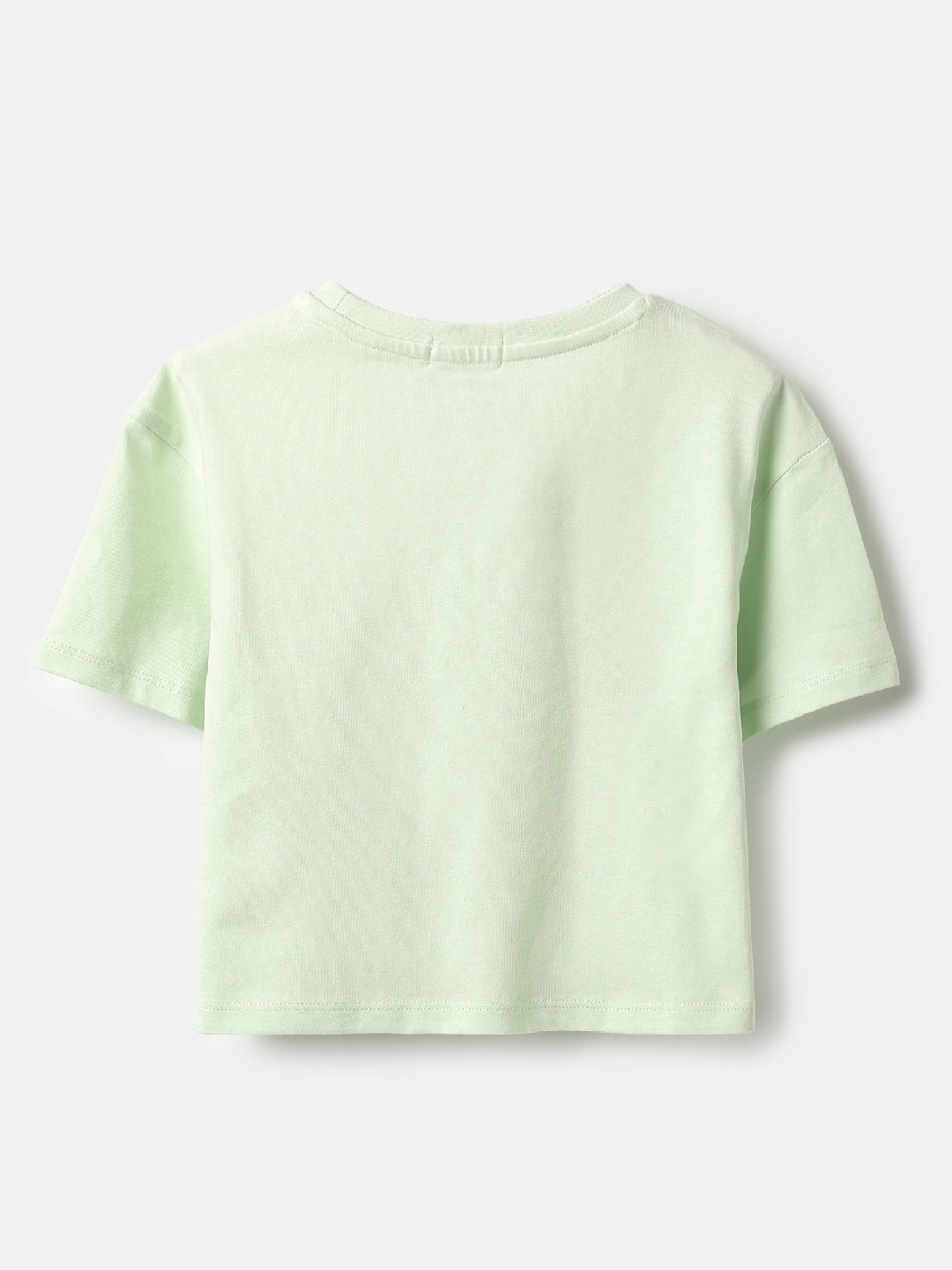 Discover the perfect blend of style and comfort with our pale green cropped t-shirt for girls. Featuring a trendy graphic pattern, short sleeves, and a classic round neck, this pure cotton tee offers a soft, breathable fit. Easy pull-on closure makes it a versatile wardrobe essential for any occasion.
