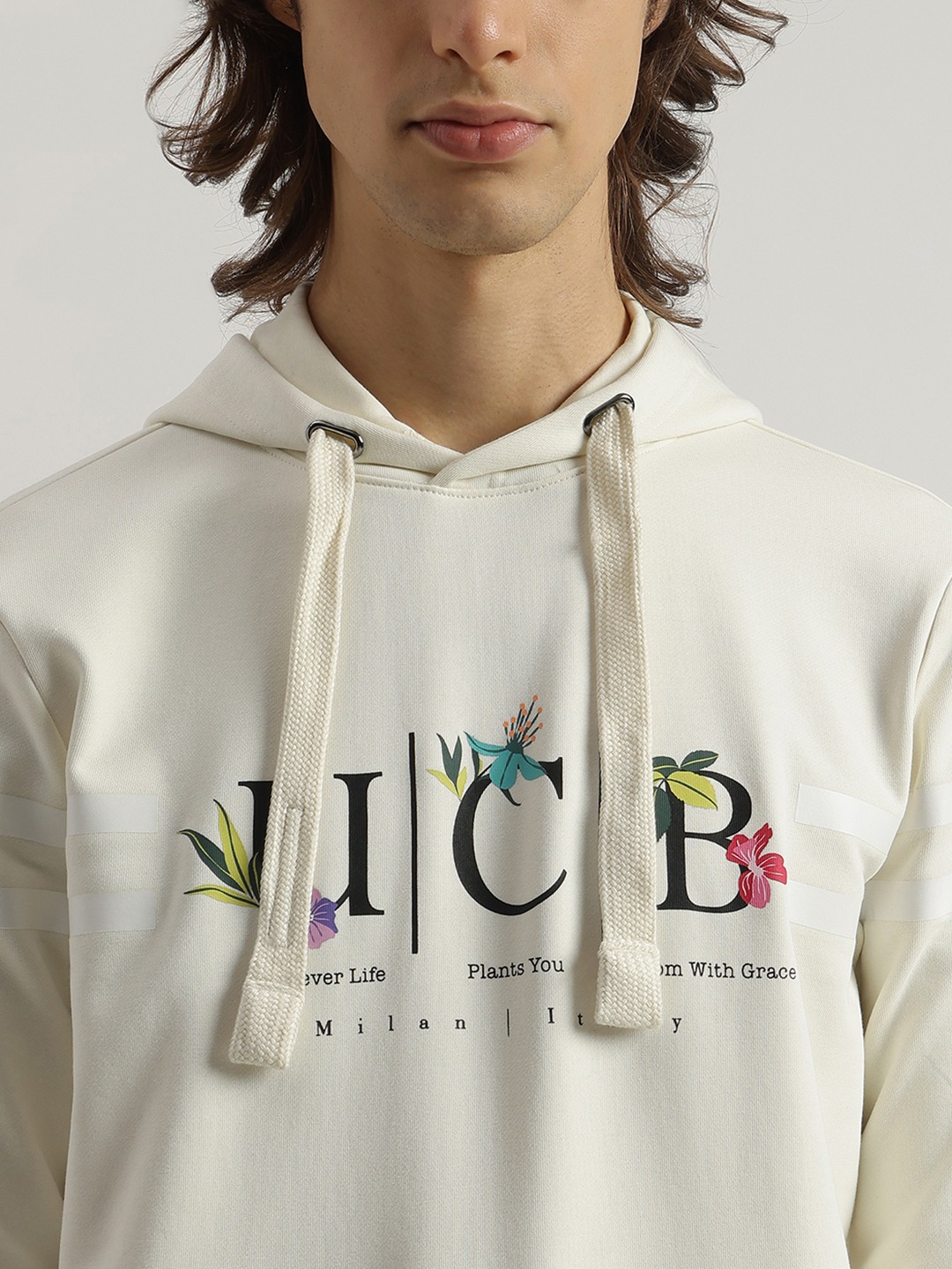 Discover comfort and style with our off-white terry sweatshirt for men. Featuring a regular fit and printed pattern, this full-sleeve hoodie is crafted from soft polycotton fabric. The pull-on closure ensures easy wear, making it perfect for casual outings or lounging. Elevate your wardrobe with this versatile and trendy piece.