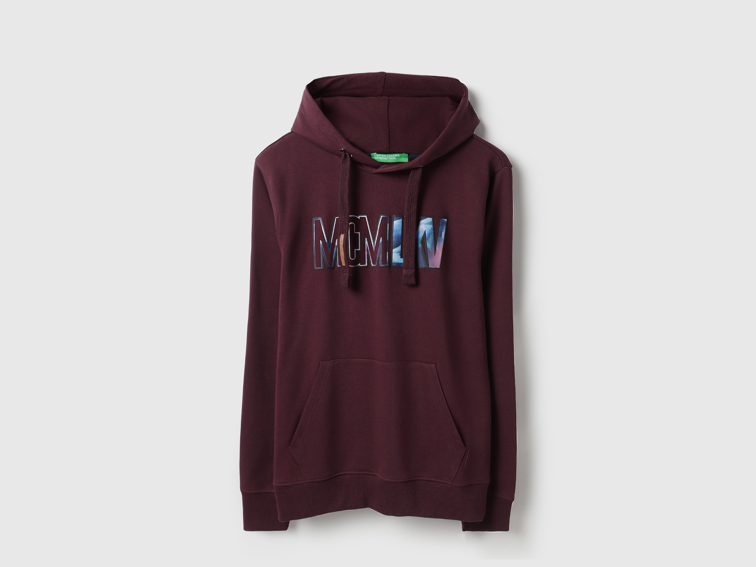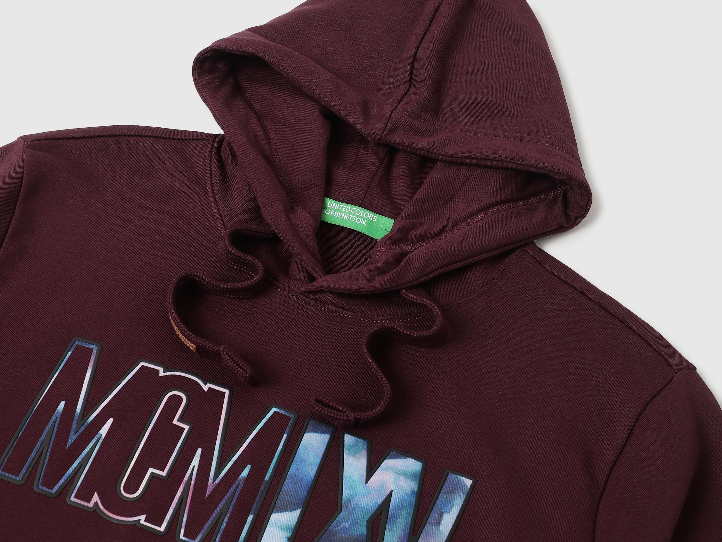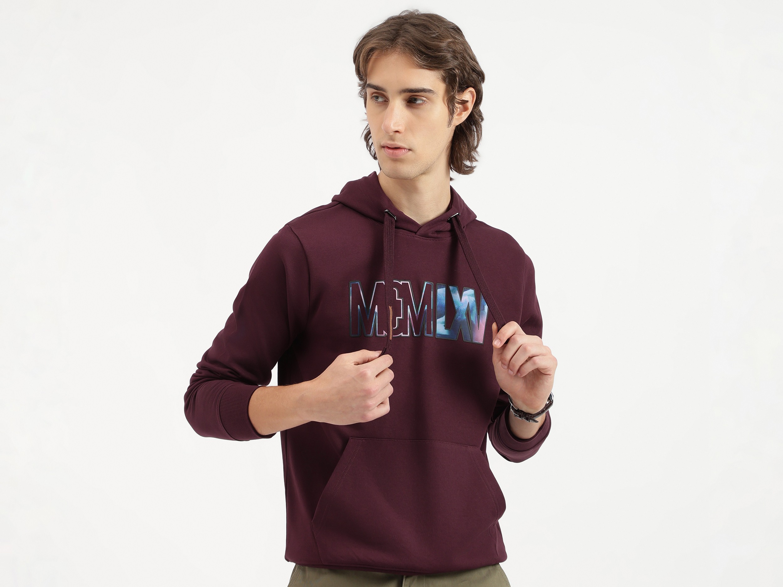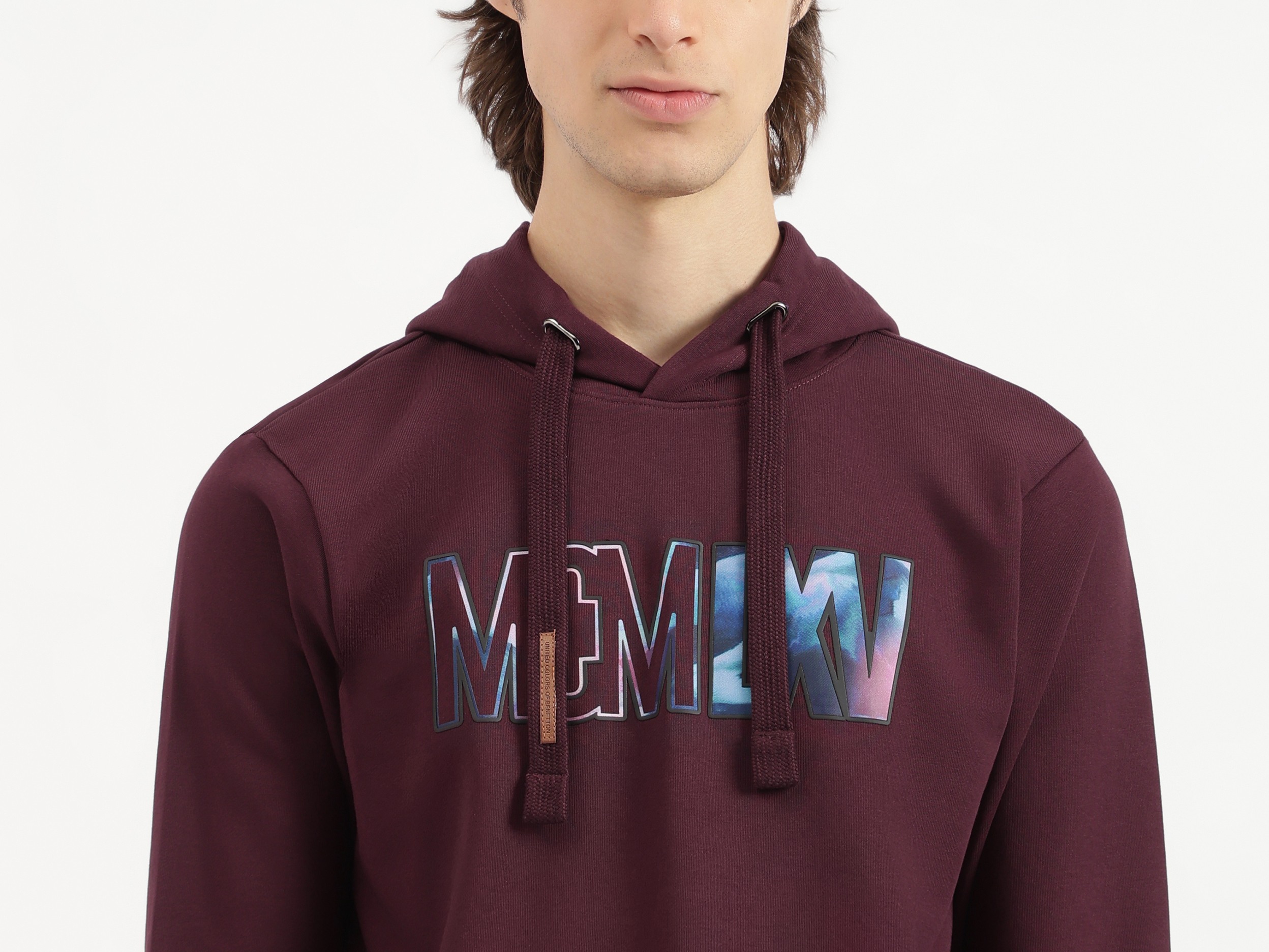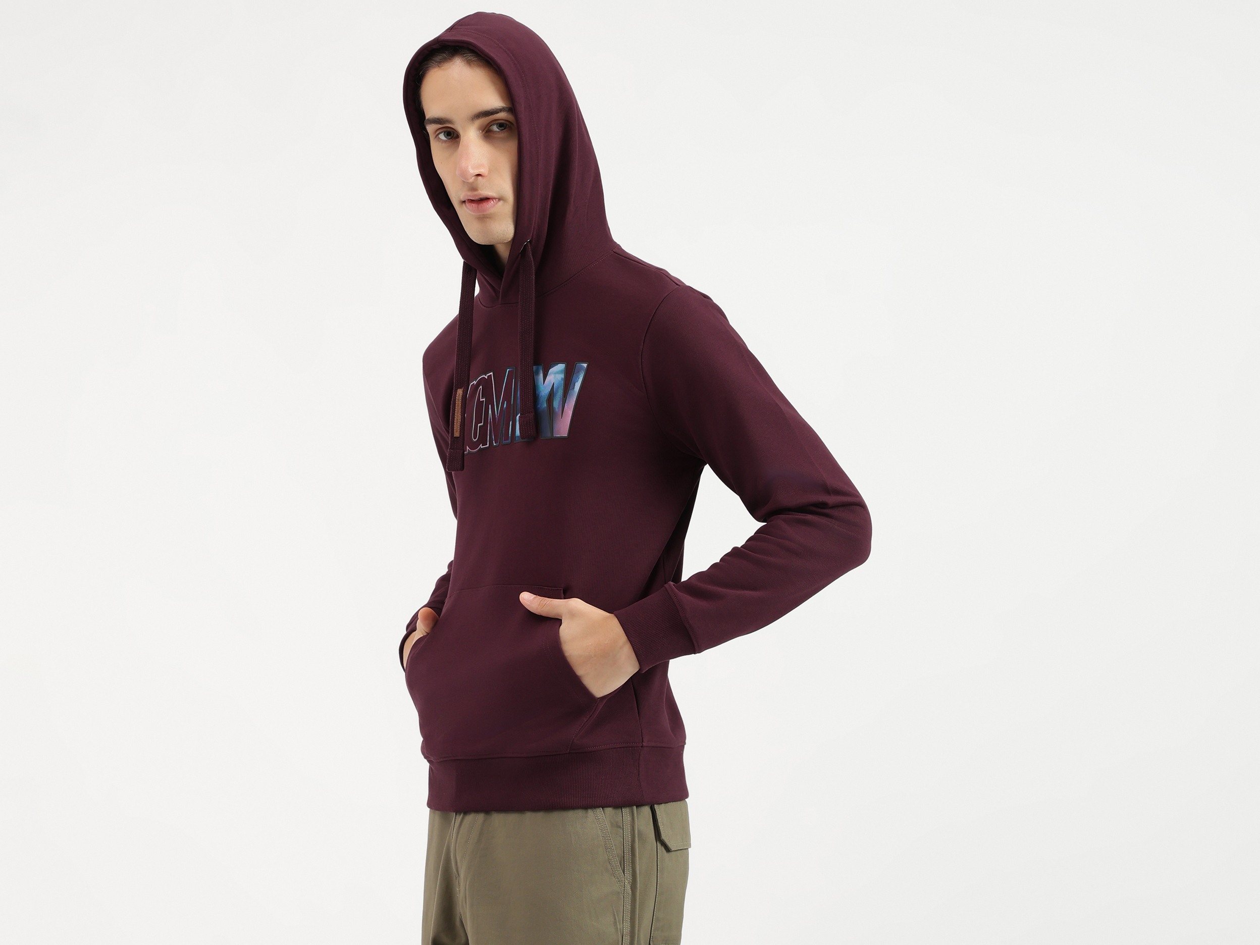 Elevate your style with our wine-colored fabric transfer terry sweatshirt. Featuring a regular fit and eye-catching typography pattern, this full-sleeve hoodie offers comfort and flair. Crafted from a soft cotton blend, it ensures a cozy feel. The pull-on closure makes it easy to wear, perfect for the modern man.