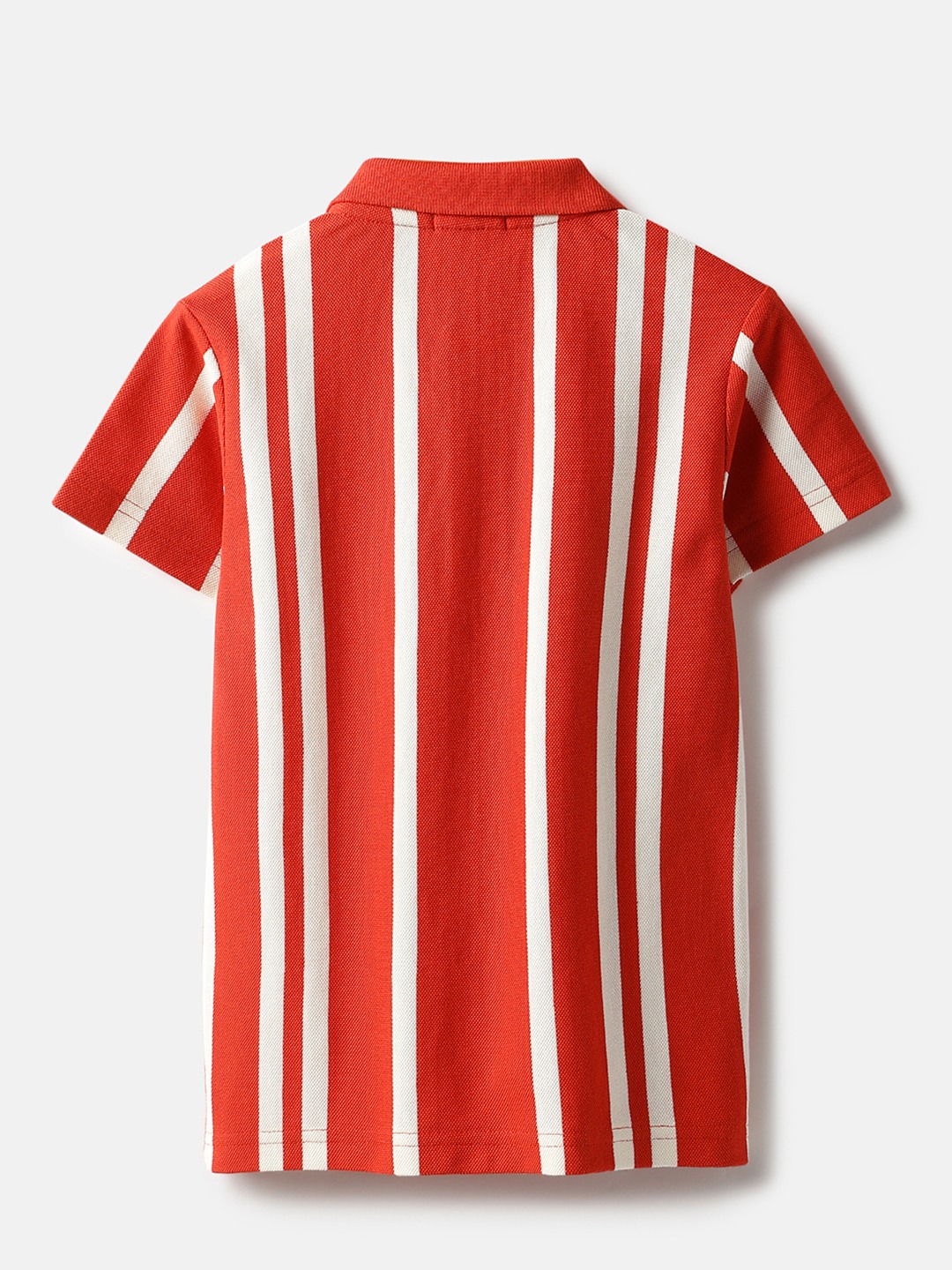 This boys' red t-shirt features a classic polo neck and short sleeves, offering a regular fit for comfort. Made from pure cotton, it boasts a stylish vertical stripes pattern. The button closure adds a touch of sophistication, making it perfect for casual outings or family gatherings.