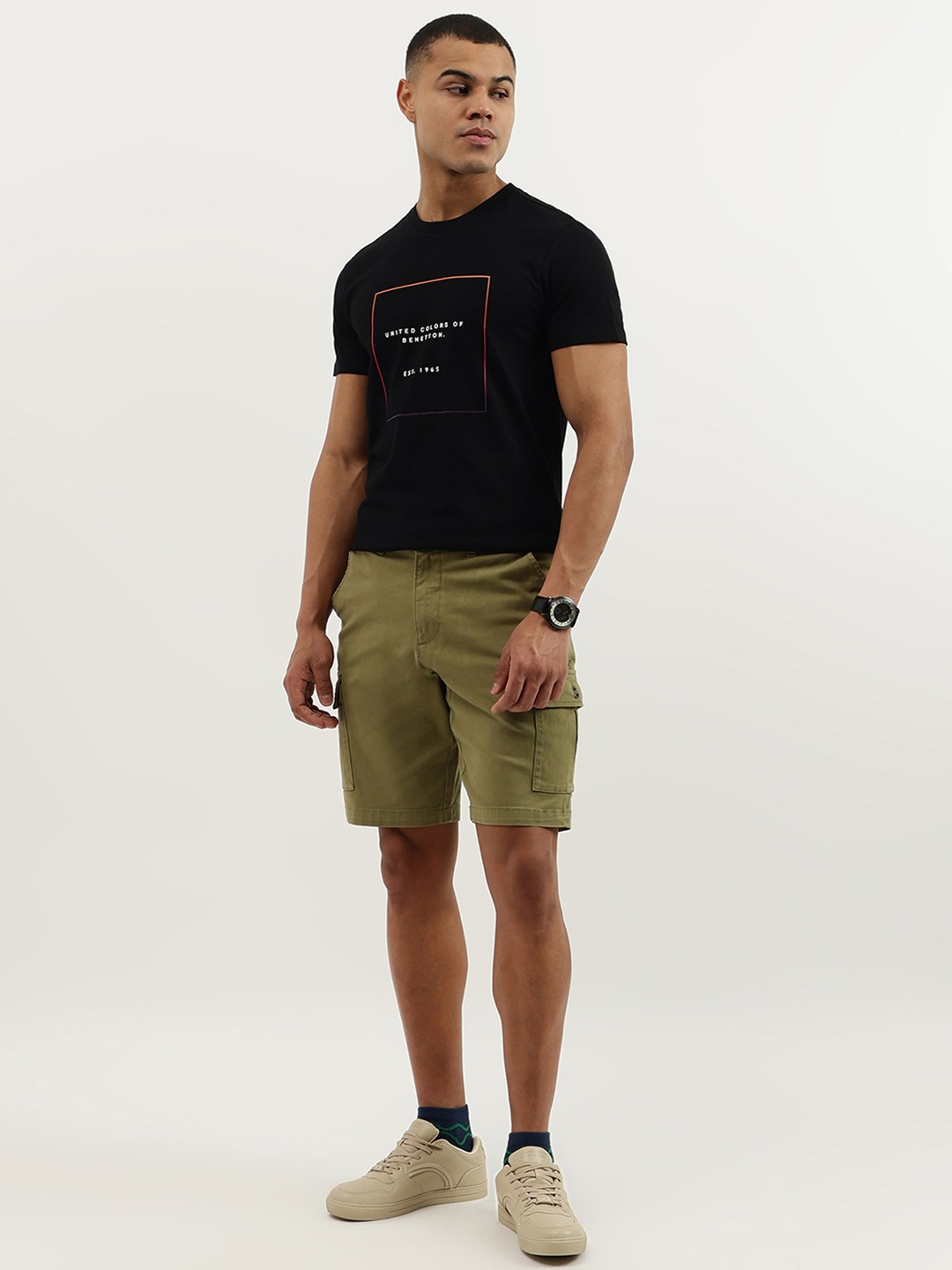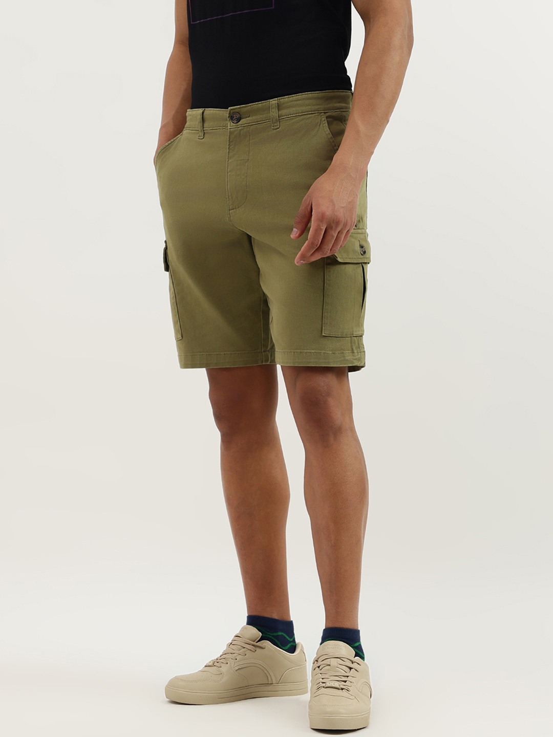 Discover ultimate comfort with our olive cargo shorts. Designed for men, these mid-rise shorts feature a solid pattern and button closure. Crafted from a soft cotton blend, they offer a relaxed fit perfect for any adventure. Embrace style and functionality with spacious pockets and durable construction. Ideal for everyday wear.