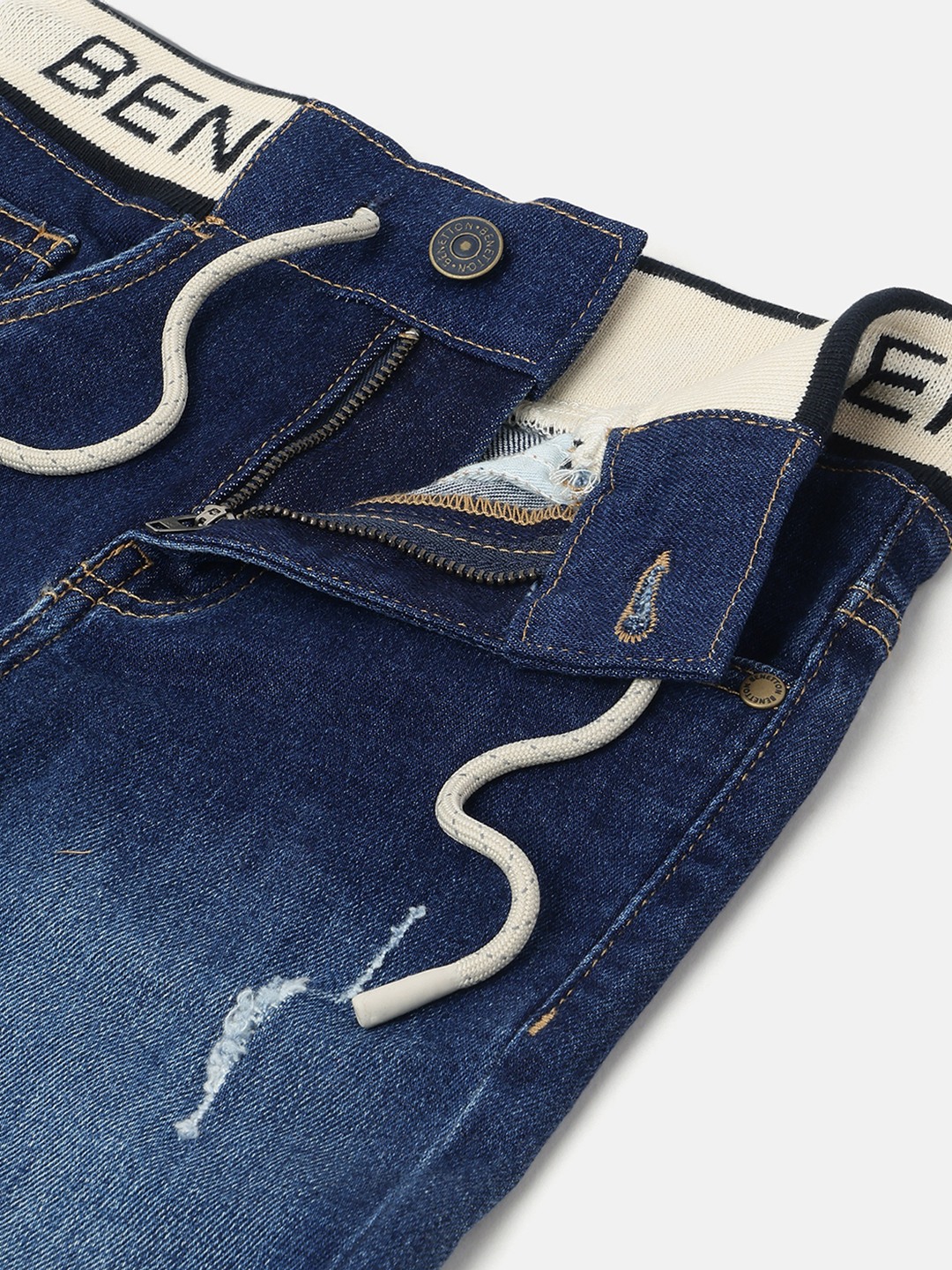 Discover the perfect blend of style and comfort with our dark wash denim jeans. Crafted in a solid blue pattern, these regular fit jeans feature a mid rise and button closure. Made from durable polycotton fabric, they're designed for boys who value both fashion and functionality. Elevate your wardrobe today!