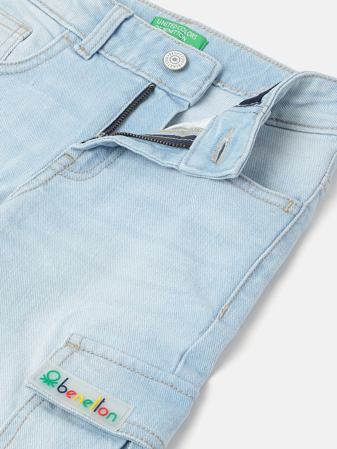 Dive into style with our ice wash cargo pocket denim jeans in a striking blue. Featuring a straight fit and solid pattern, these mid-rise jeans offer a button closure for easy wear. Crafted from durable polycotton fabric, they're perfect for boys seeking comfort and functionality in every adventure.