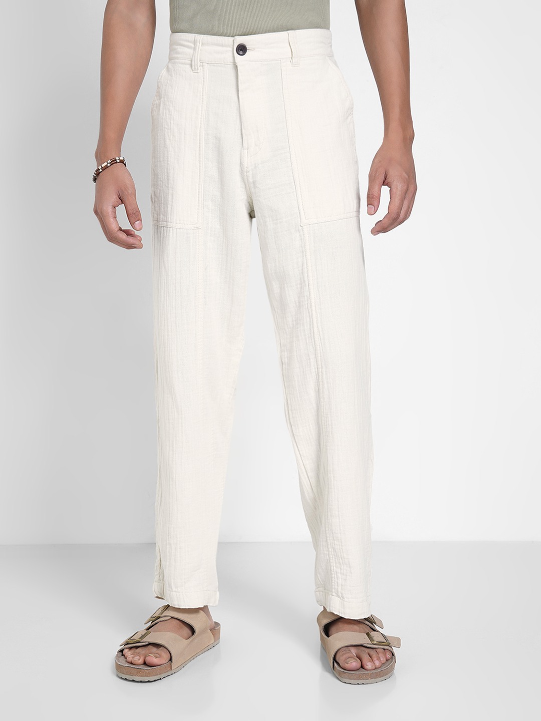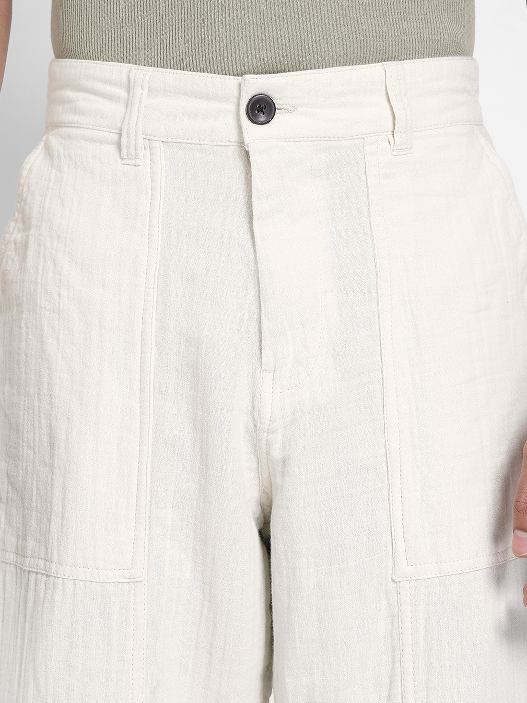 Home/Trousers/7 Alt by Pantaloons/white crinkle effect tapered pants