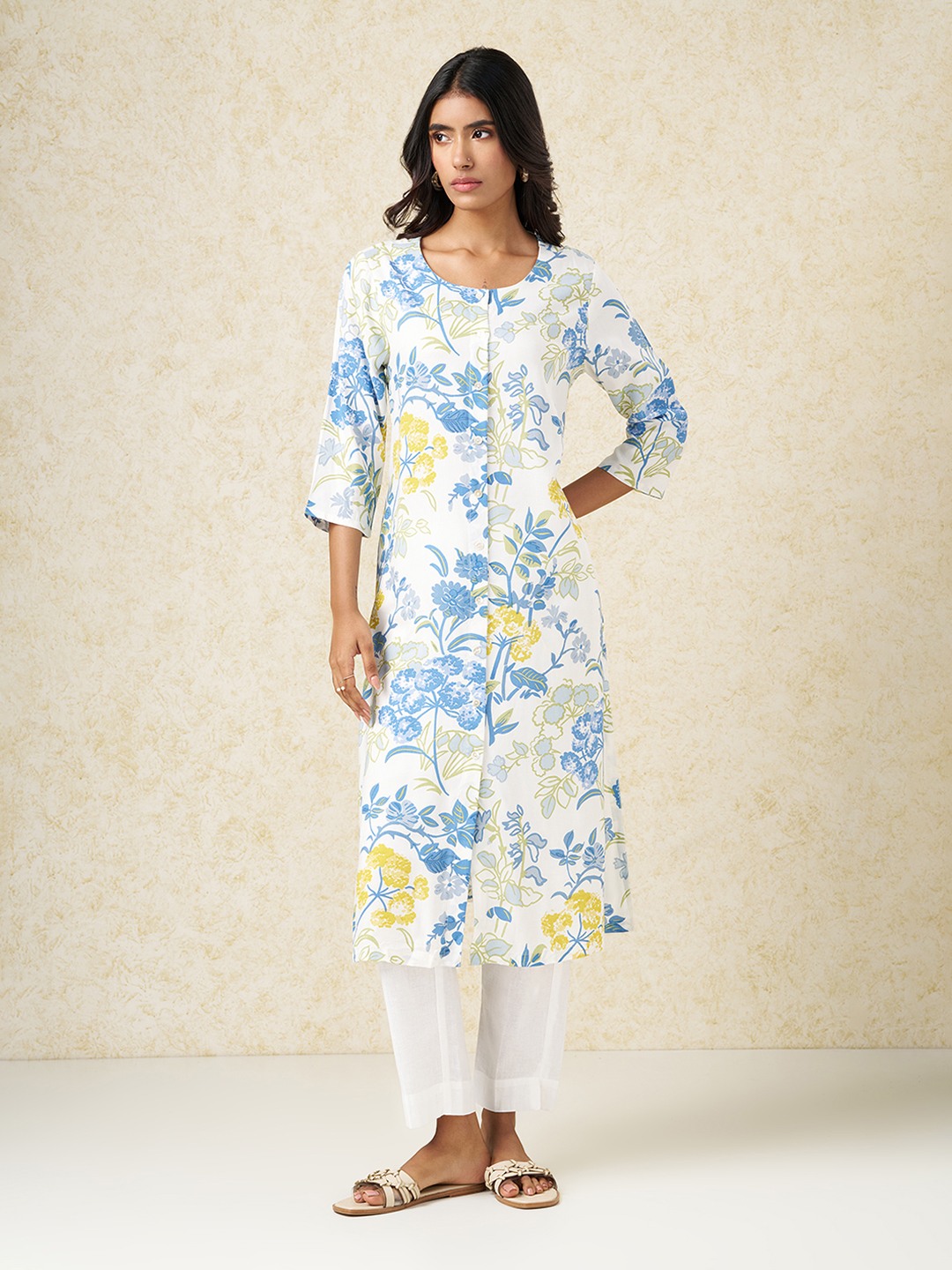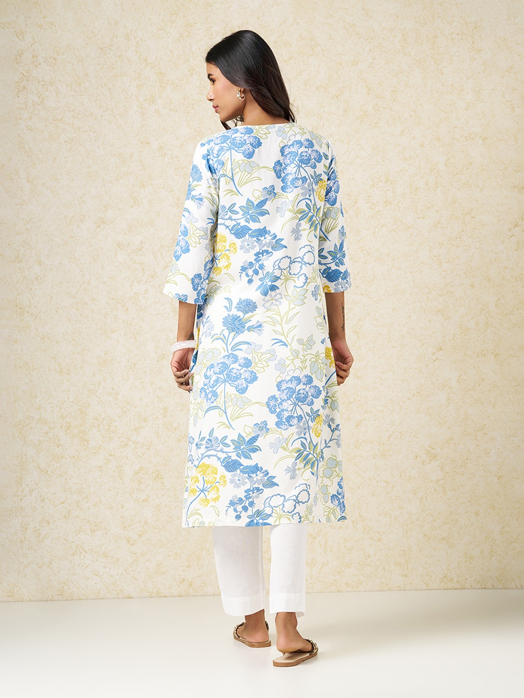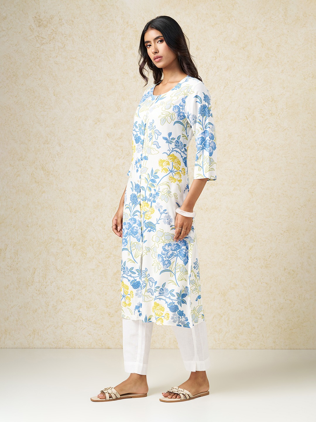Home/Kurtas/RANGMANCH by Pantaloons/white floral print casual kurta