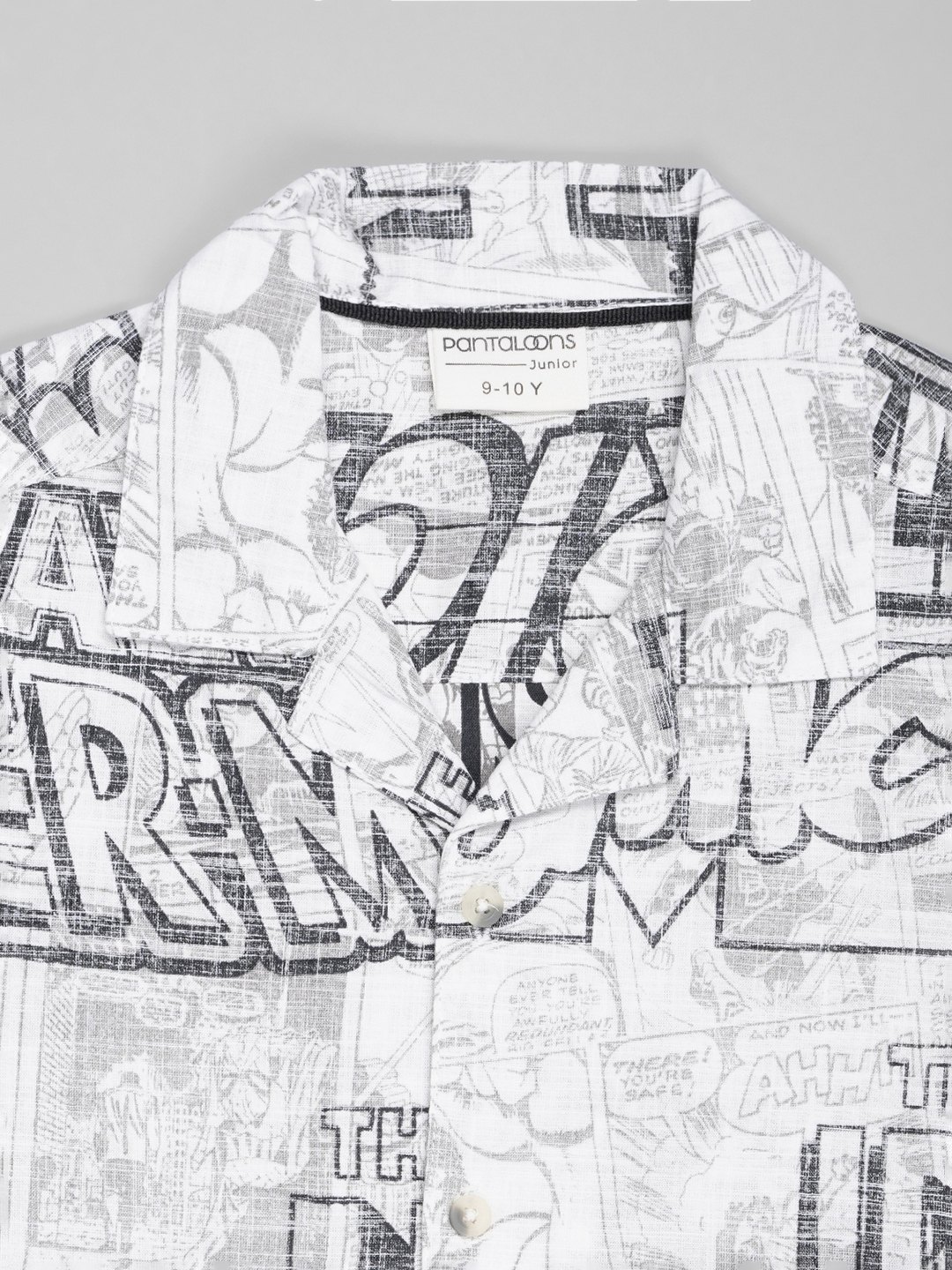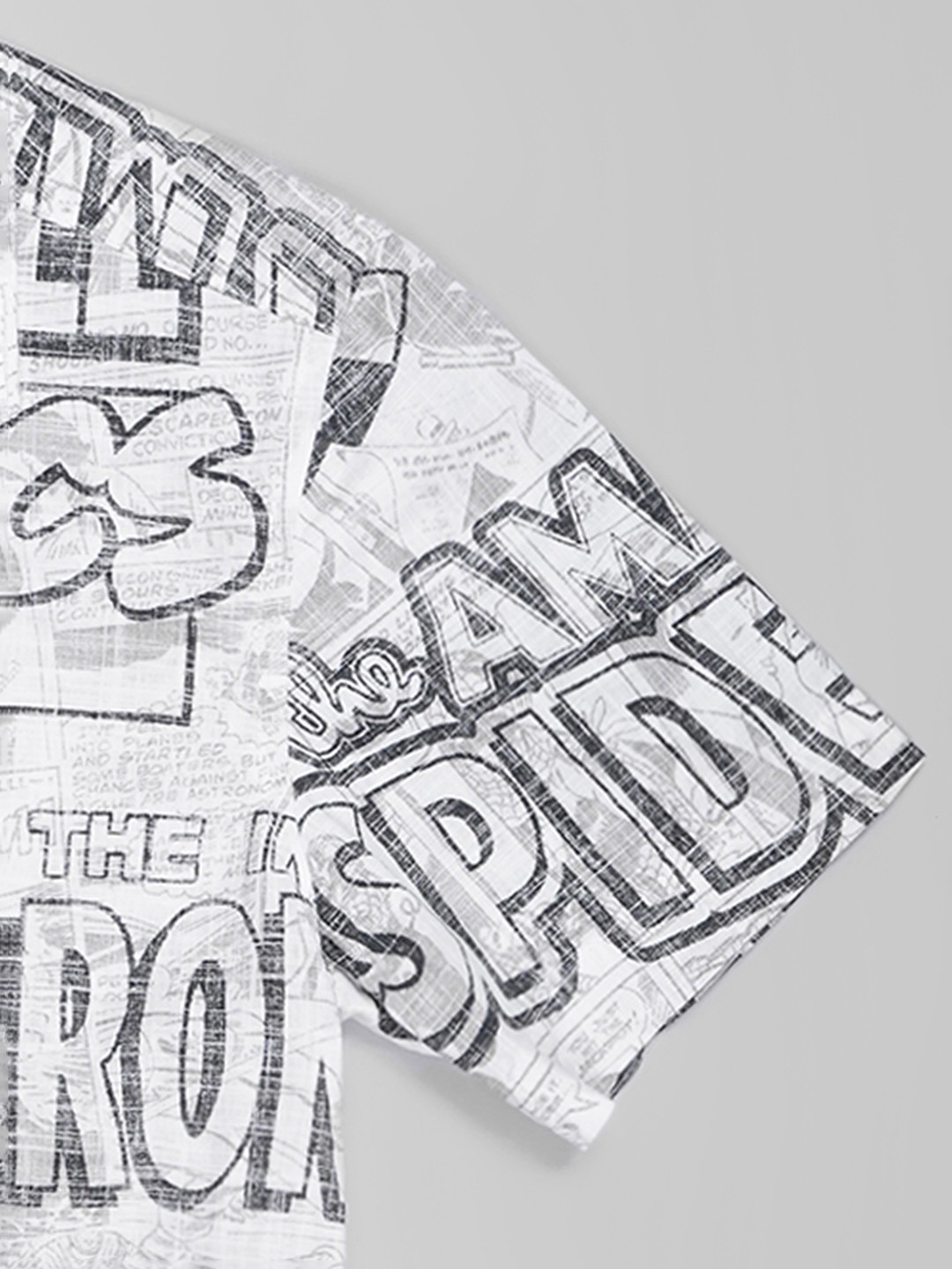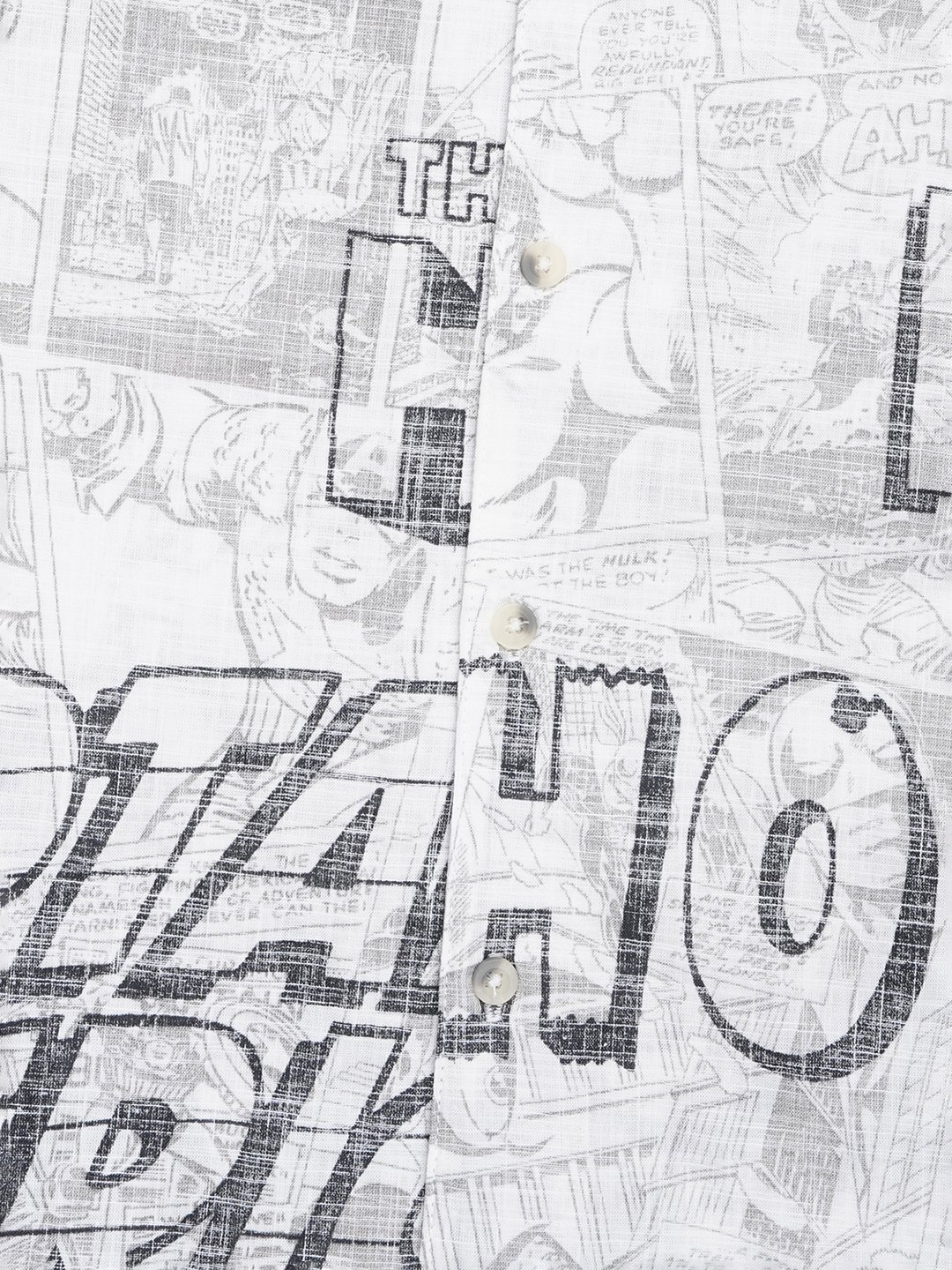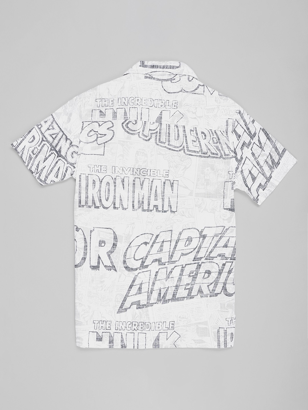 Illustrated panels and bold typography bring comic-book excitement to this breezy resort shirt. Designed with a relaxed camp collar, half sleeves and a button-up front for easy warm-weather styling. Lightweight and comfortable for holidays, weekends and everyday adventures.