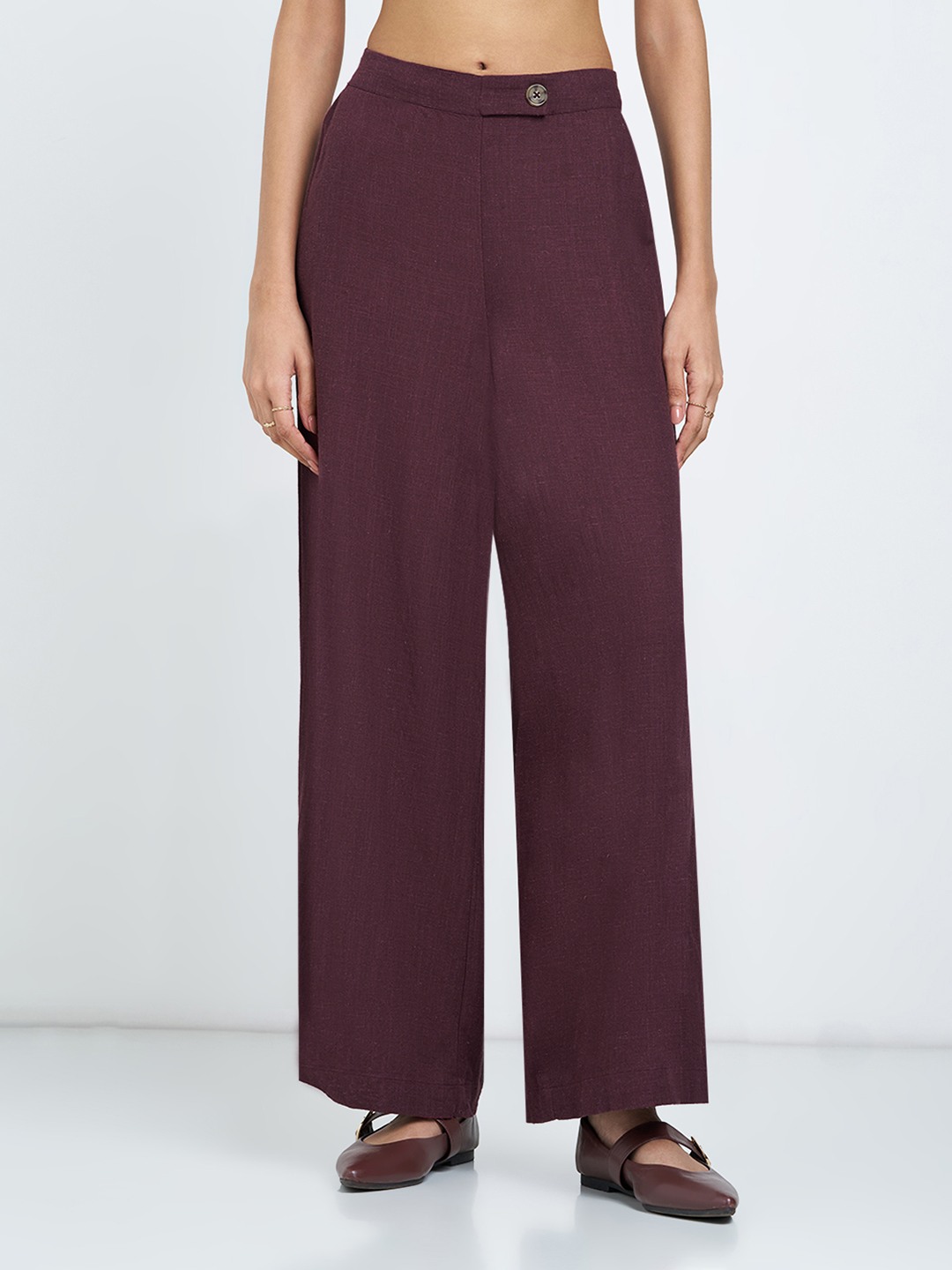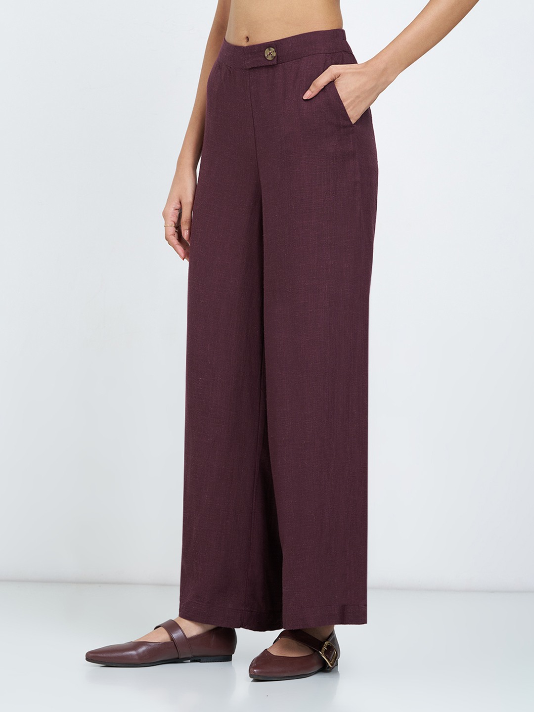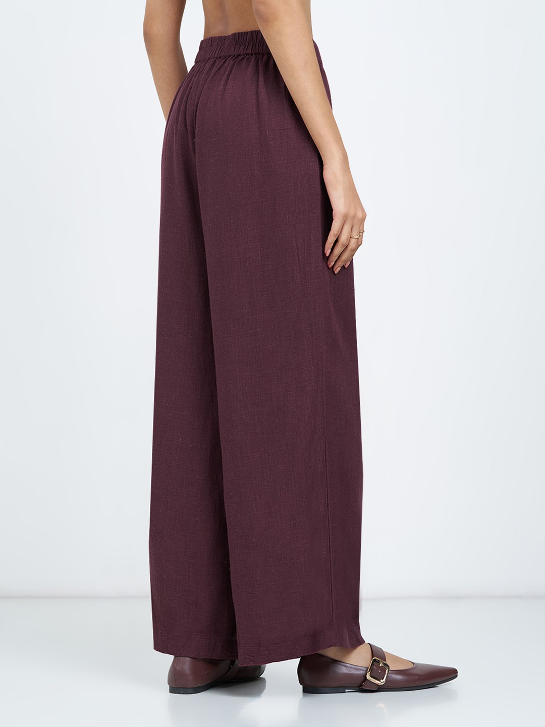 Effortless tailoring defines this clean, elongated silhouette. Designed with a structured waistband with an elasticated back, these trousers fall smoothly through the hips into fluid wide legs that create graceful movement. Crafted in textured woven fabric that lends structure while maintaining a soft drape.