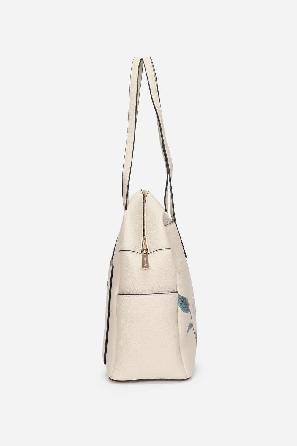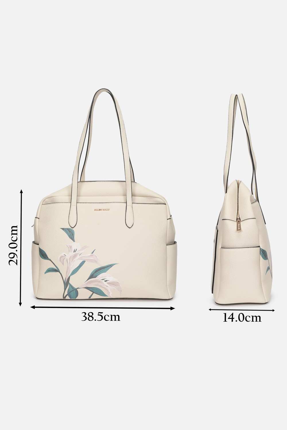 Impeccably designed from vegan leather, this beige handbag by Allen Solly is the epitome of elegance for every formal occasion. Its chic print pattern adds a touch of sophistication, while the spacious interior offers effortless organization for essentials. This accessory not only embodies contemporary style but also ensures a commitment to sustainable fashion. With its sleek silhouette, it’s a striking addition to your ensemble, perfect for showcasing your refined taste.