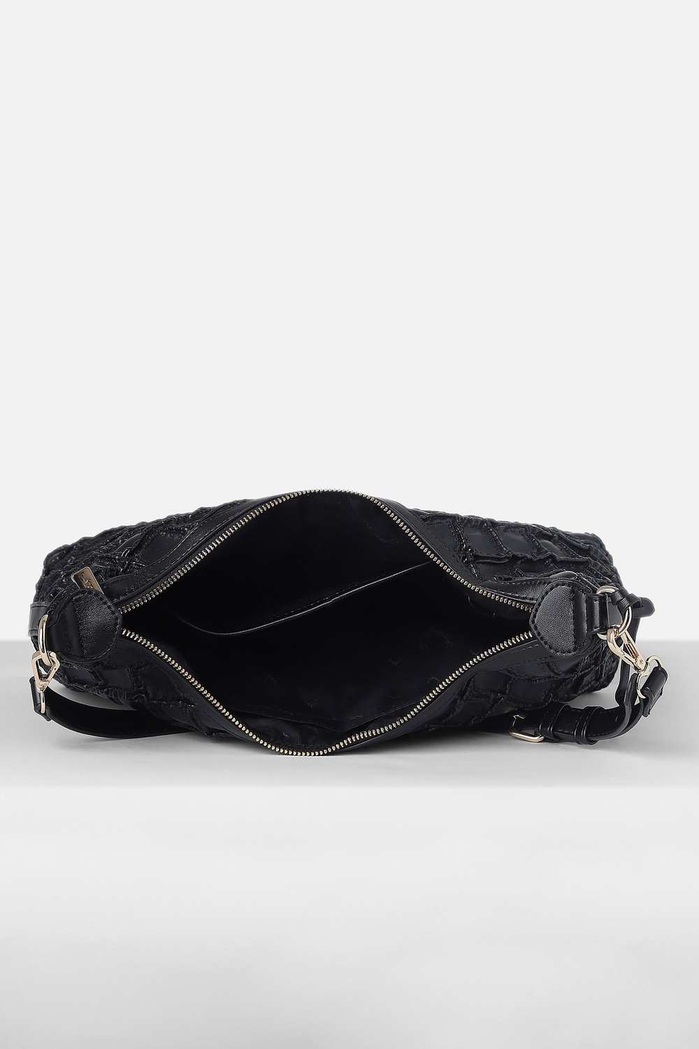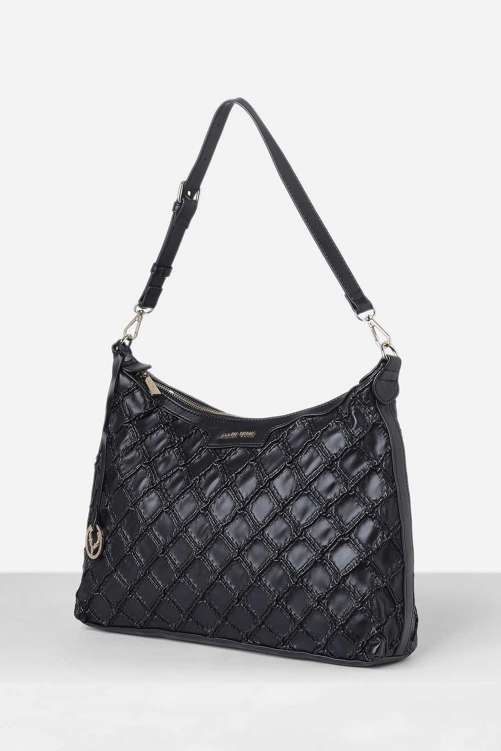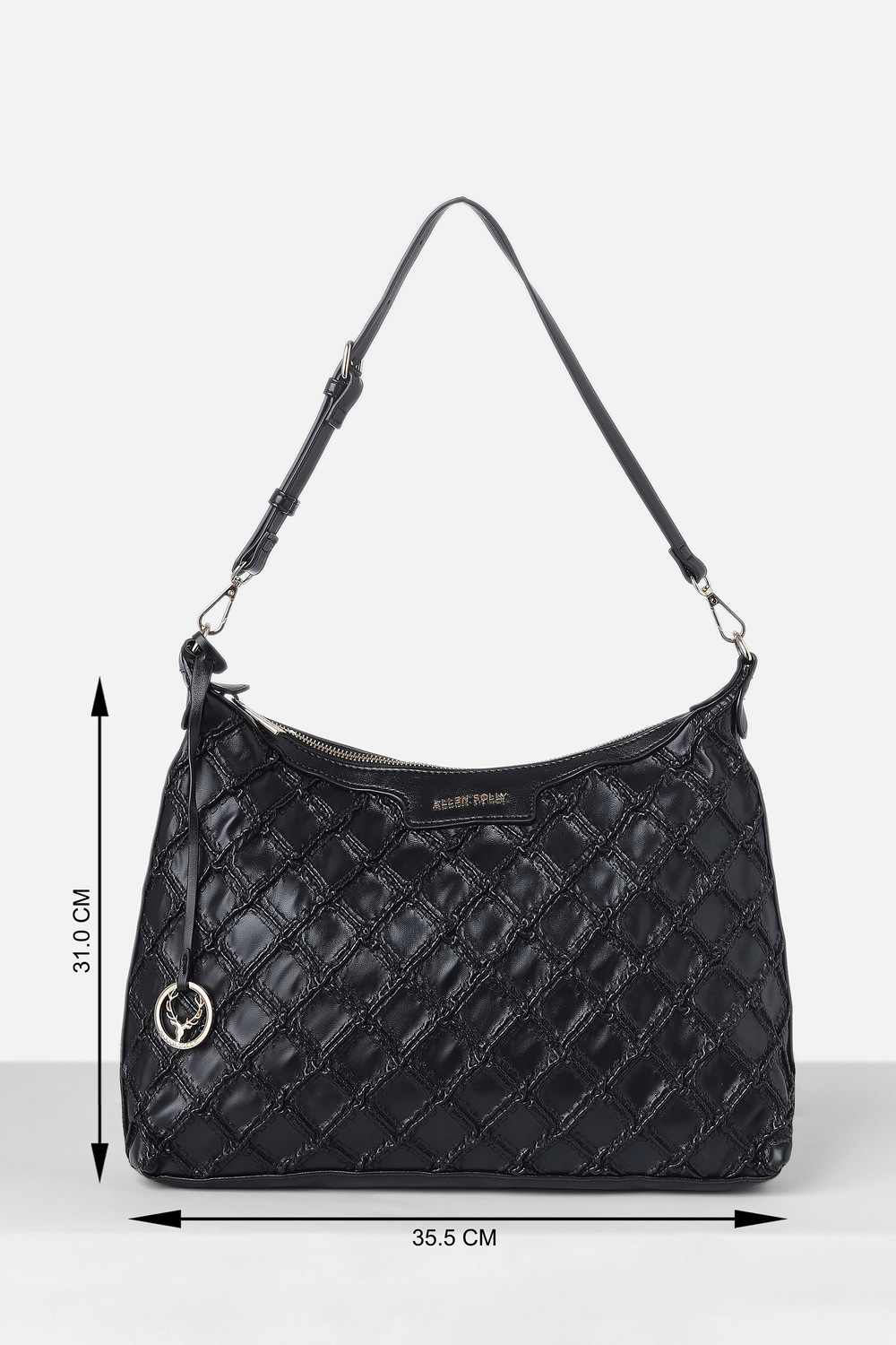 Experience effortless elegance with the Allen Solly women's handbag in a sophisticated black hue. Crafted from vegan leather, this textured accessory offers both style and sustainability, making it a perfect addition for casual outings. Its contemporary design complements any outfit, while its functional appeal ensures you carry your essentials with ease. Embrace a chic lifestyle and elevate your everyday look with this fashionable handbag.