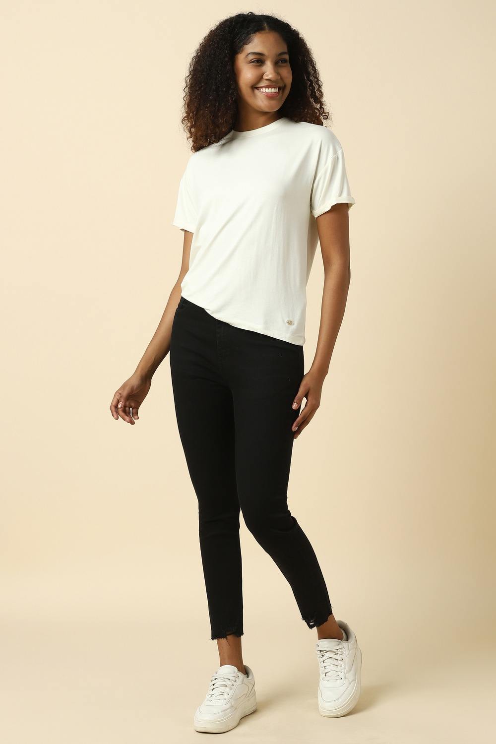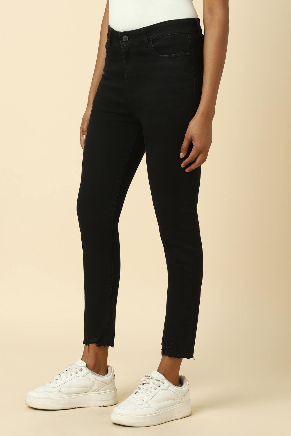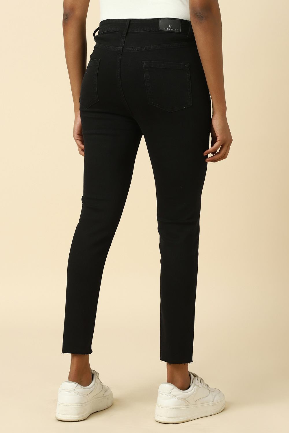 Elevate your casual wardrobe with the Allen Solly black skinny jeans. Crafted from a blend of cotton, polyester, and elastane, these jeans offer a flattering fit that hugs your curves while providing all-day comfort. The dark wash adds a touch of sophistication, making them versatile for various occasions. Pair them effortlessly with your favorite tops for a chic, modern look that embodies both style and ease.