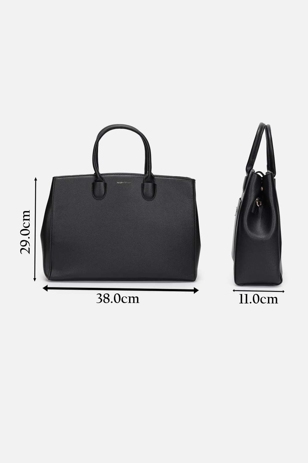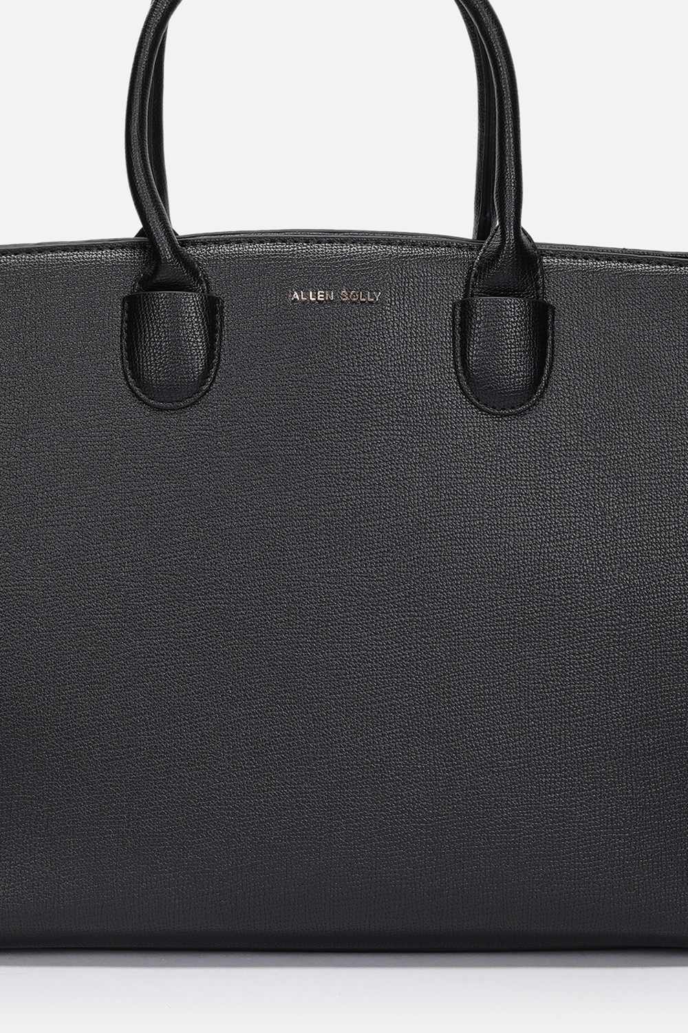 Indulge in the sophisticated allure of the Allen Solly handbag, expertly crafted from vegan leather in a stunning black hue. Its textured design adds depth and character, making it an impeccable choice for formal occasions. This handbag not only complements your ensemble beautifully, but also offers ample space for essentials, ensuring you remain organized and poised. Elevate your accessory game with this exquisite piece that reflects a commitment to sustainable fashion without compromising style.