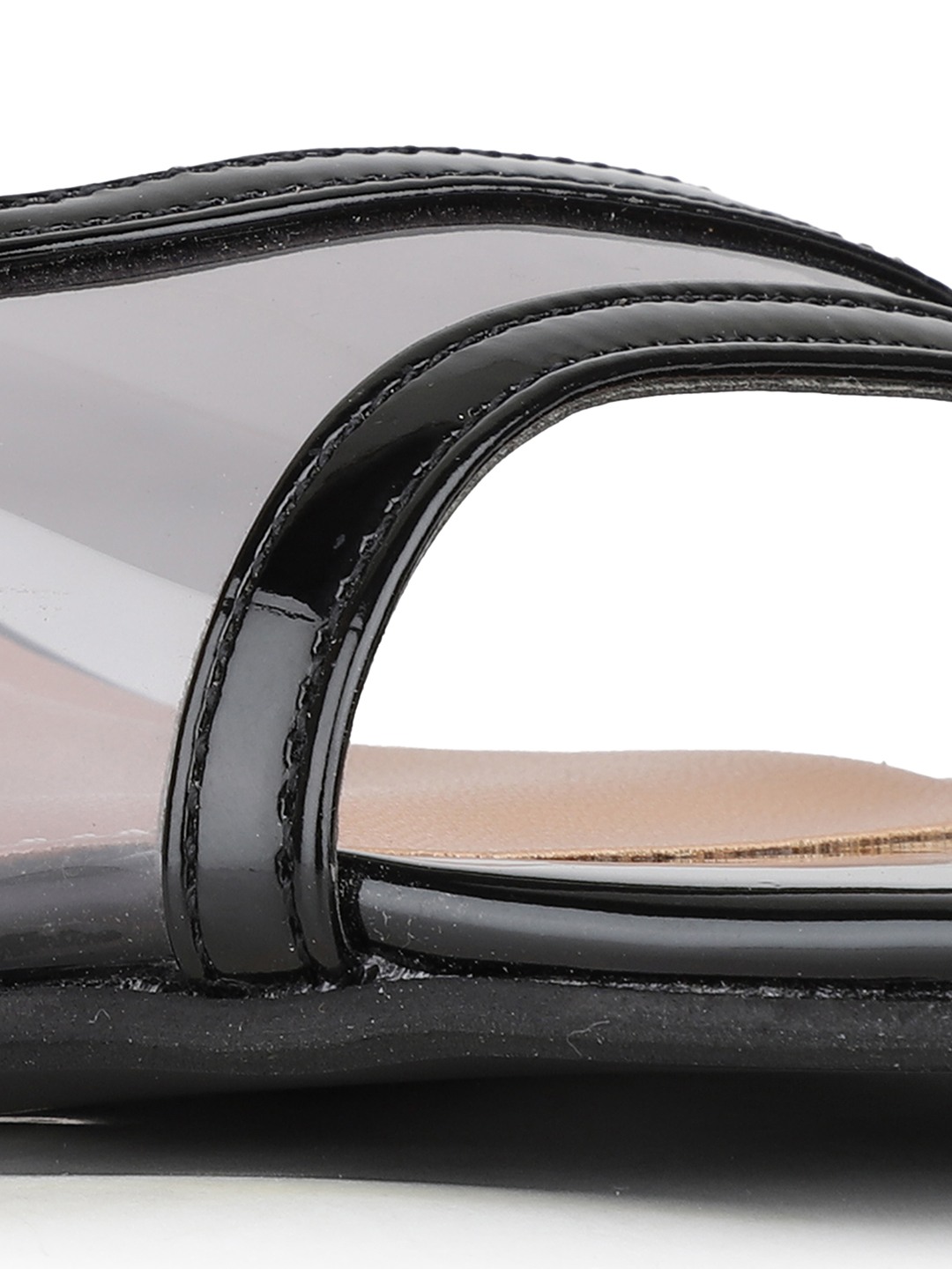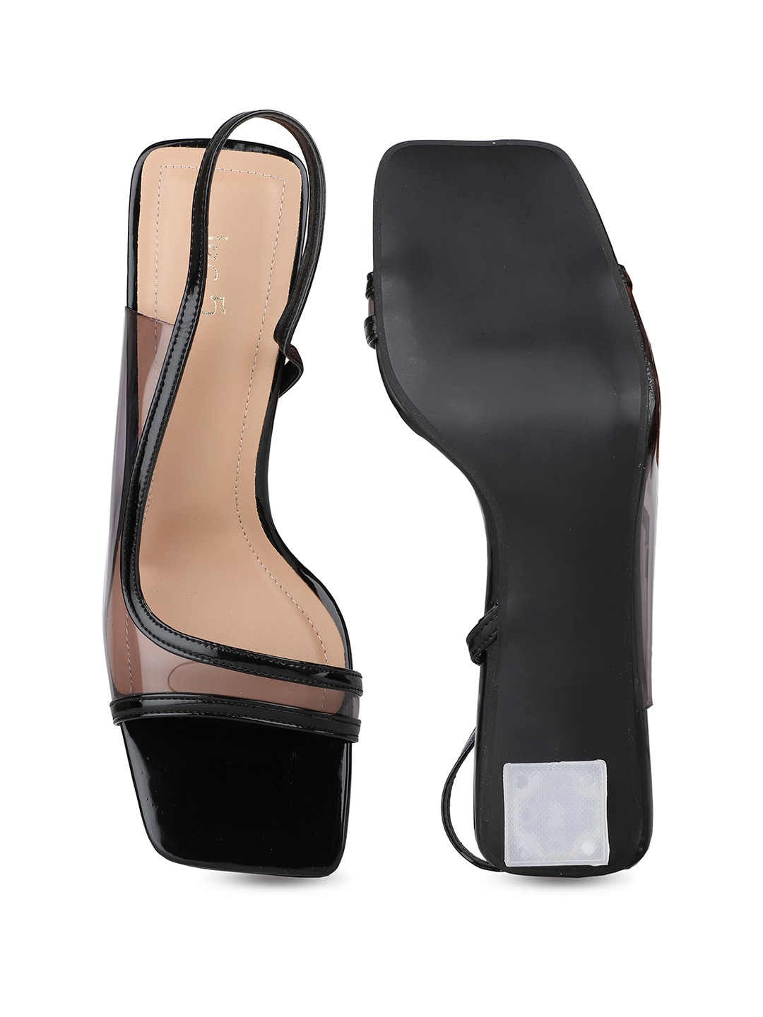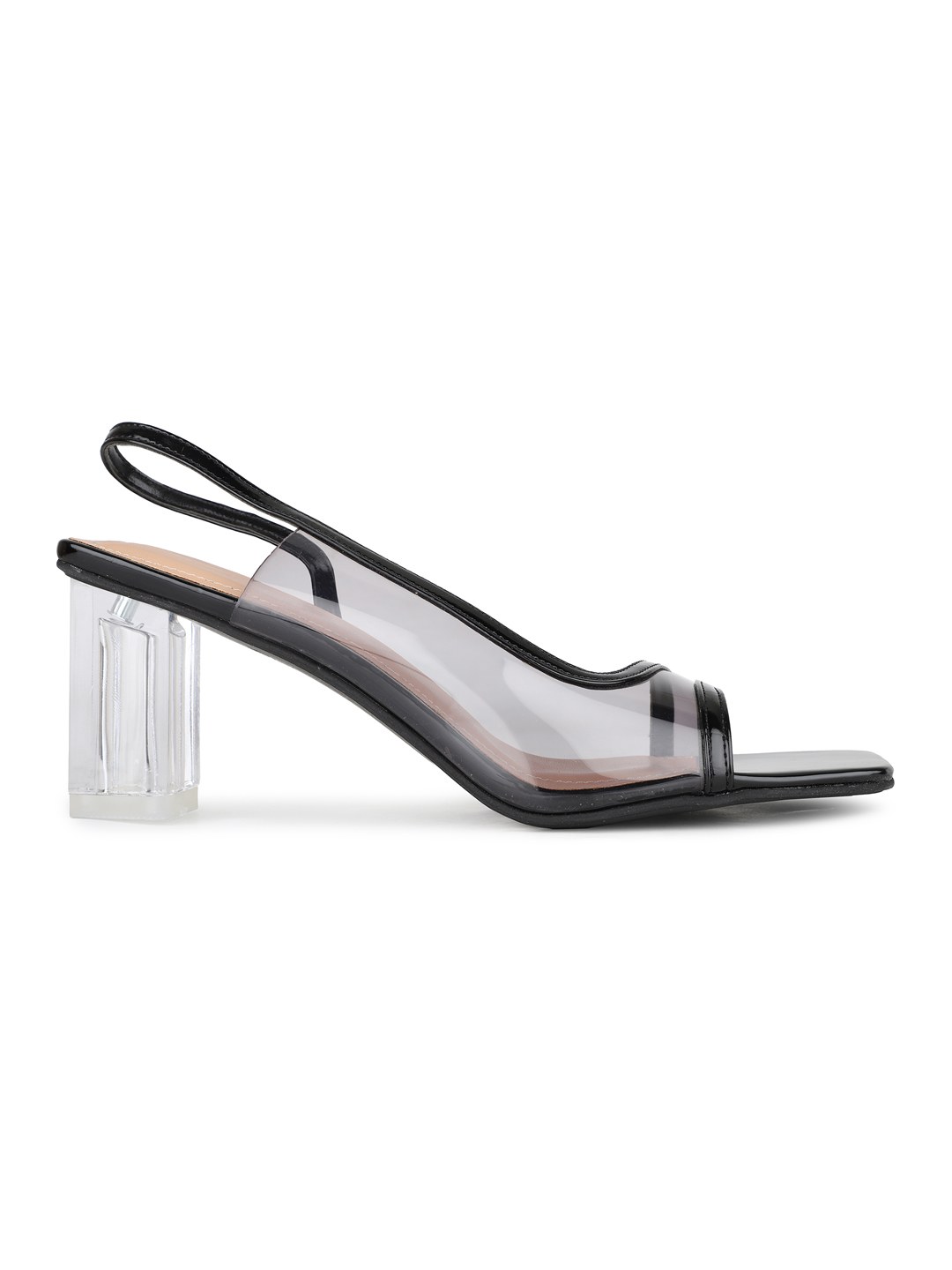 These black transparent sandals add a sleek finish to your party attire. The square toe and block heel provide modern appeal with comfortable support.