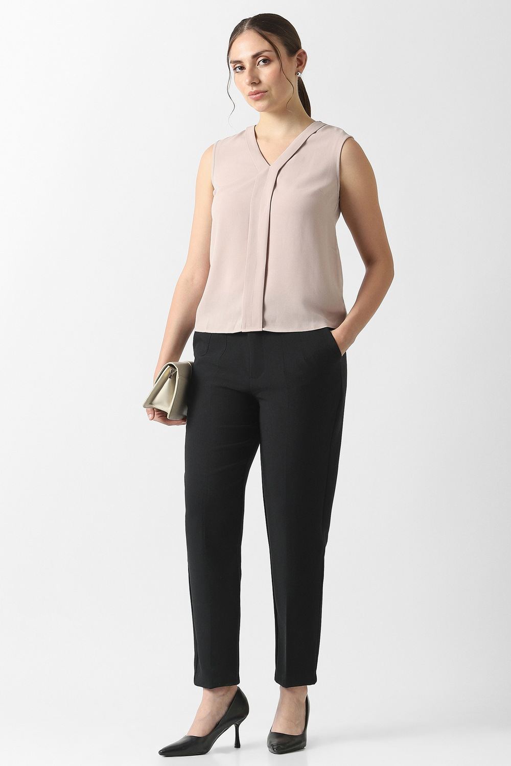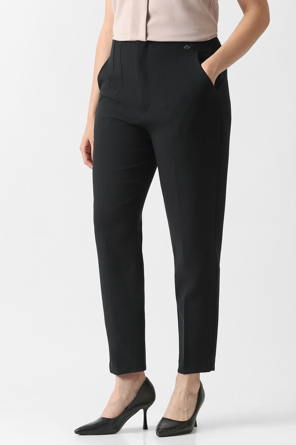 Effortlessly chic, these black trousers from Van Heusen are your ideal companion for casual outings. Designed from a luxurious blend of polyester, rayon, and spandex, they provide a flattering fit that's as comfortable as it is stylish. The solid pattern offers versatile styling options, making it easy to pair with various tops and accessories. Elevate your everyday look with these trousers that celebrate modern sophistication. Perfect for the effortlessly stylish woman.