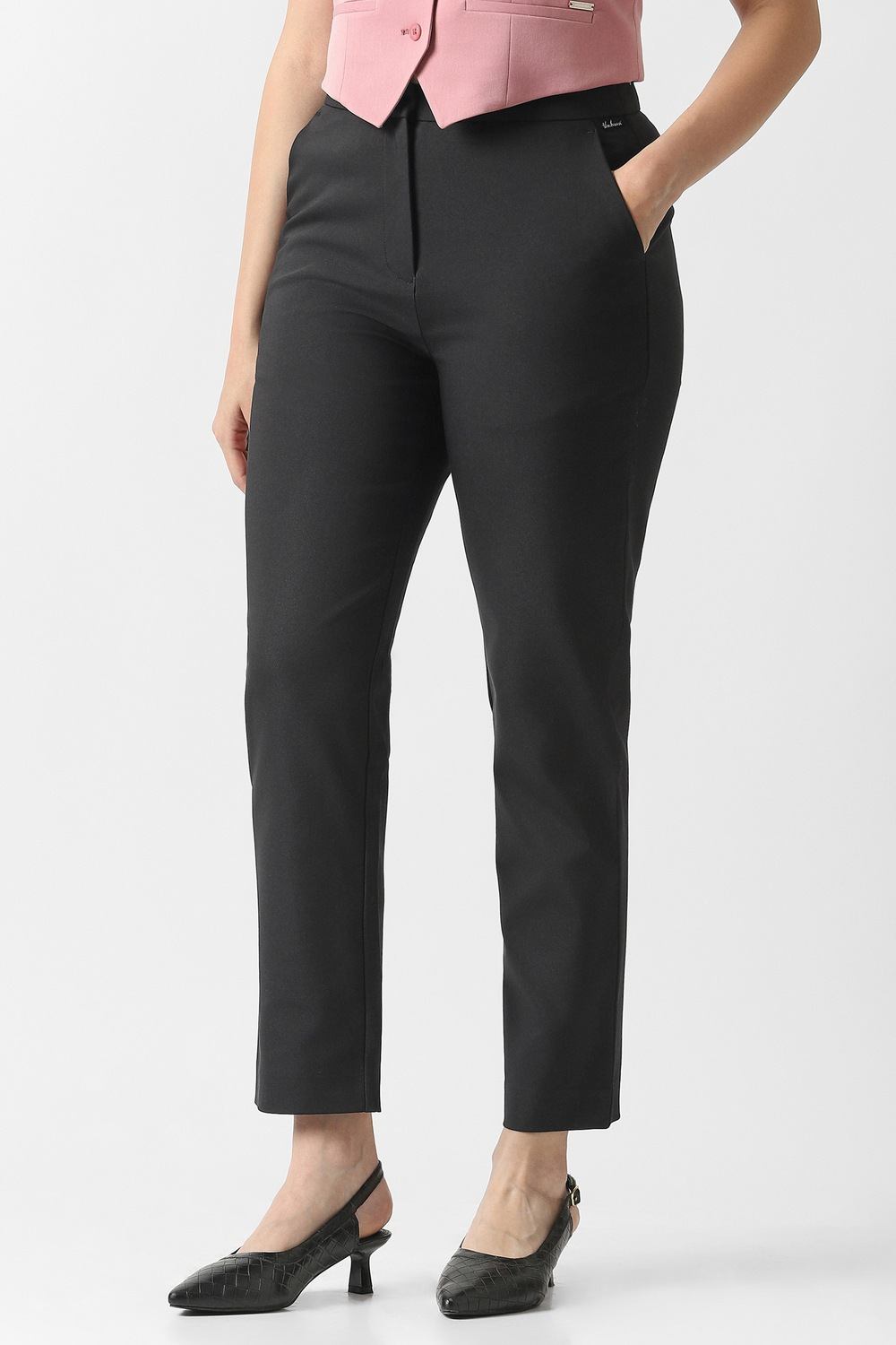 Crafted from a luxurious blend of cotton, polyester, and spandex, these sophisticated black trousers from Van Heusen redefine formal elegance. Their solid design permits seamless pairing with blouses, fostering a polished silhouette for special occasions. The thoughtfully tailored fit provides remarkable ease of movement, ensuring you command attention in every setting. Embrace a refined aesthetic that underscores your confidence, perfect for the modern woman seeking style without compromise.