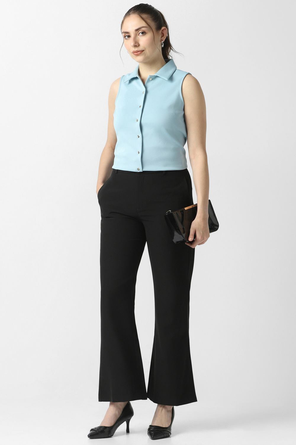 Elevate your evening allure with these black trousers by Van Heusen, designed for the modern woman who values sophistication. Meticulously constructed from premium polyester, these solid trousers offer a flattering fit, ideal for any party. Their refined silhouette pairs effortlessly with elegant tops, while the versatile shade enhances your style choices. Captivate in comfort, and let this essential piece become your go-to for chic night outs. Perfect your look without compromise.