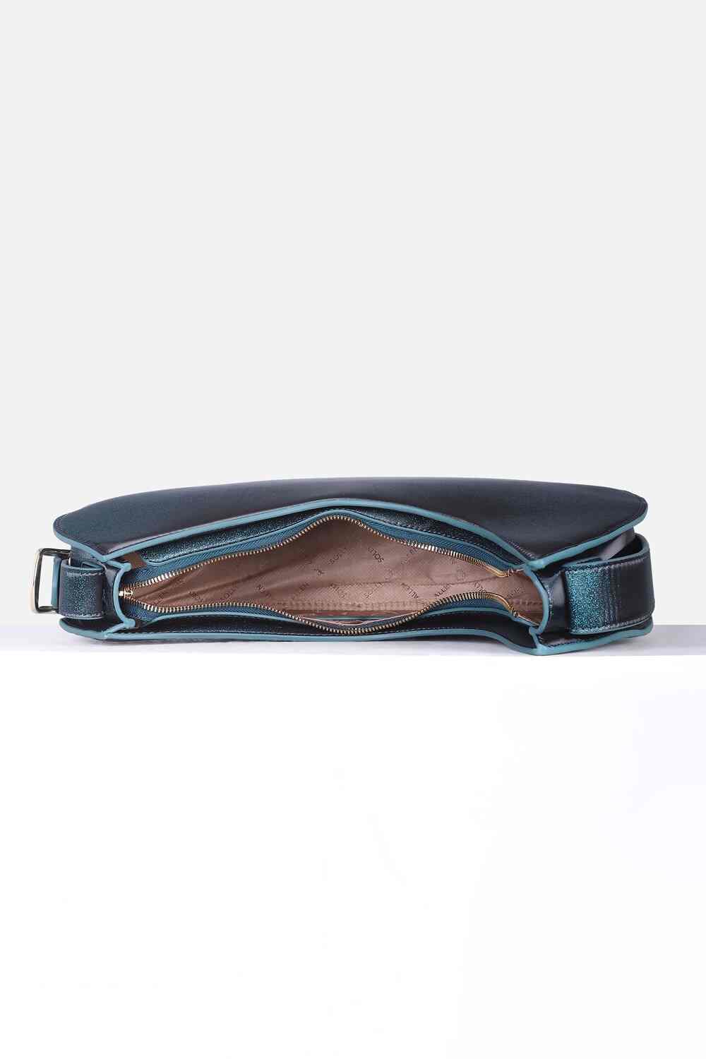 Elevate your casual outings with the Allen Solly blue printed sling bag. Crafted from vegan leather, this stylish accessory offers a chic blend of sustainability and contemporary design. Its lightweight construction ensures ease of carrying, making it a perfect companion for any casual occasion. The striking print adds a touch of flair, allowing you to express your unique style effortlessly. Carry sophistication with you wherever you go.