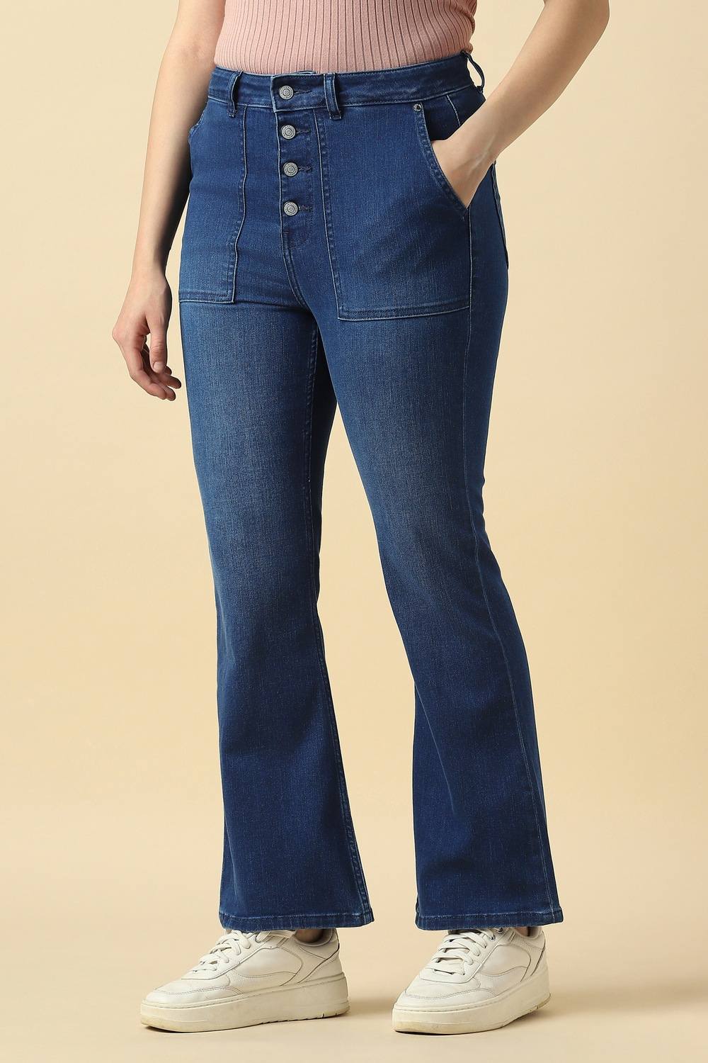 Refresh your casual collection with these elegant blue jeans from Allen Solly. Made from a luxurious blend of cotton, polyester, viscose, and elastane, these jeans offer a refined silhouette that moves with you. The solid pattern allows for effortless styling, while the mid-wash finish introduces versatility into your wardrobe. Ideal for leisurely days, they complement a range of tops, ensuring you radiate refined charm no matter the occasion.