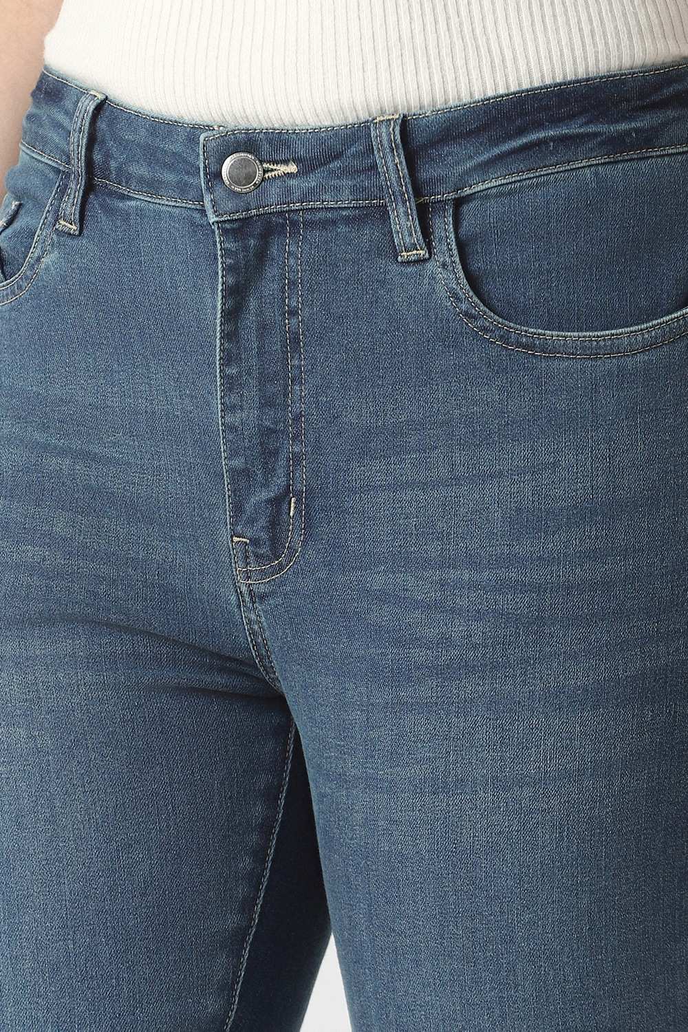 Unveil effortless charm with these Van Heusen blue jeans, meticulously designed for the modern woman’s casual outings. Crafted from a blend of cotton and elastane, they provide lasting comfort and a tailored fit that flatters every silhouette. The classic hue serves as a versatile canvas, effortlessly pairing with your favorite tops. Experience a harmonious blend of style and ease, ensuring you're ready to grace any scene with understated sophistication.