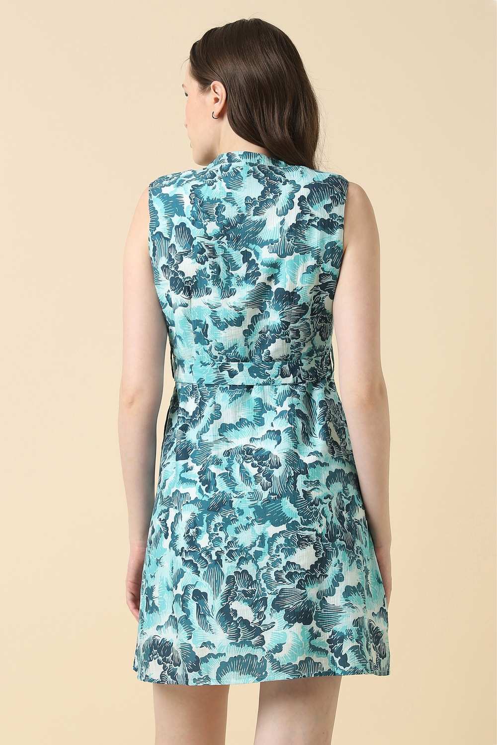 This Allen Solly women`s dress in a striking blue features a stylish print and a flattering V-neck, perfect for casual outings. Designed with a regular fit and sleeveless style, it offers comfort and elegance in one. Crafted from a blend of lyocell and nylon, this dress drapes beautifully, ensuring you stay chic and comfortable throughout the day. Embrace effortless style and make a statement wherever you go.