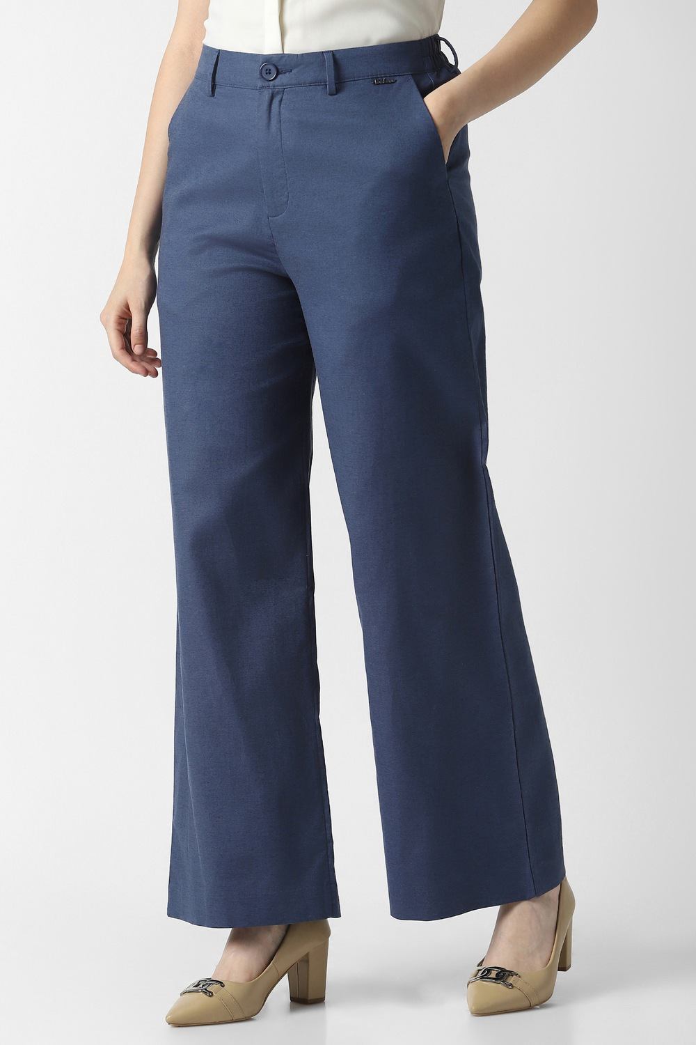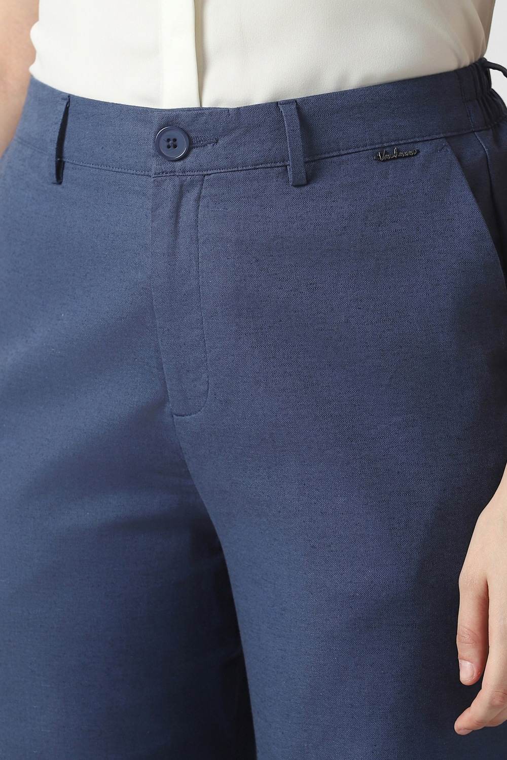 Exuding sophistication, these solid blue trousers from Van Heusen are designed for the modern woman embracing formal elegance. Meticulously constructed from a luxurious cotton and linen blend, they offer a refined silhouette and remarkable breathability for all-day wear. Perfect for professional settings or polished evenings, their versatile aesthetic ensures a graceful transition from office to after-hours. Redefine your style with this essential piece that promises tranquility and poise at every occasion.