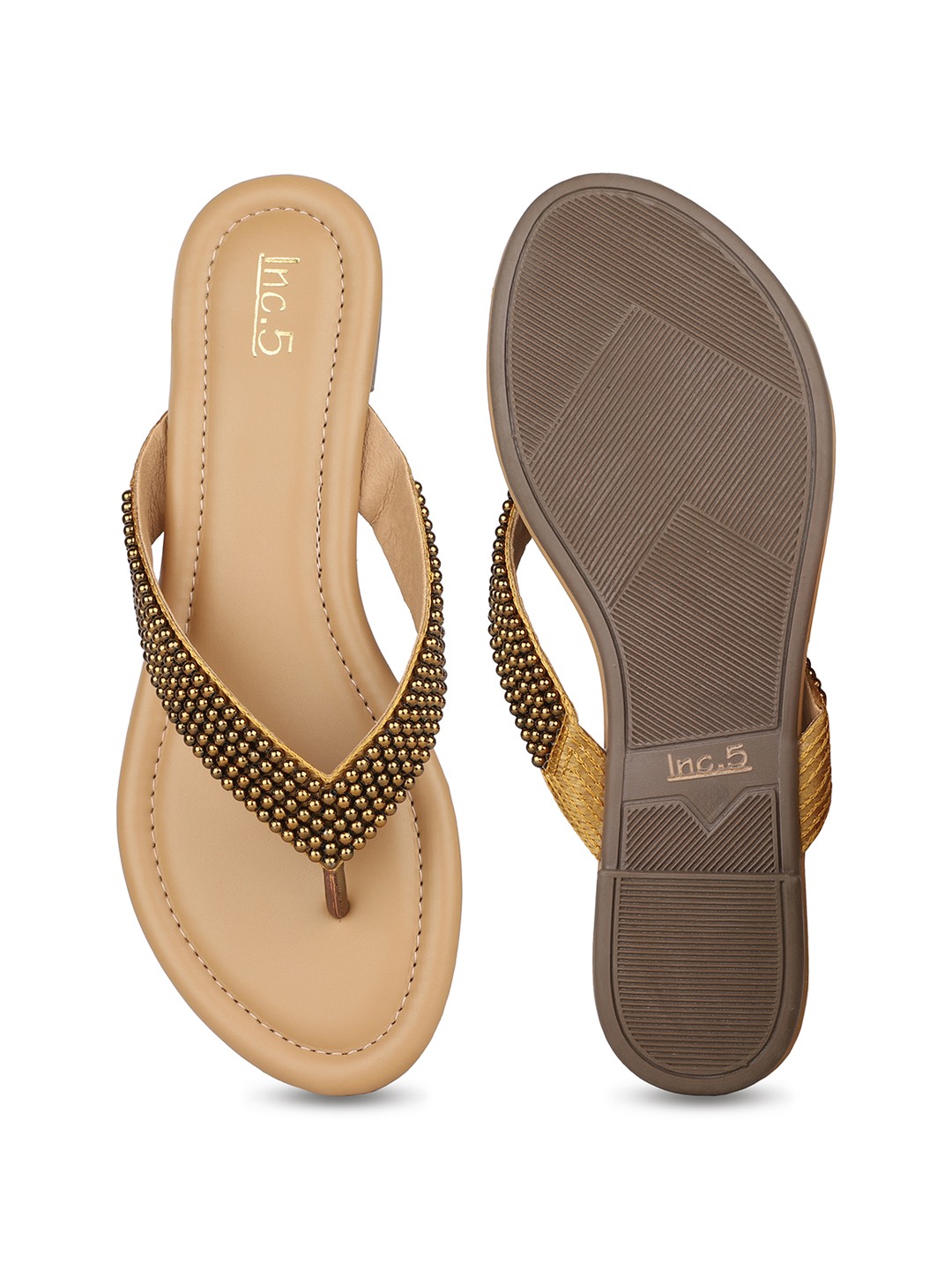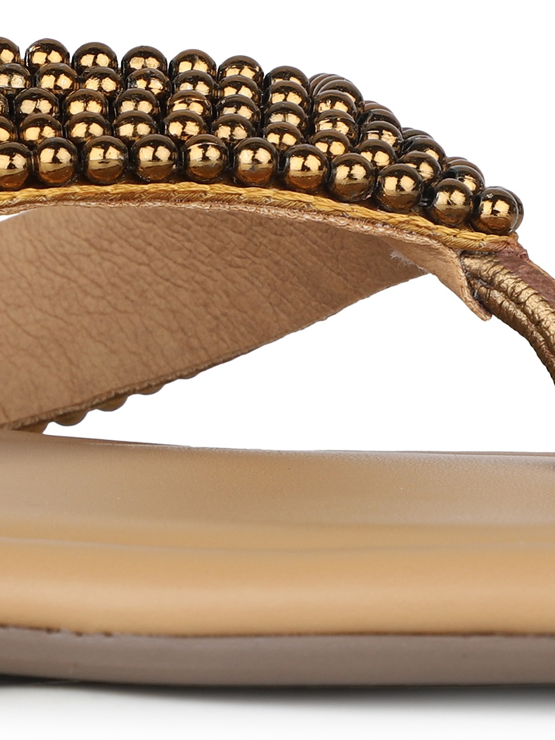 These golden T-strap slip-ons sparkle with embellishments. A festive essential, they blend elegance with ease for wedding functions and evening gatherings.