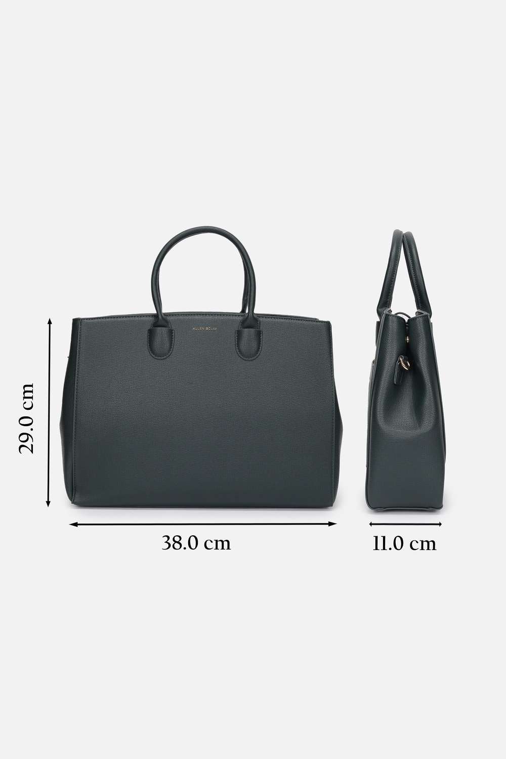 Crafted from premium vegan leather, this sophisticated green handbag from Allen Solly features a textured design that speaks to unique style. Perfectly suited for formal occasions, its enchanting hue complements a range of ensembles, while its spacious interior ensures functional elegance. This accessory effortlessly enhances your attire, making it an essential of modern sophistication. Let this handbag reflect your impeccable taste and elevate your presence at every event.
